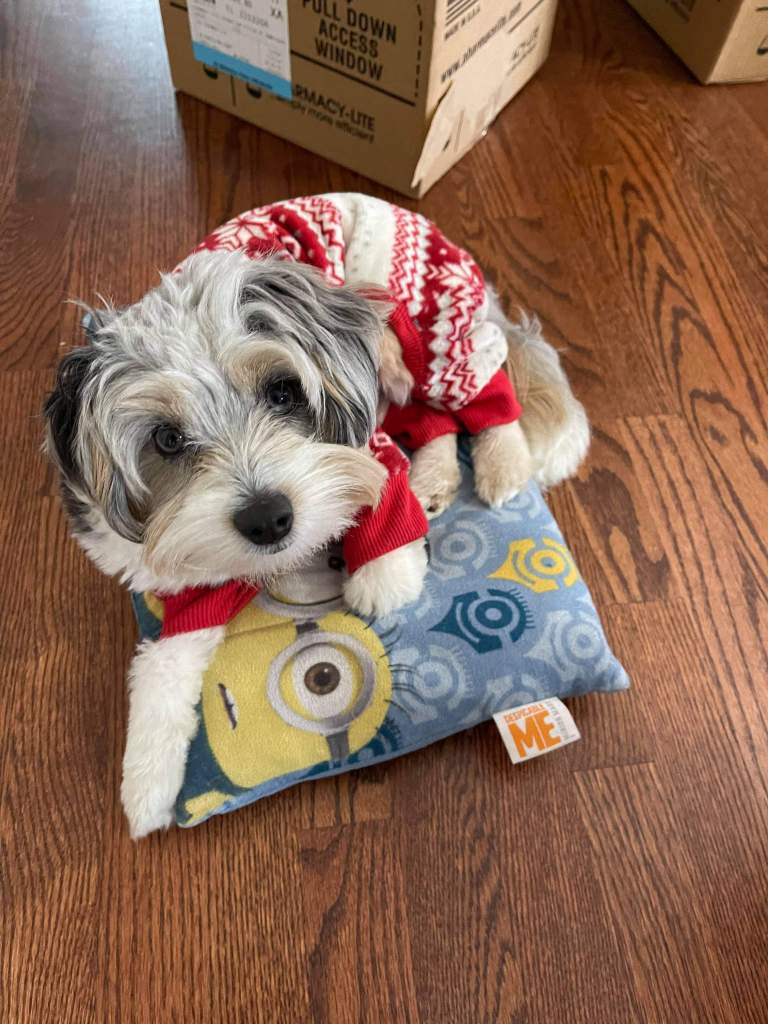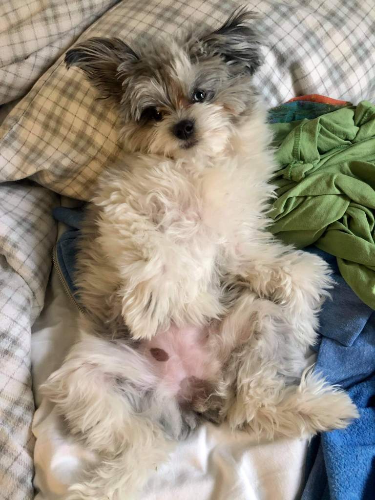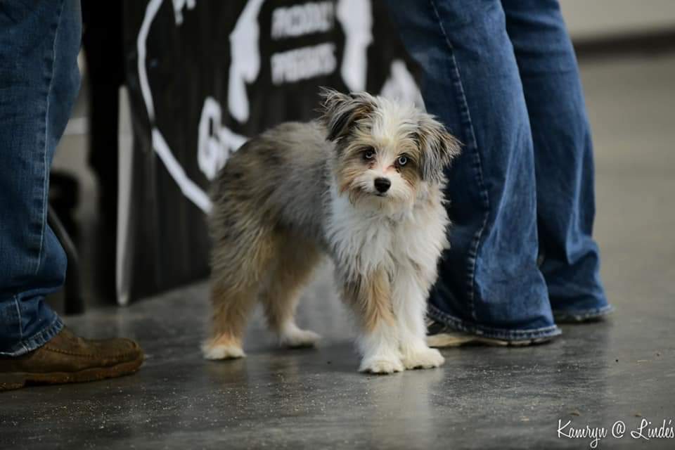 The Curly Coated Frozen Aussiedoodle is an extension of the same principle. Breeding the Frozen Aussiedoodle back to a Bichpoo decreases the amount of dander yet again, while keeping a looser curly coat with smoothness. Everything you love about an Aussiedoodle, but with much less dander. This is our version of the popular F1b typical cross.