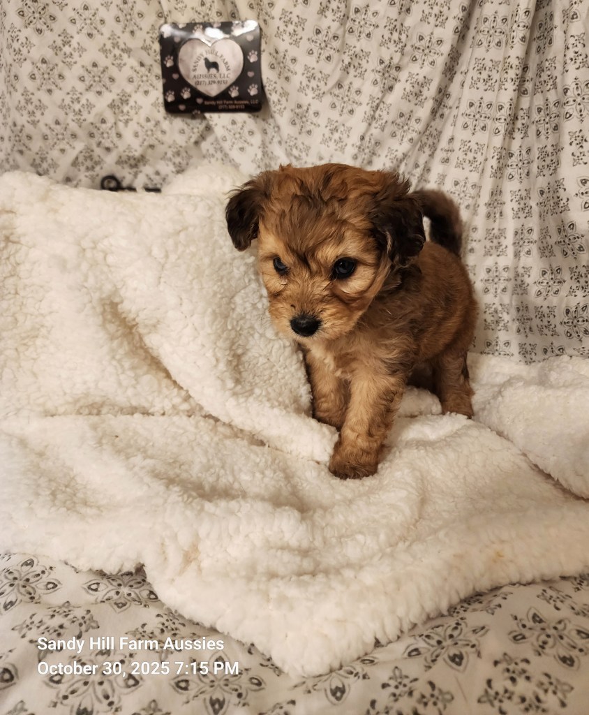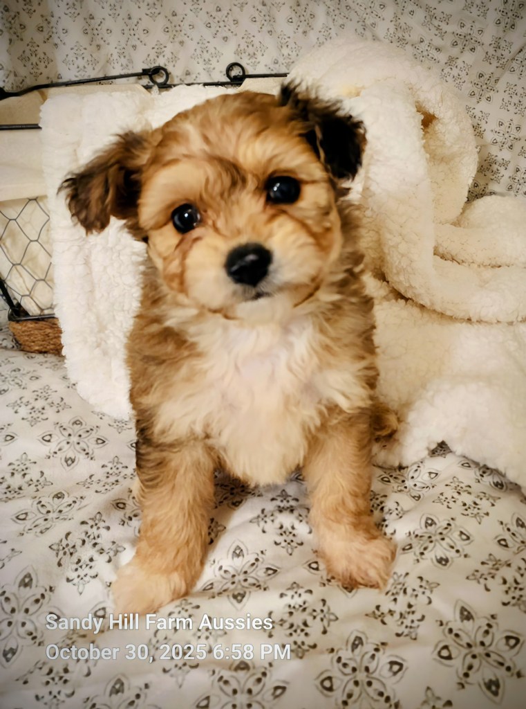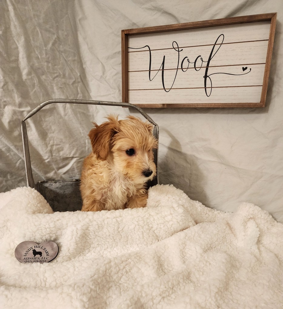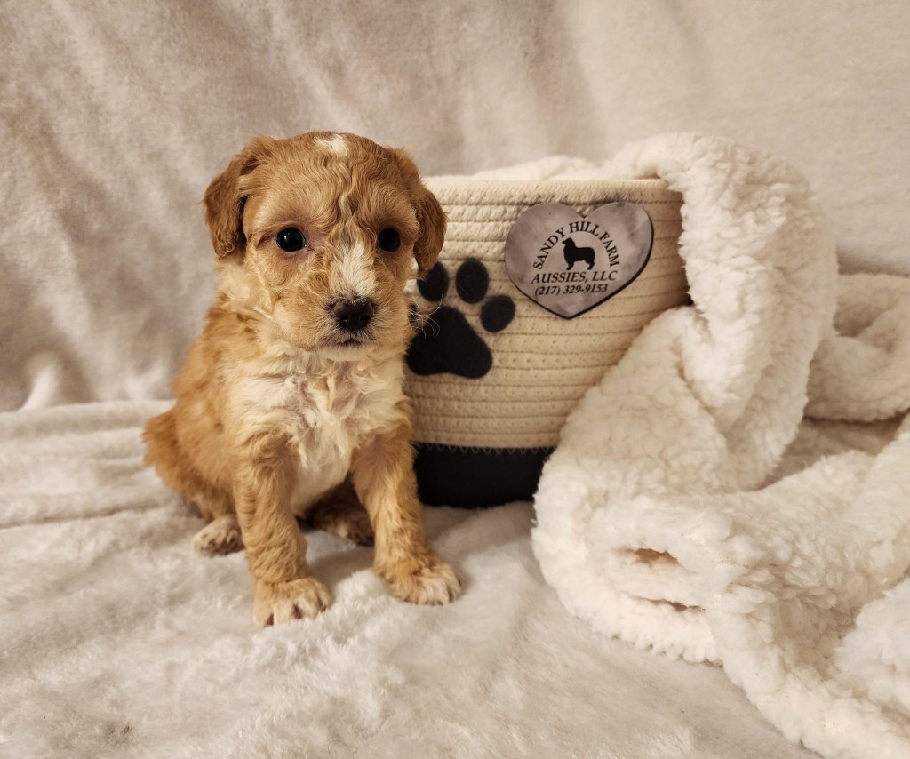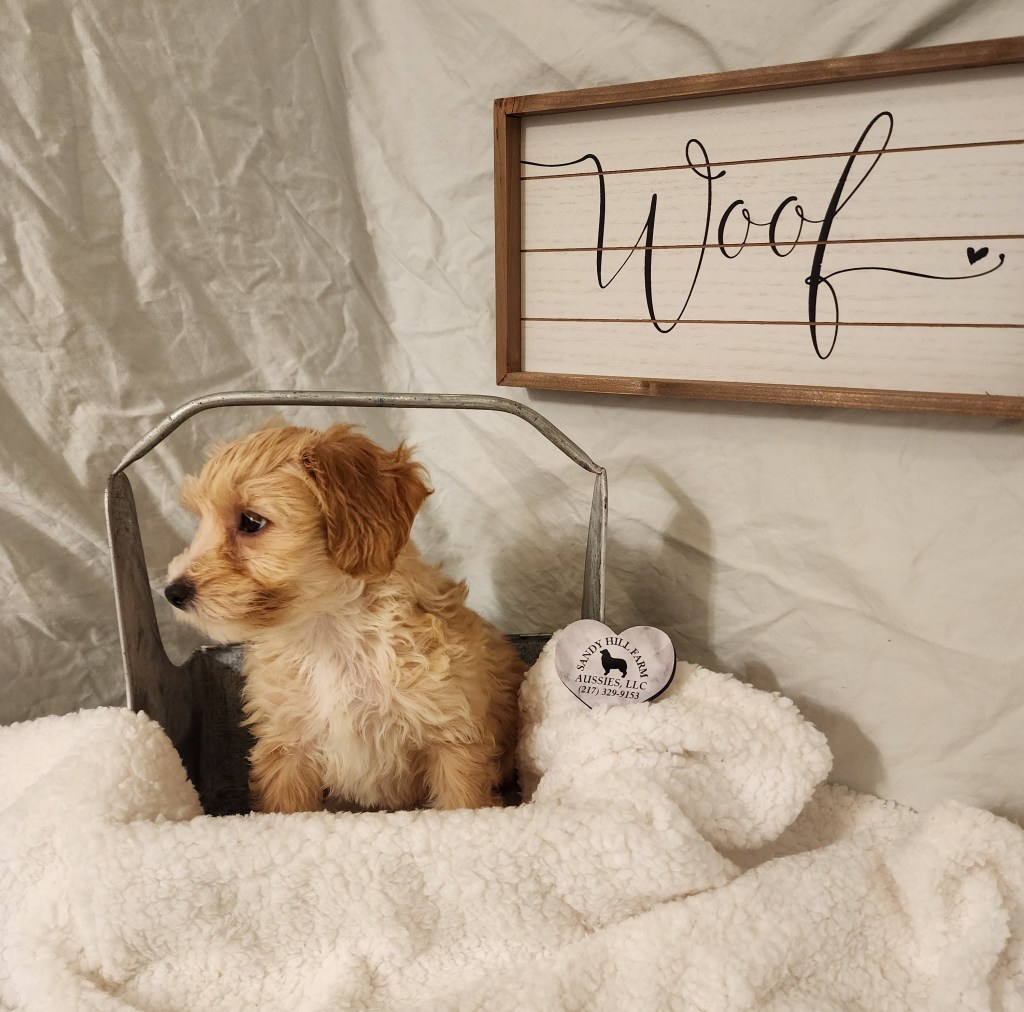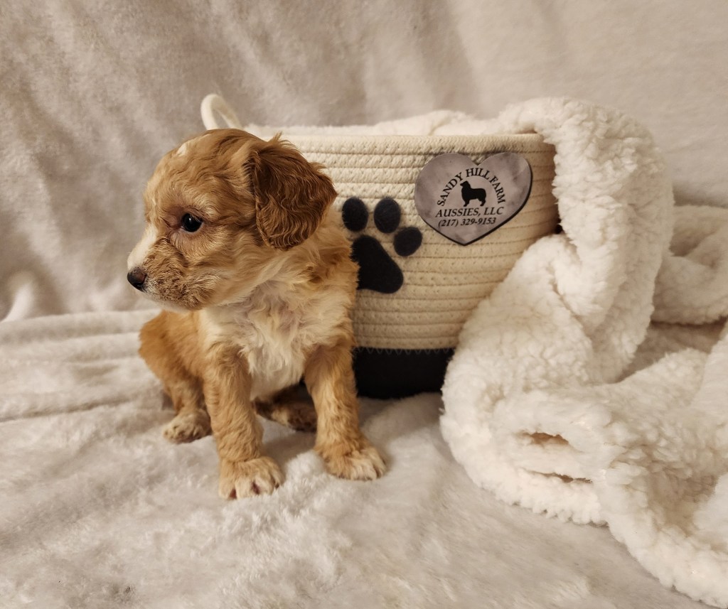 1 Brown-Eyed Yellow Large Toy/ Small Mini Aussiedoodle Male with full tail (below) $900