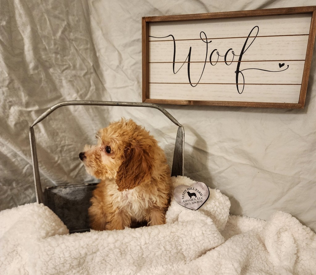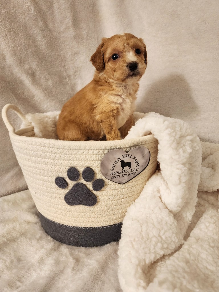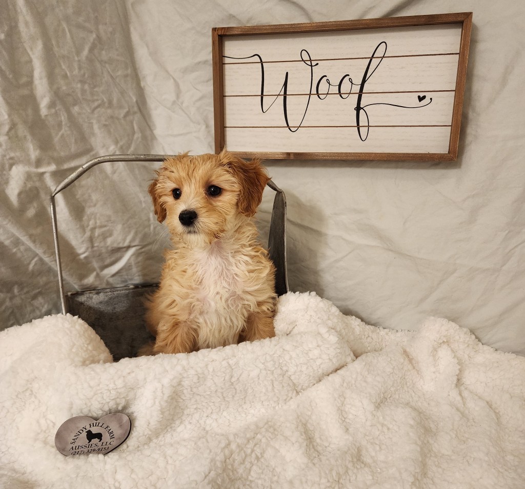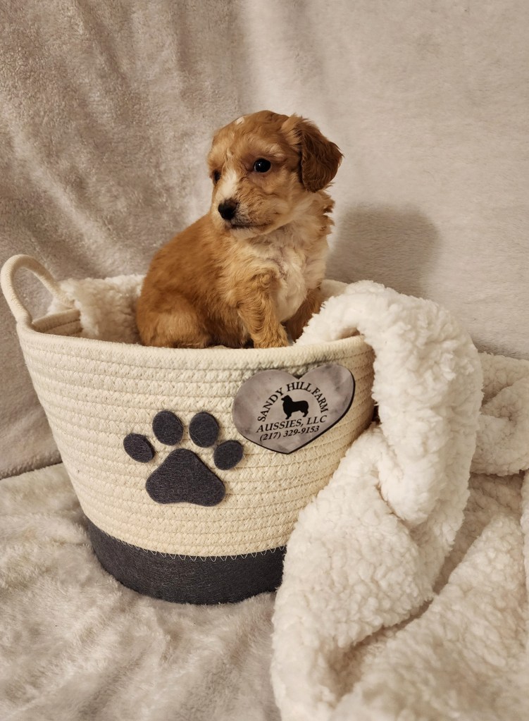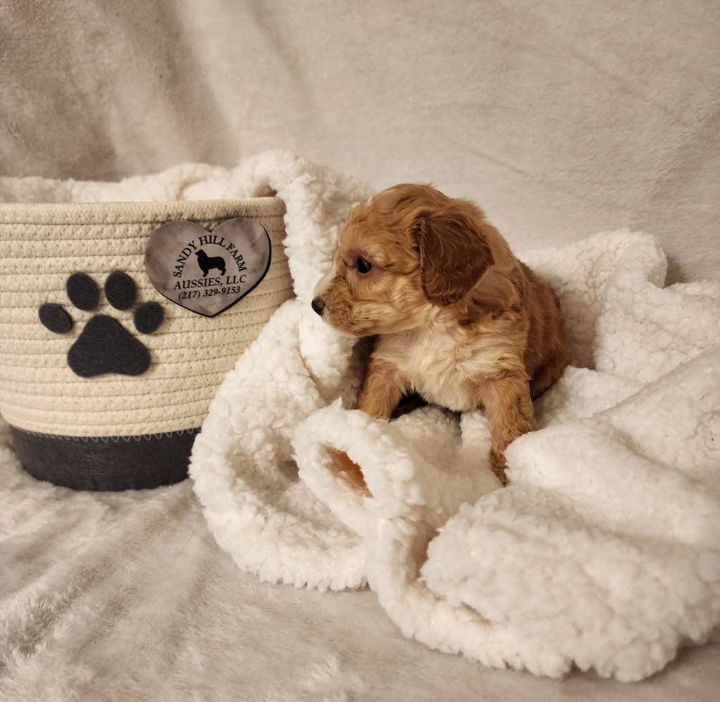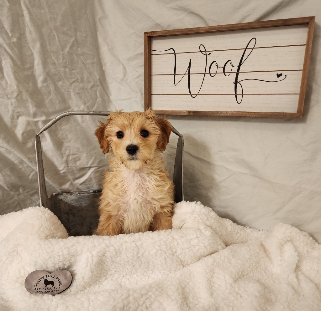 1 Brown-Eyed Yellow Large Toy/ Small Mini Aussiedoodle Male with full tail (below) $900