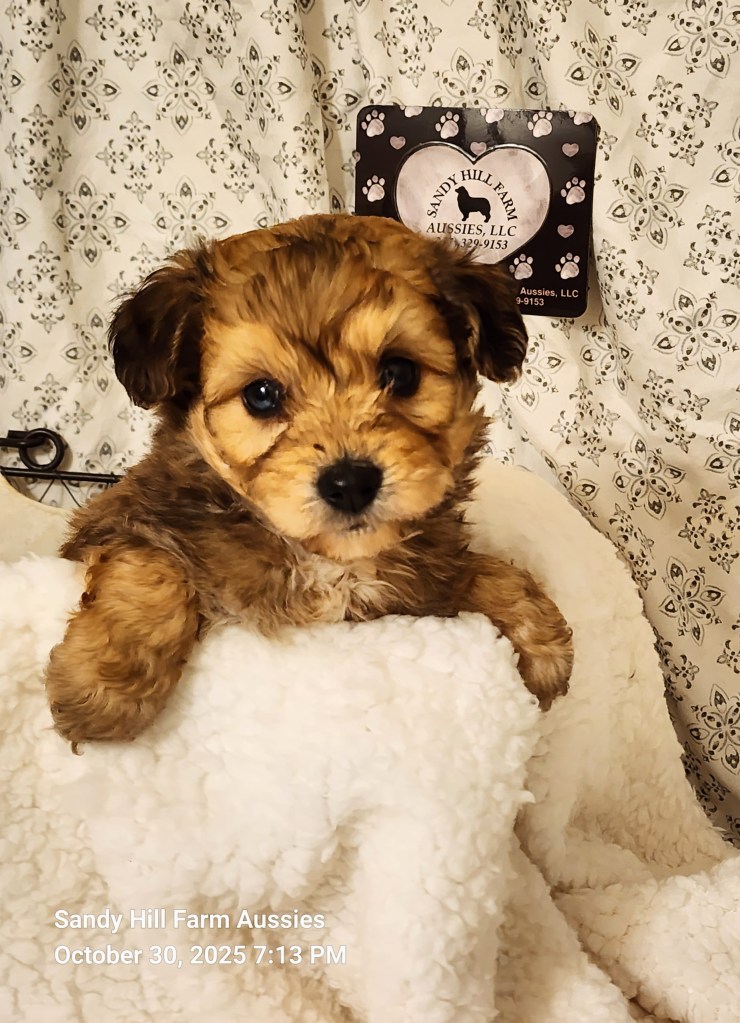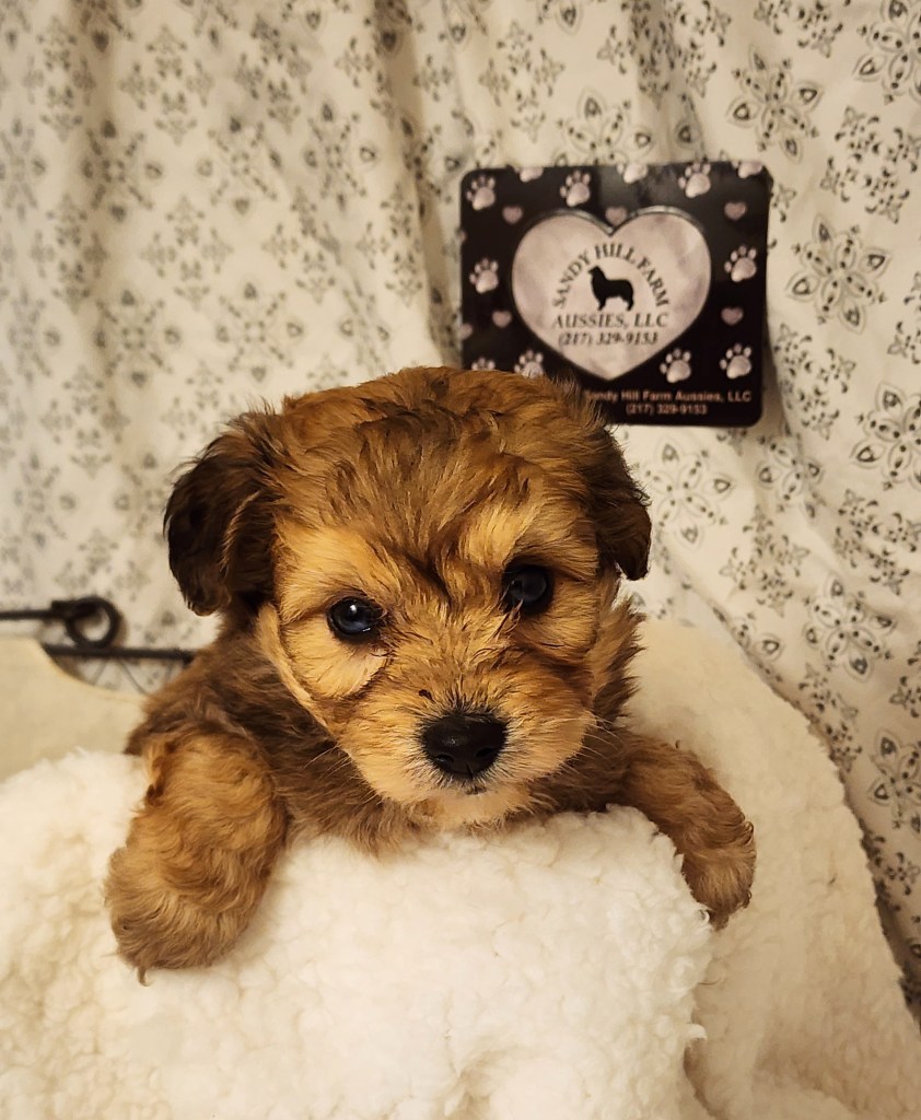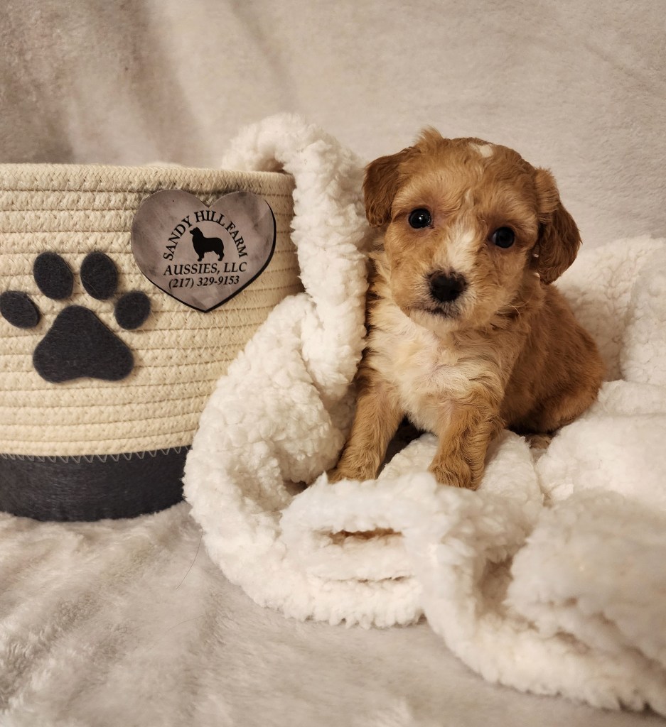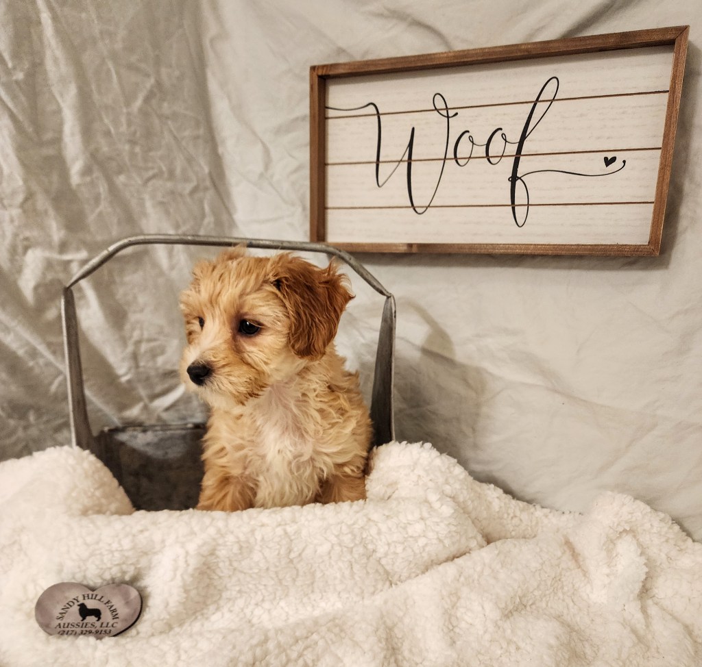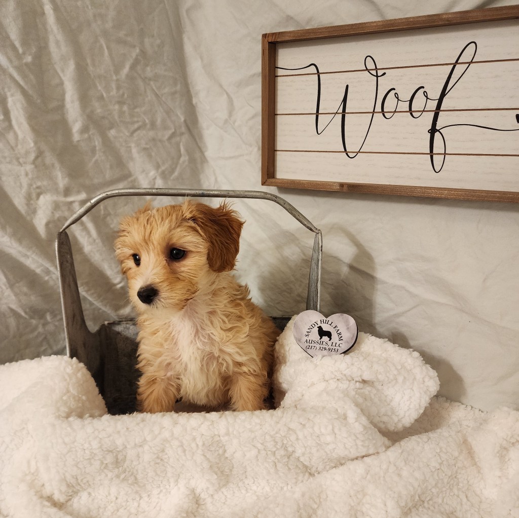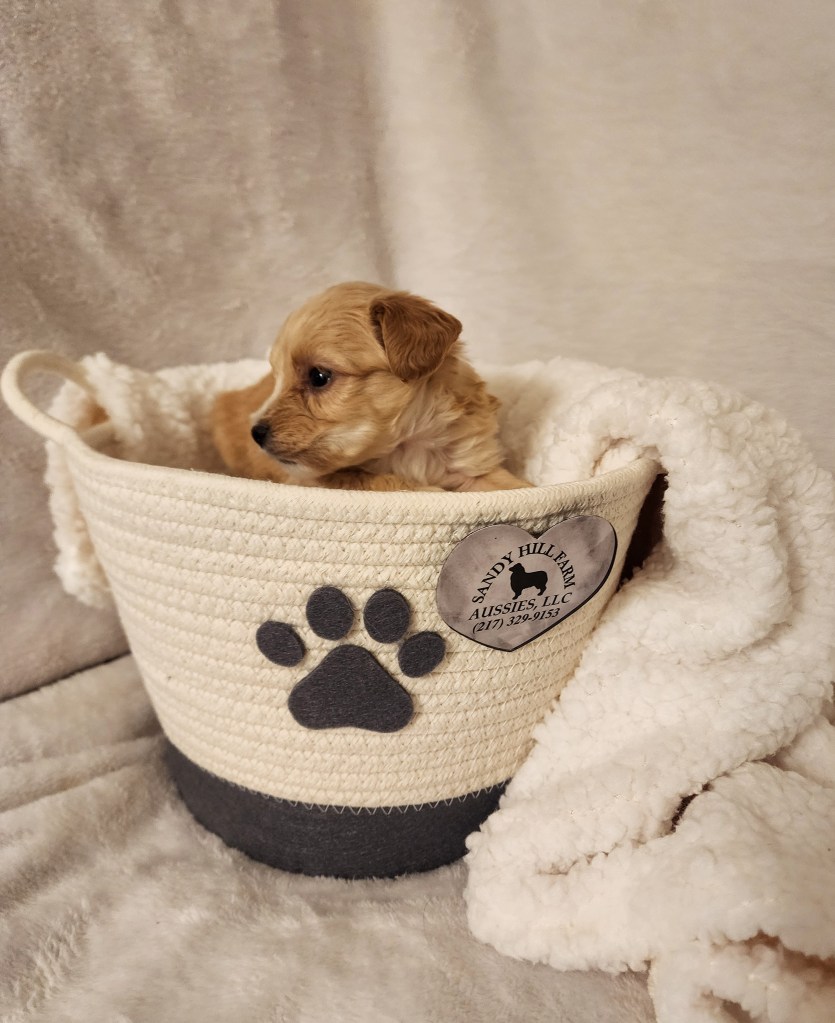 1 Brown-Eyed Yellow Large Toy/ Small Mini Aussiedoodle Male with full tail (below) $900