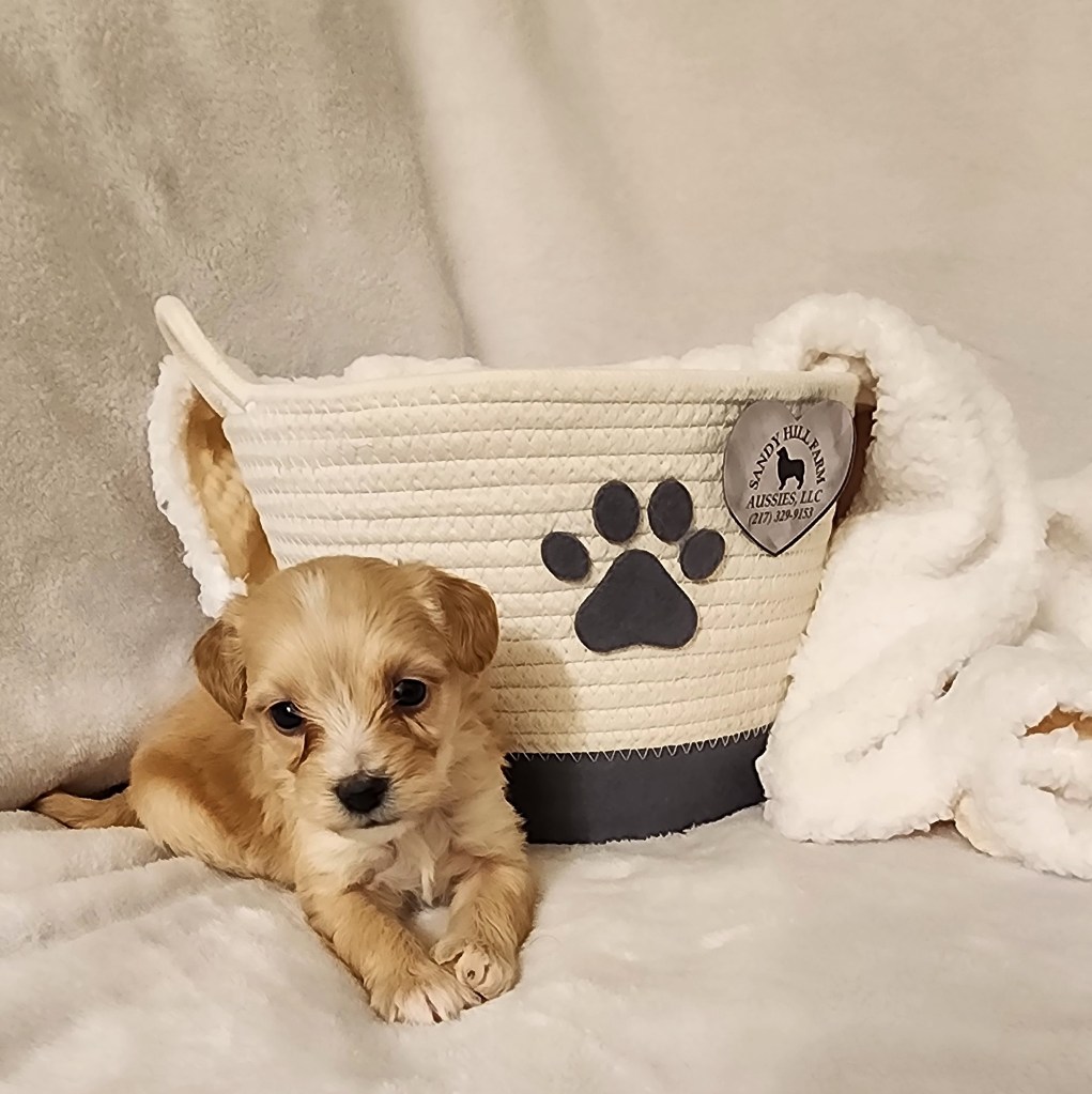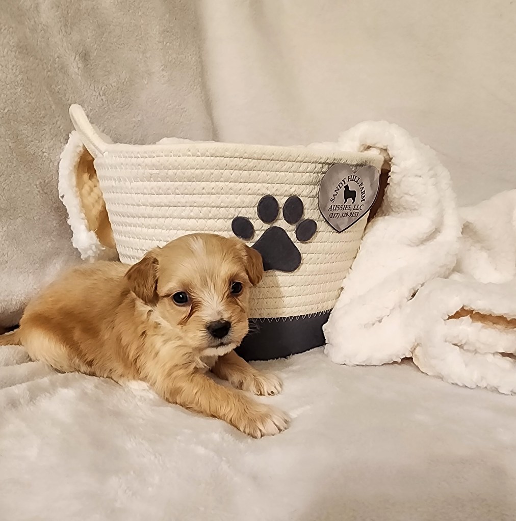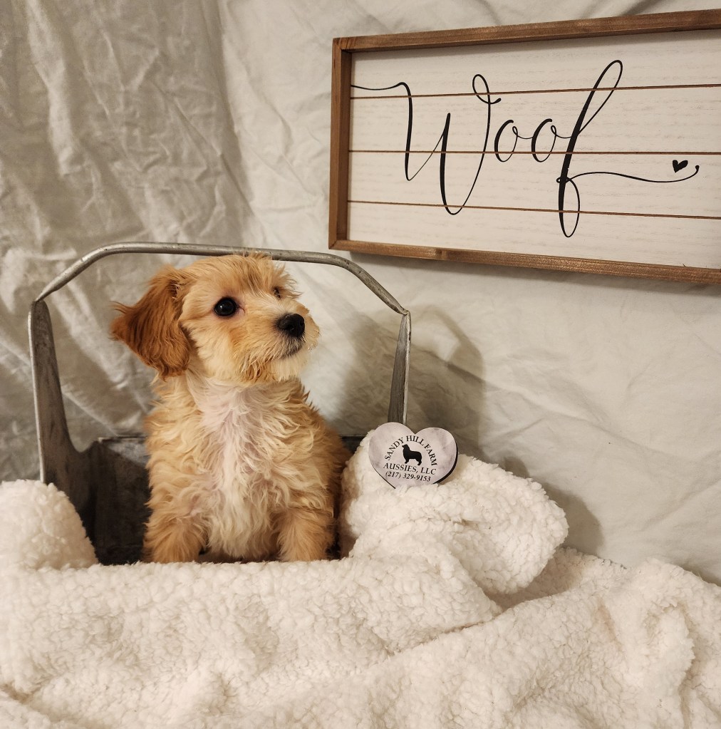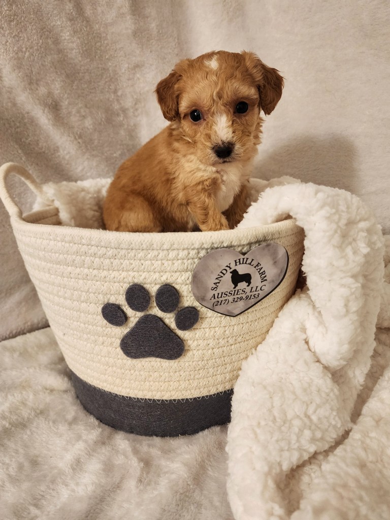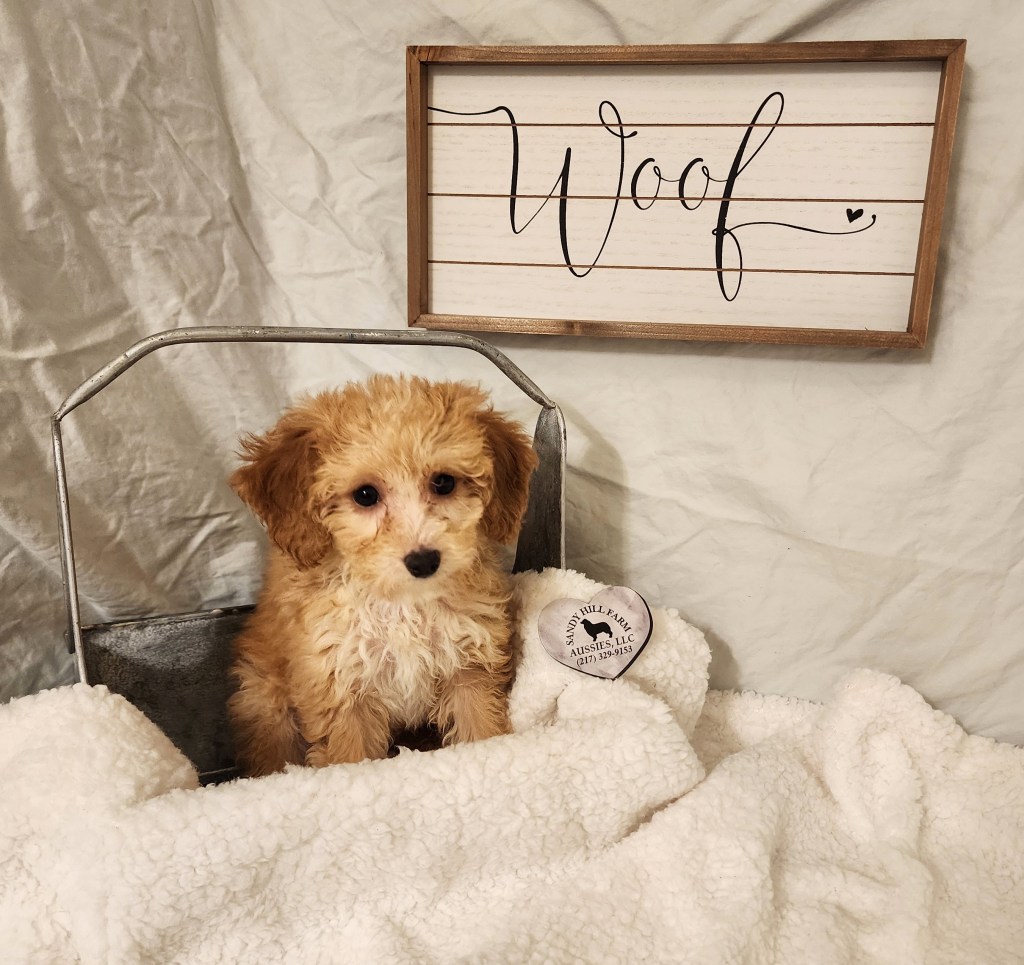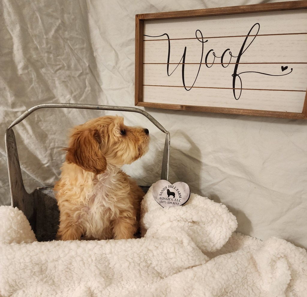 1 Brown-Eyed Yellow Large Toy/ Small Mini Aussiedoodle Male with full tail (below) $900
