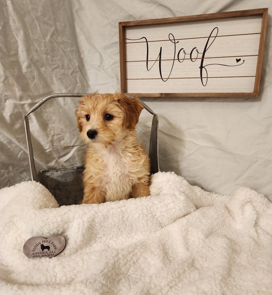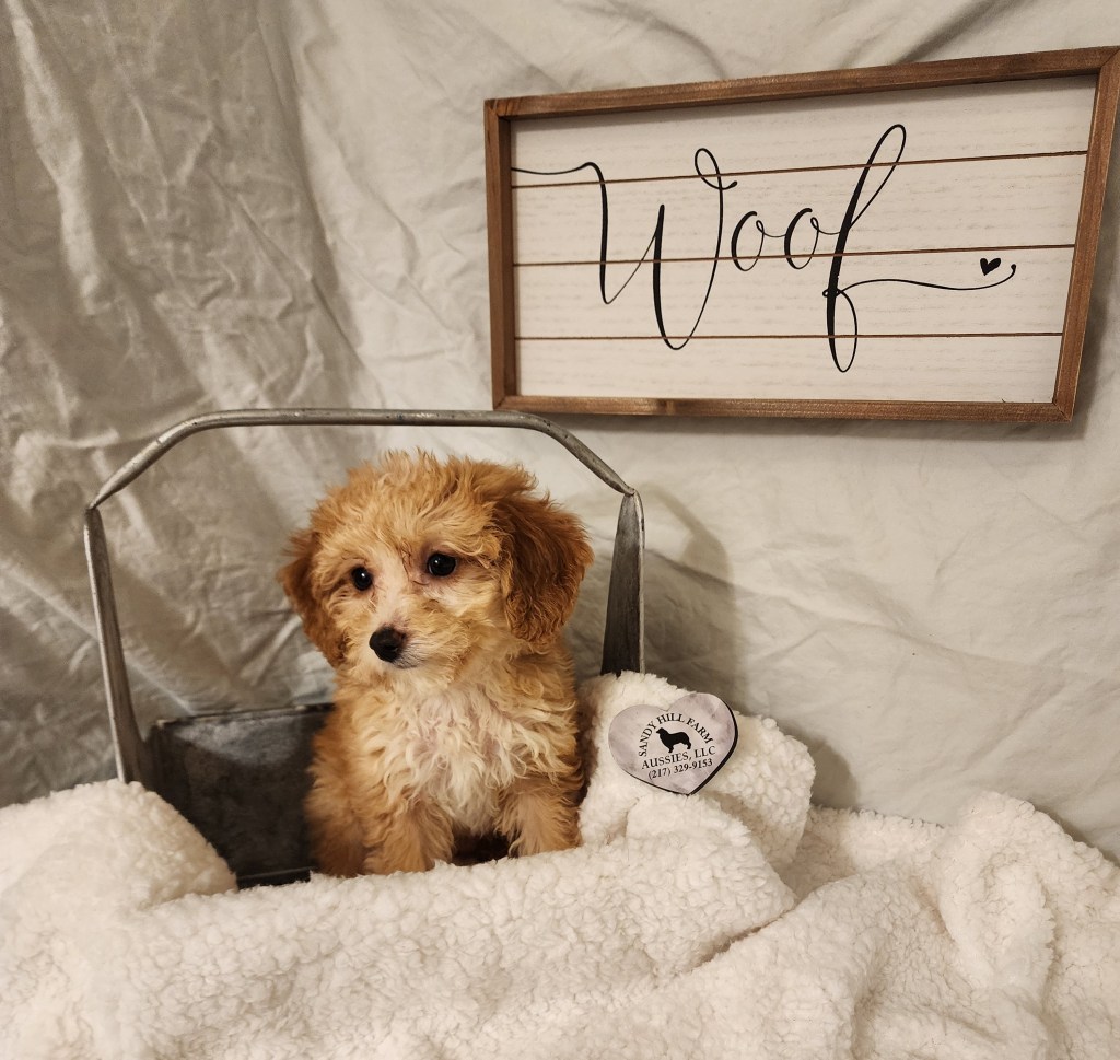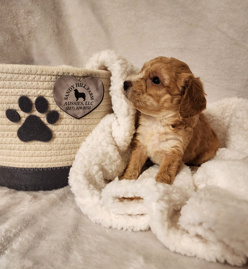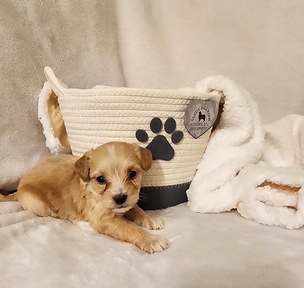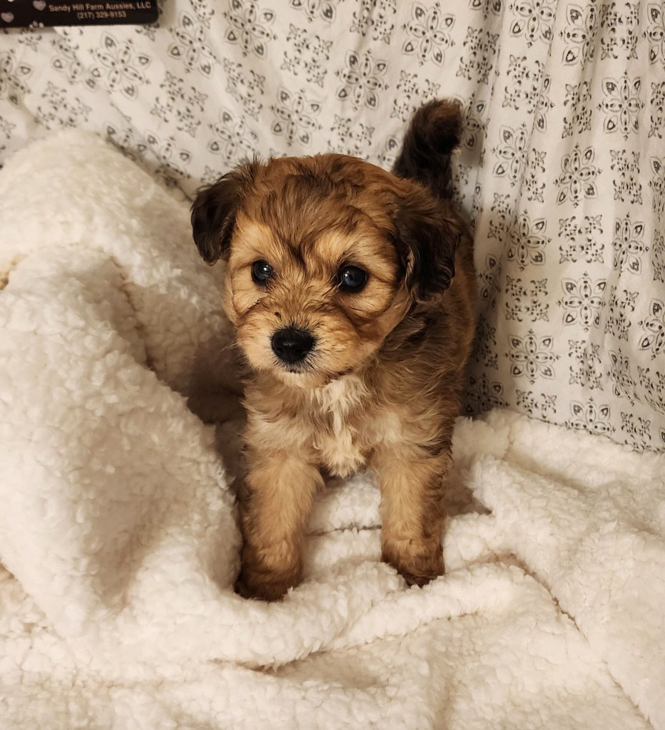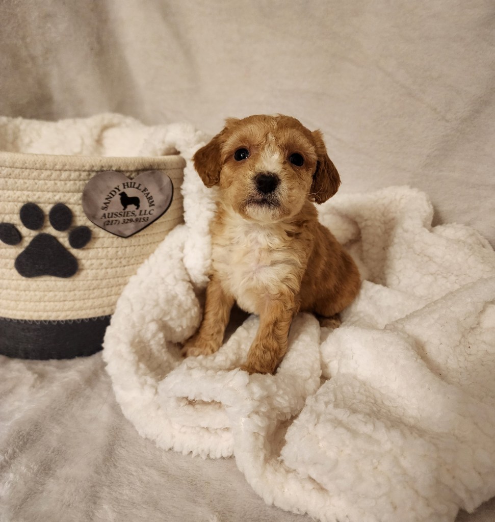 1 Brown-Eyed Yellow Large Toy/ Small Mini Aussiedoodle Male with full tail (below) $900