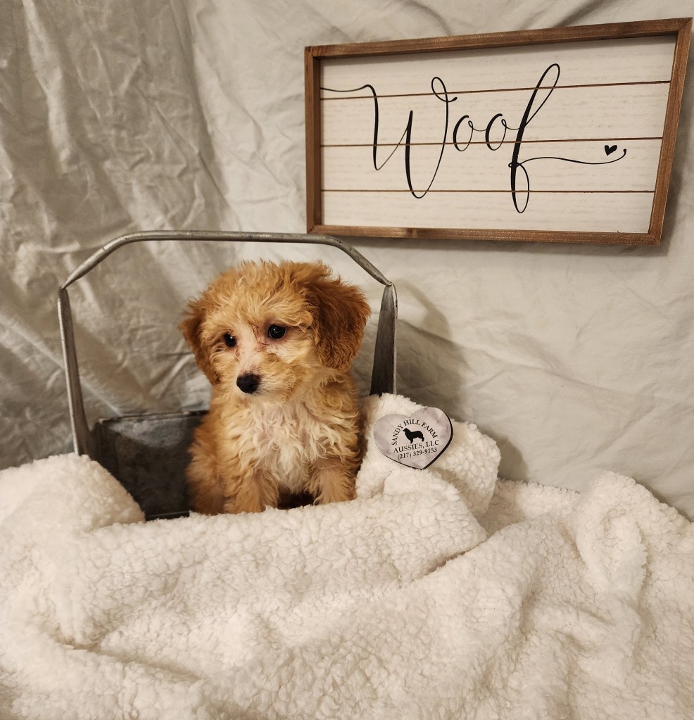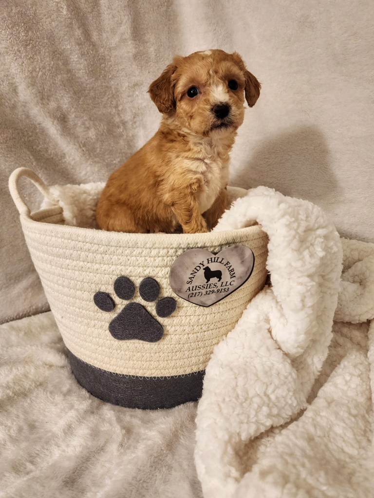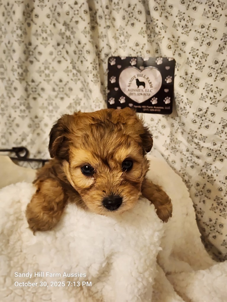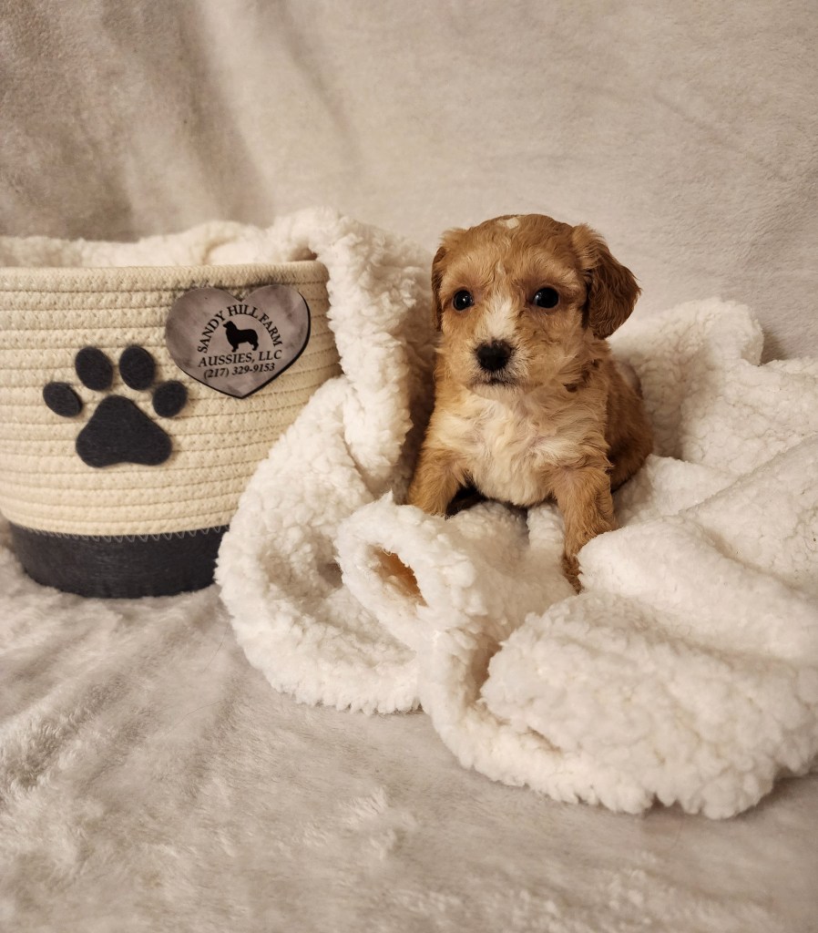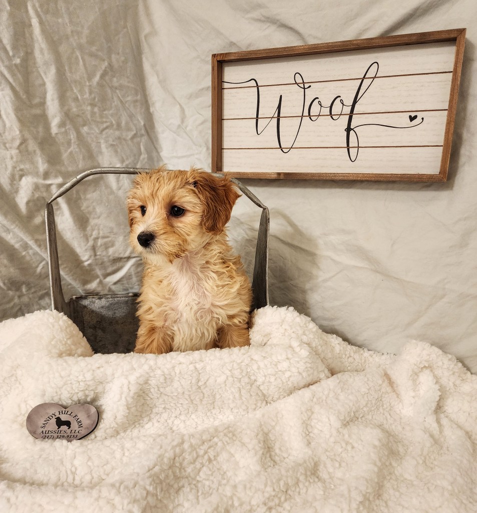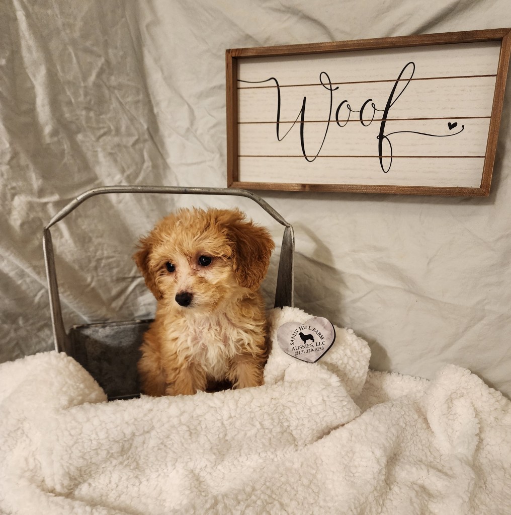 1 Brown-Eyed Yellow Large Toy/ Small Mini Aussiedoodle Male with full tail (below) $900
