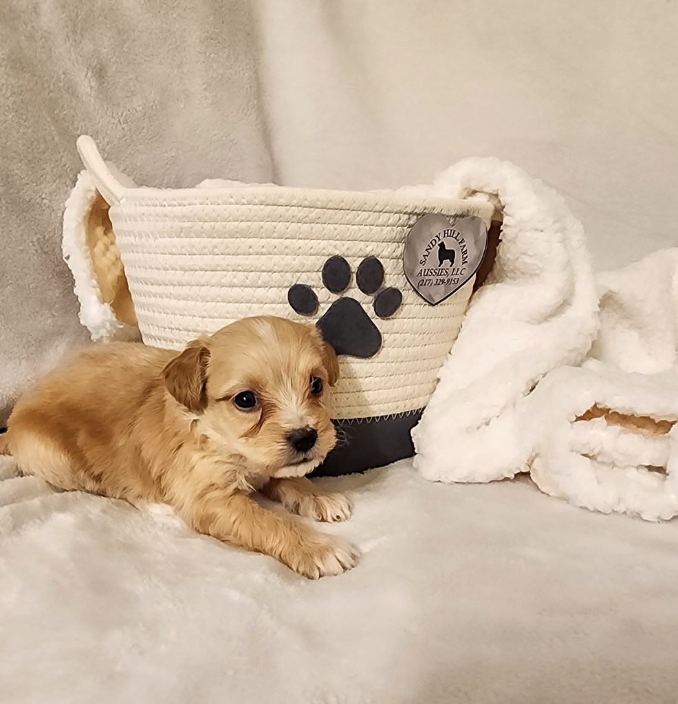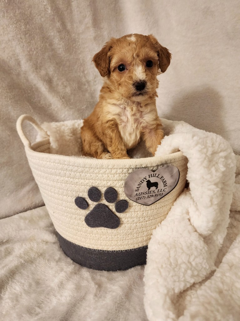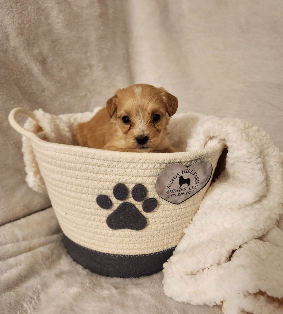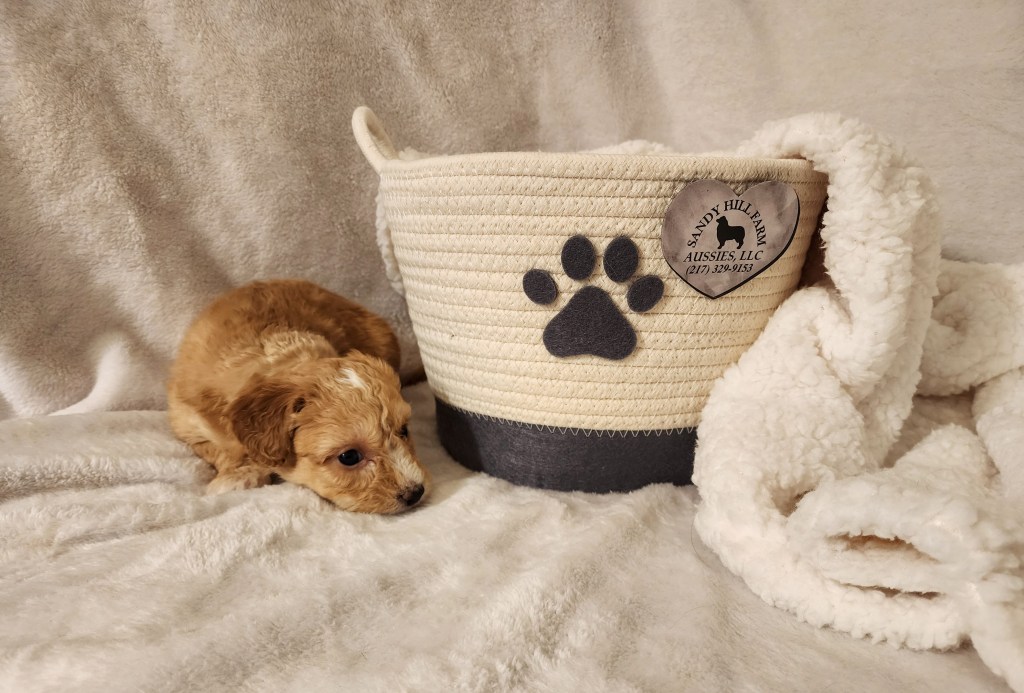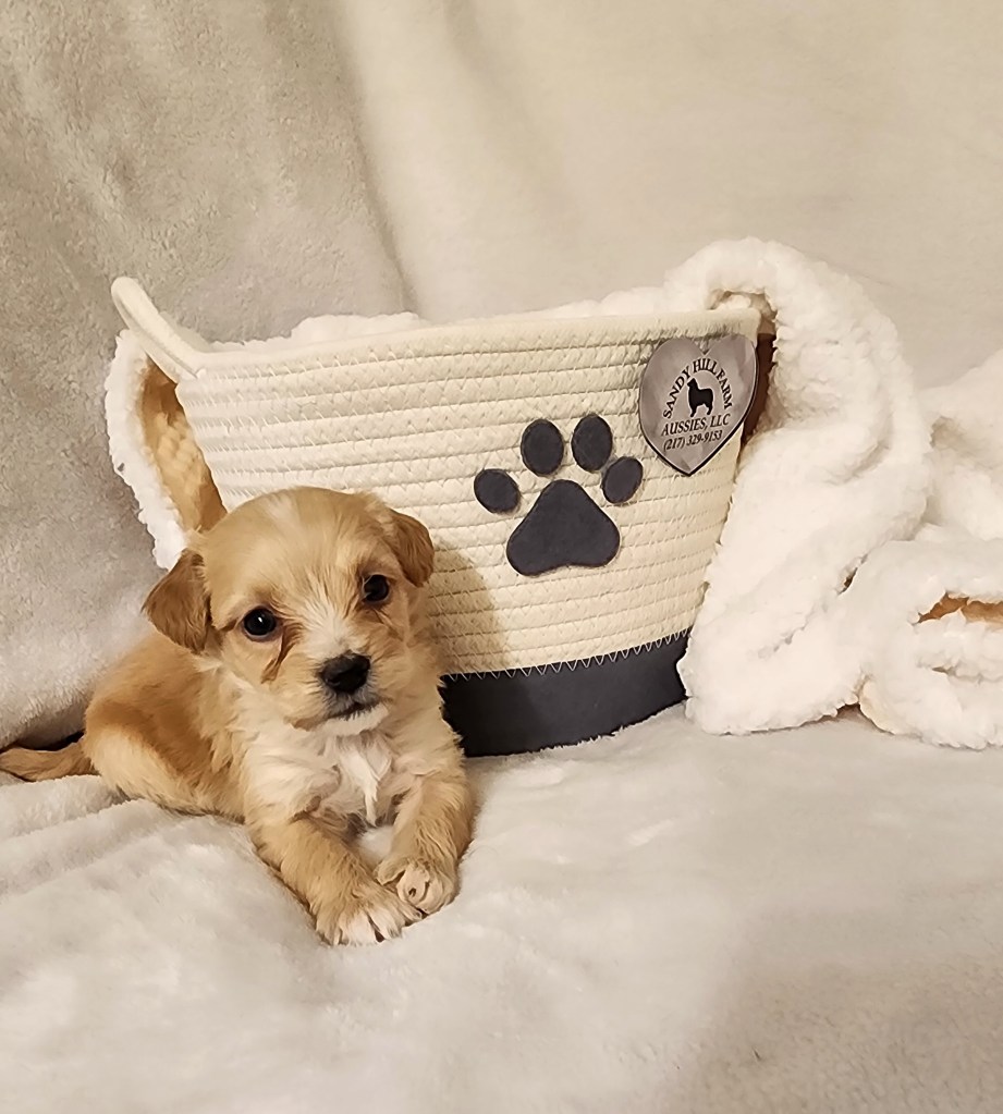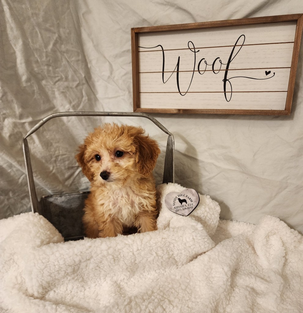 1 Brown-Eyed Yellow Large Toy/ Small Mini Aussiedoodle Male with full tail (below) $900