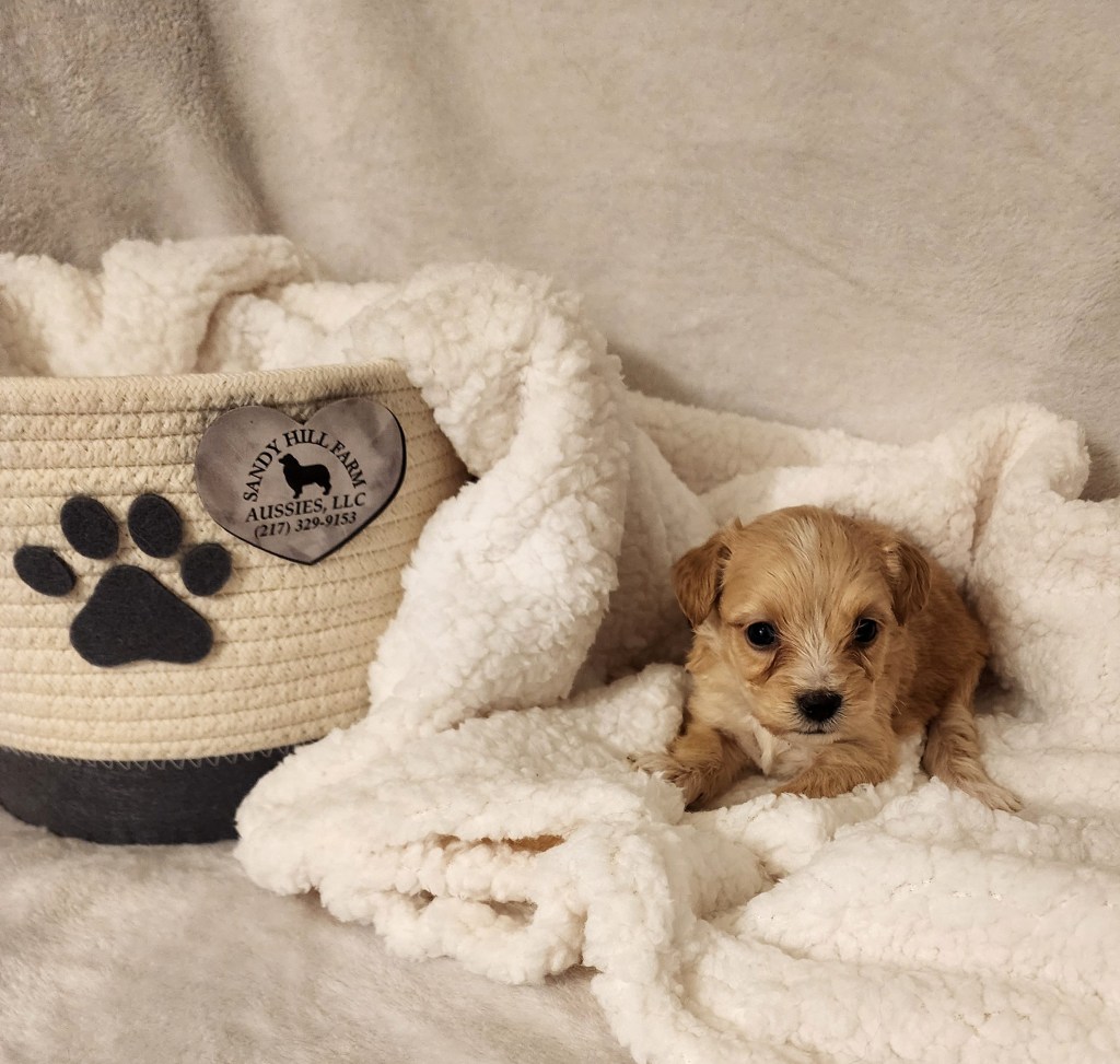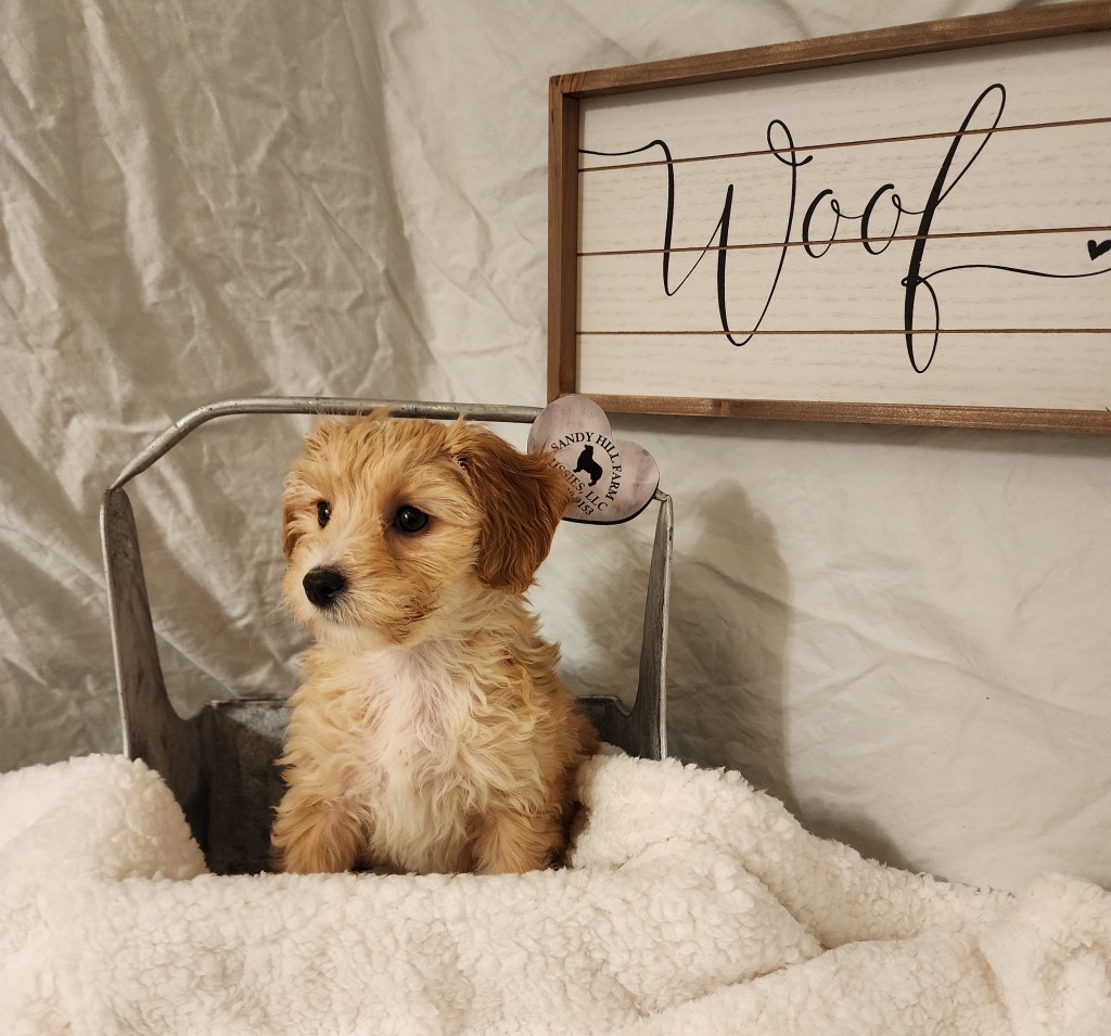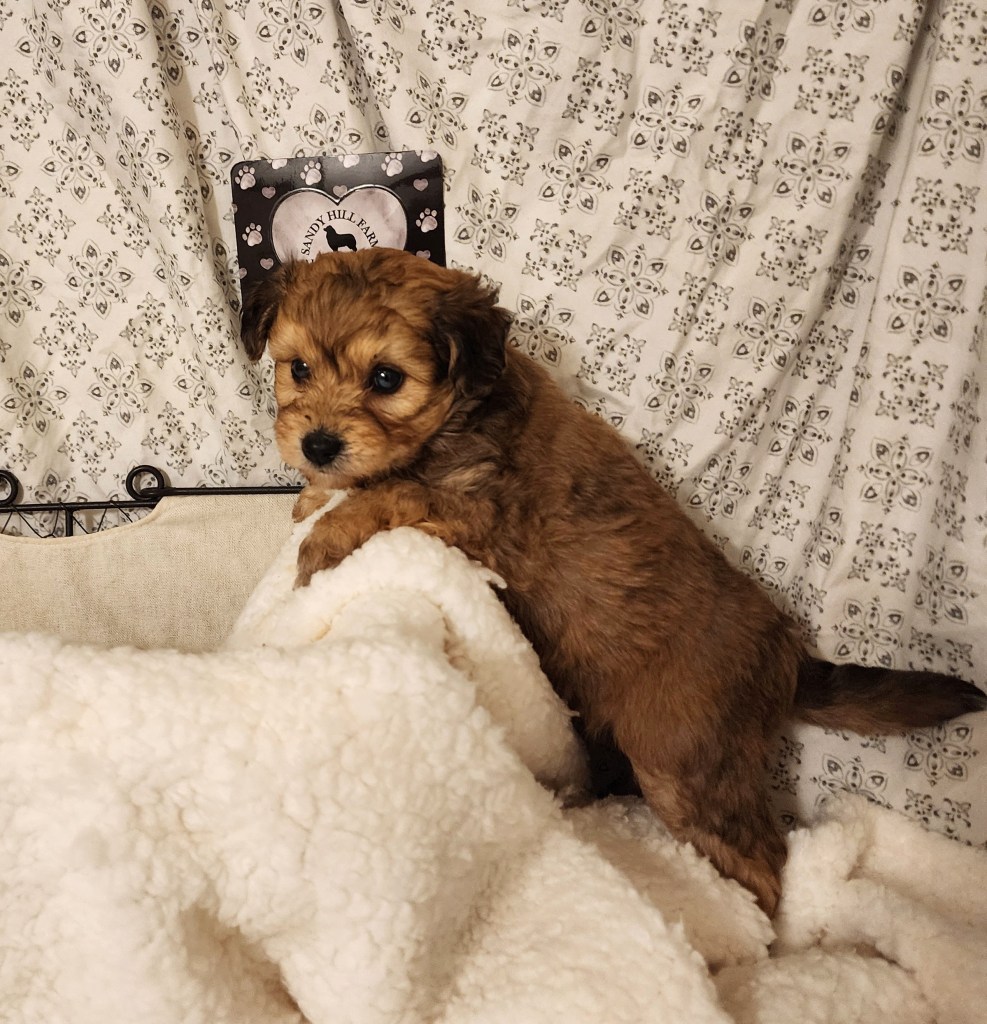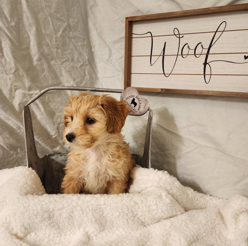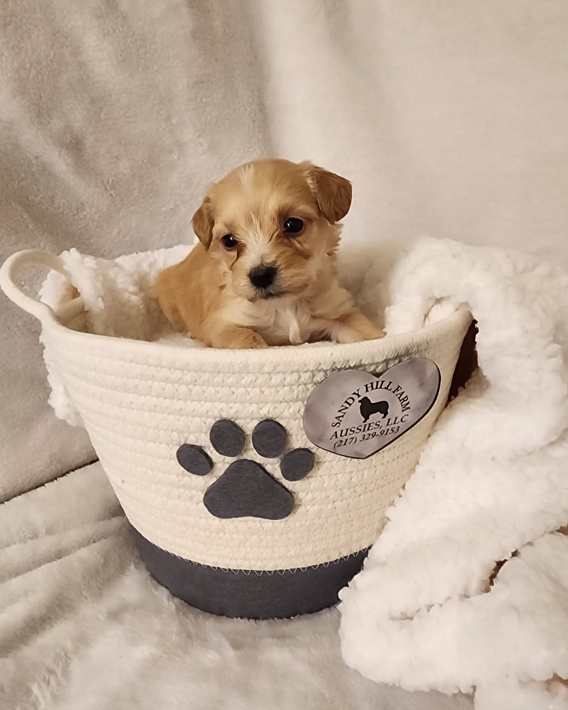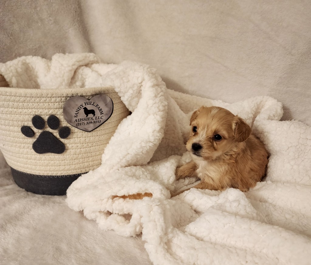 1 Brown-Eyed Yellow Large Toy/ Small Mini Aussiedoodle Male with full tail (below) $900