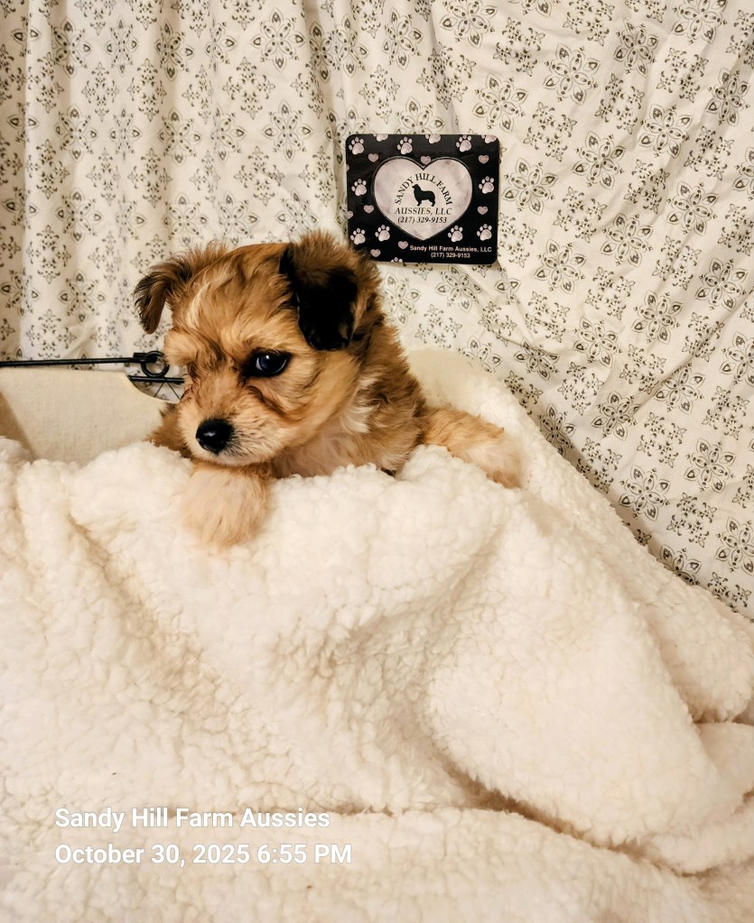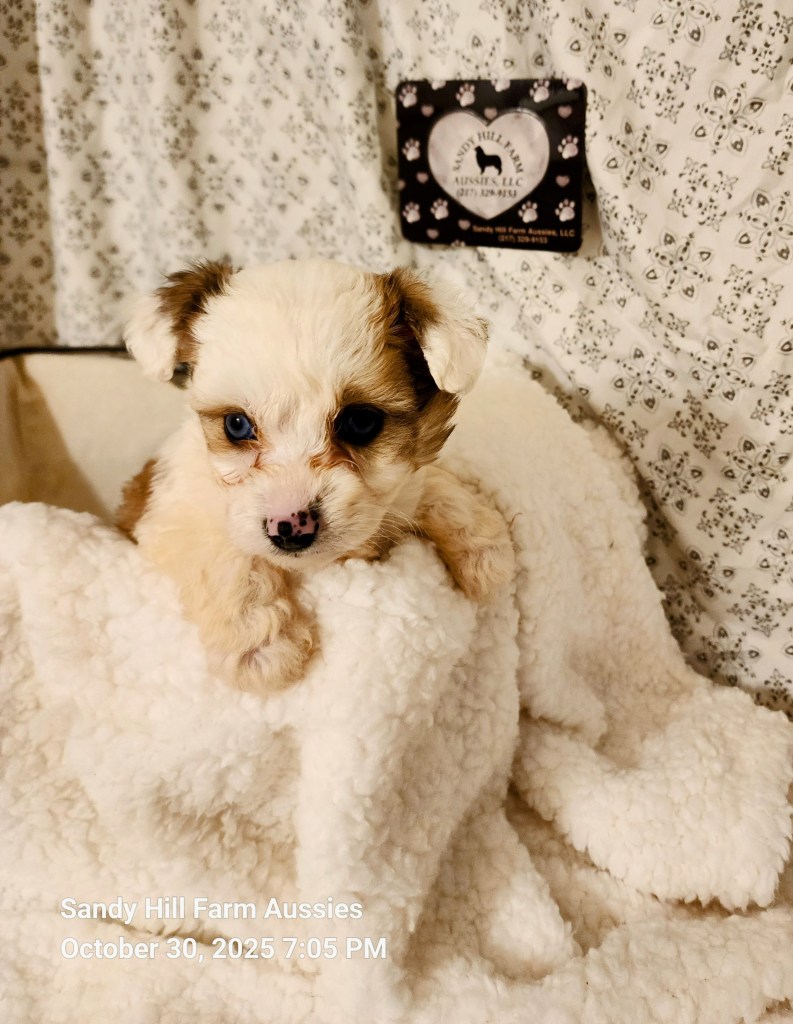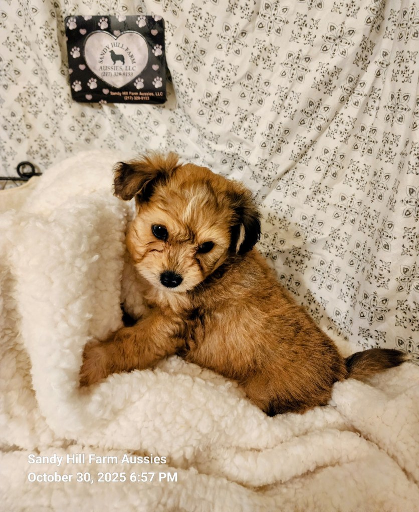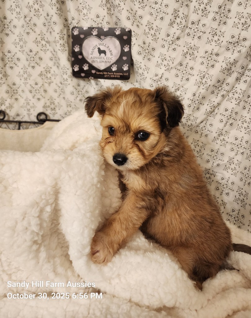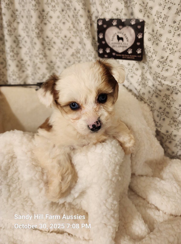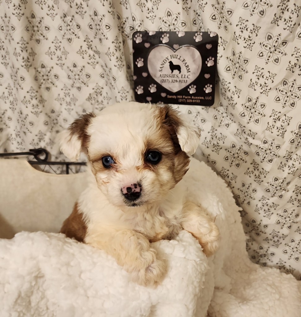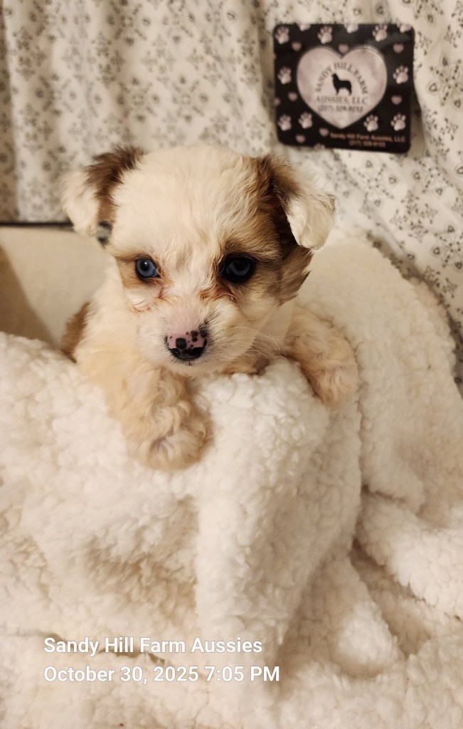 ***PEACHES*** 1 Blue & Brown-Eyed (1 Blue & 1 Brown) Fawn Sable Merle Tiny Toy Frozen Aussiedoodle Female with full tail (below) $1300