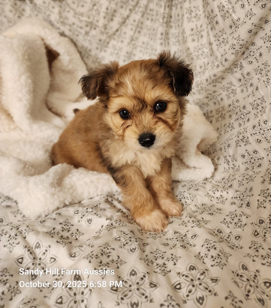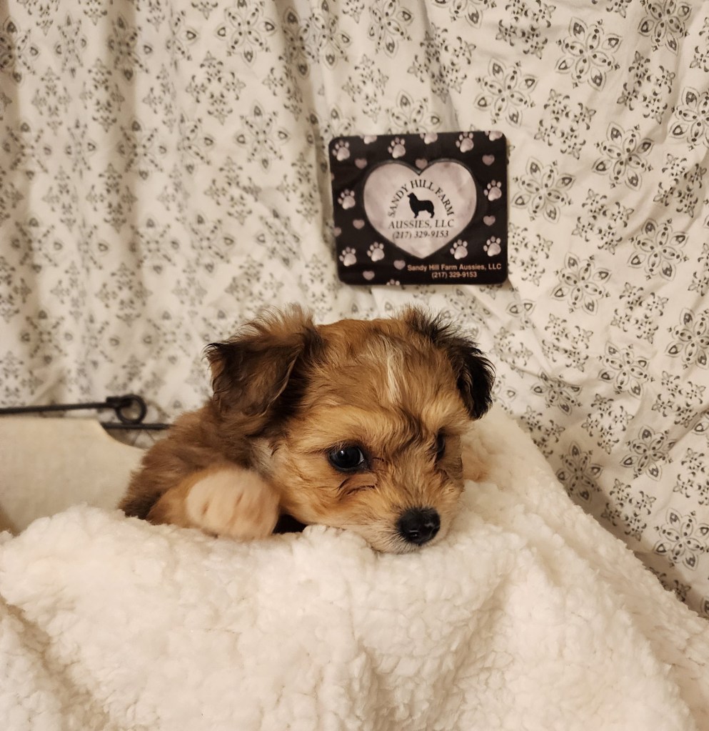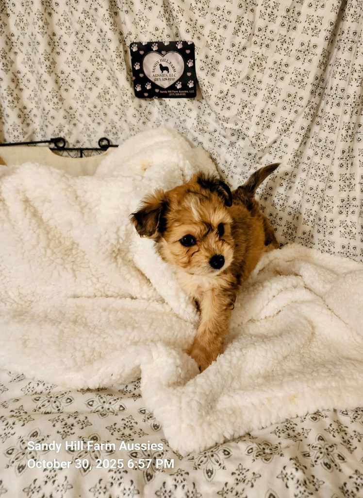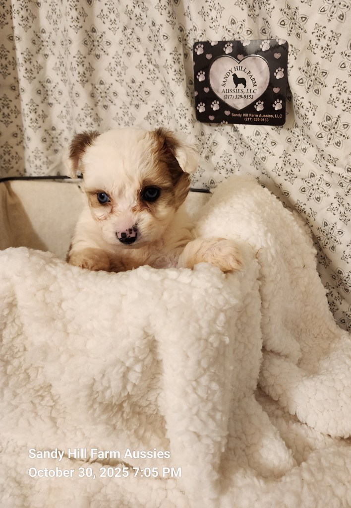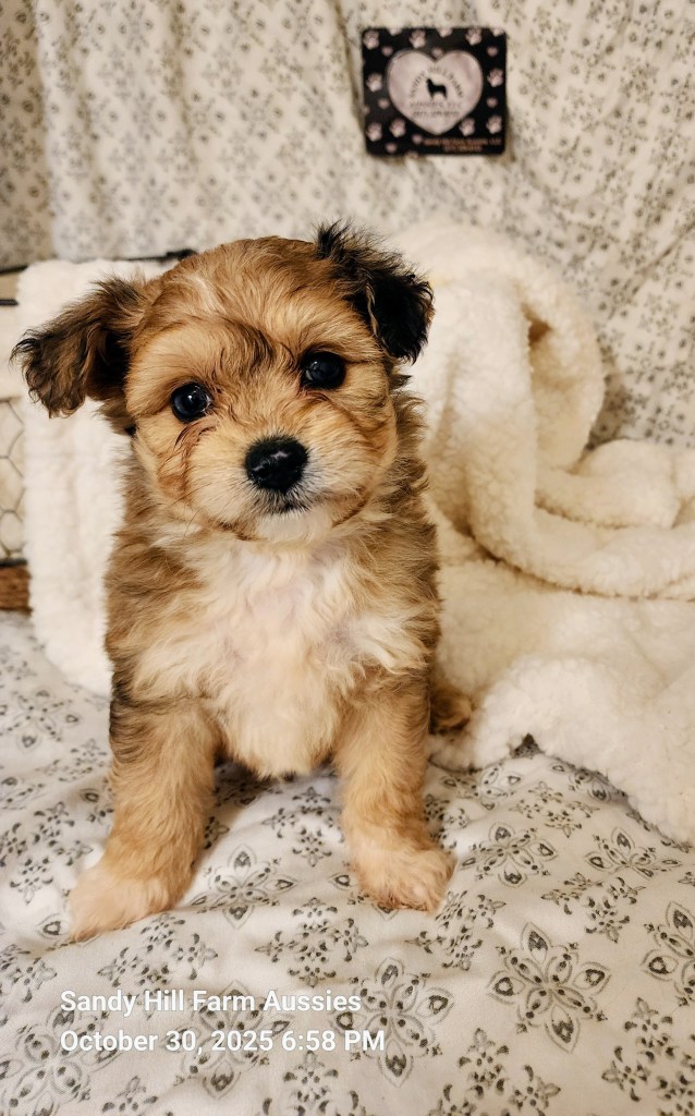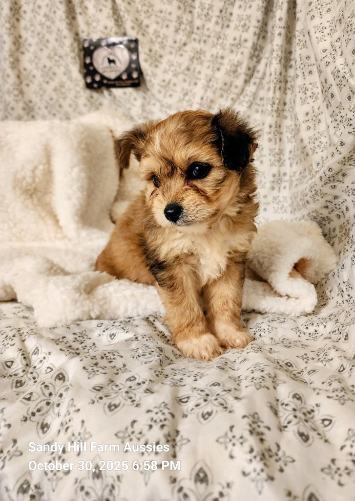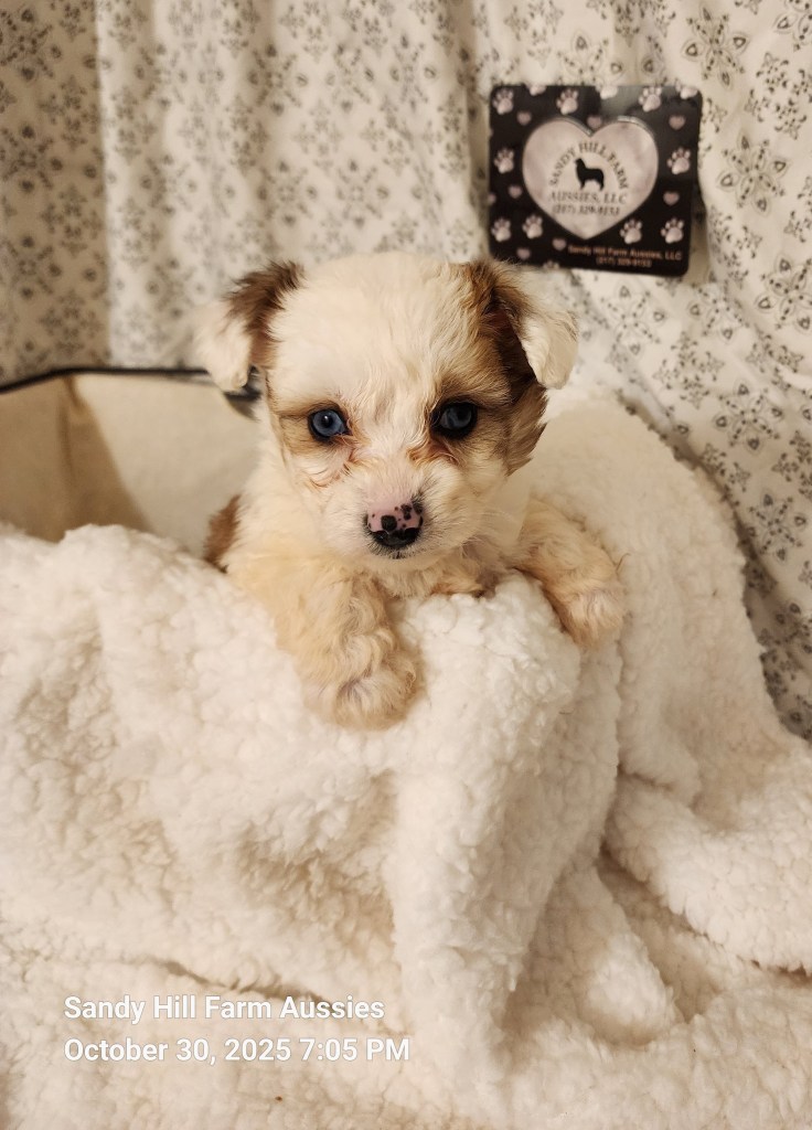 ***PEACHES*** 1 Blue & Brown-Eyed (1 Blue & 1 Brown) Fawn Sable Merle Tiny Toy Frozen Aussiedoodle Female with full tail (below) $1300
