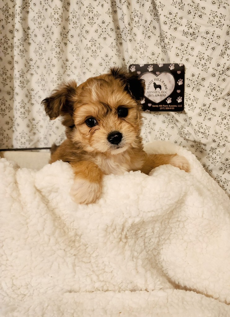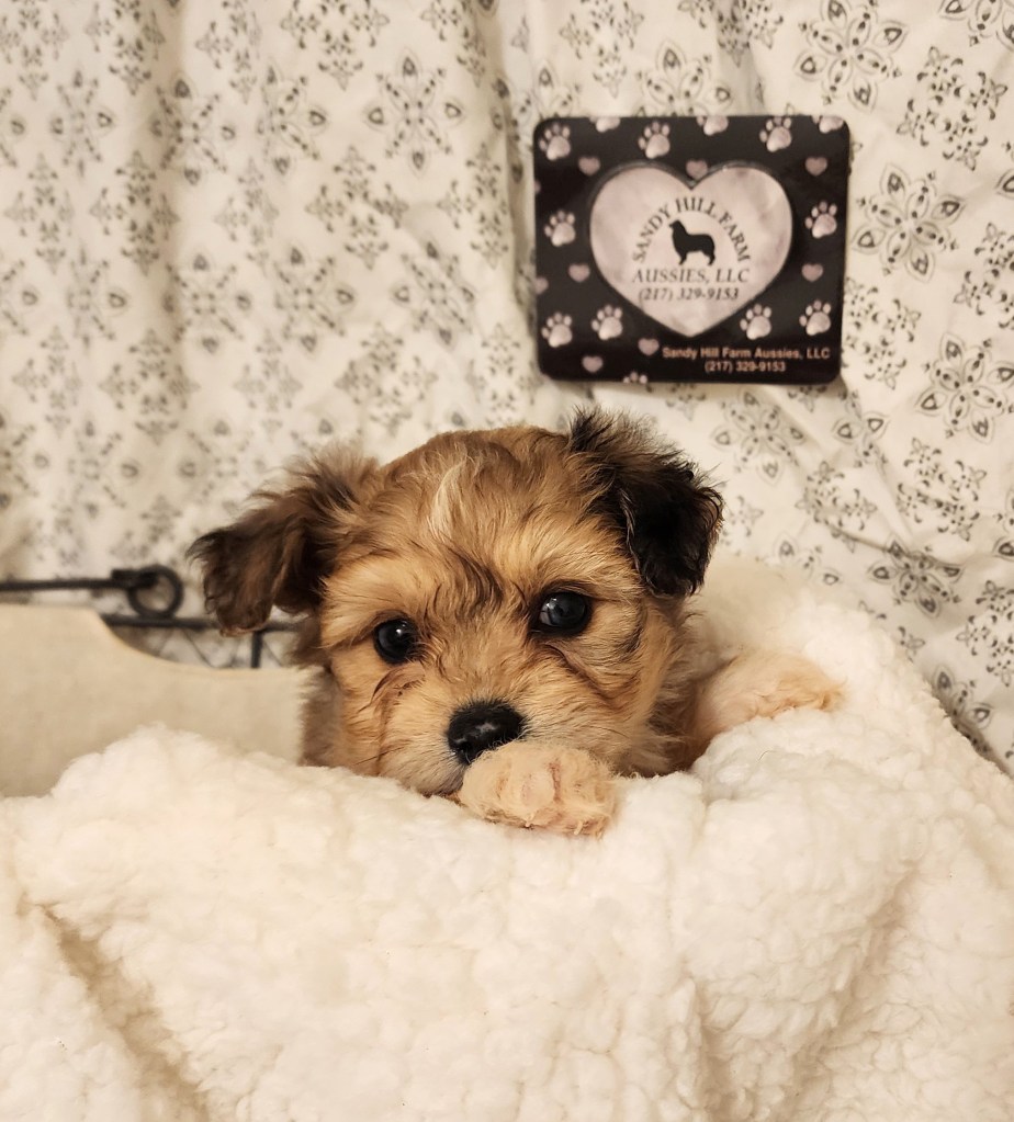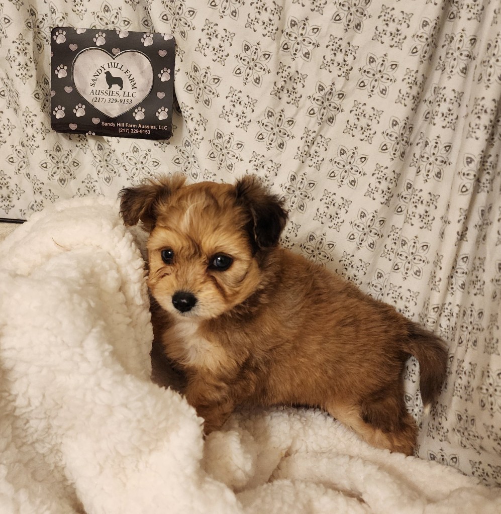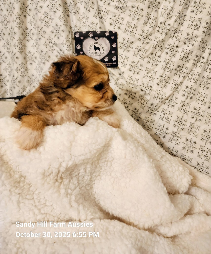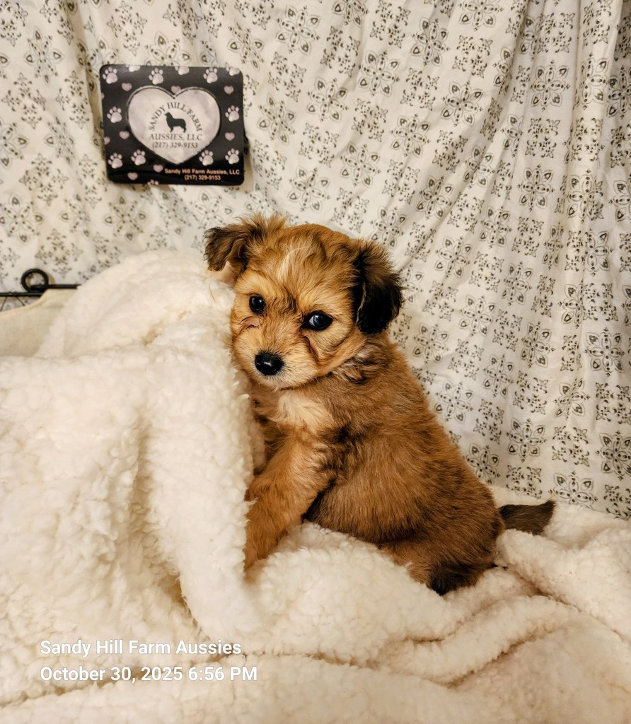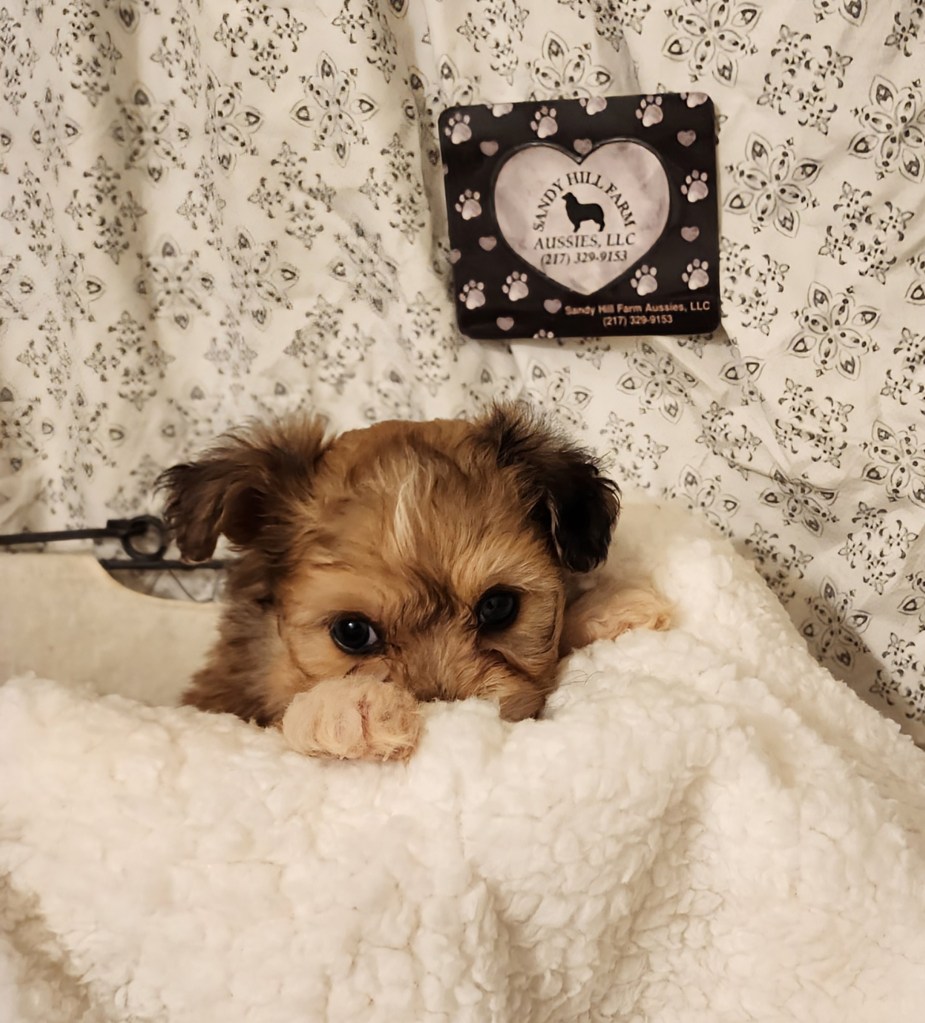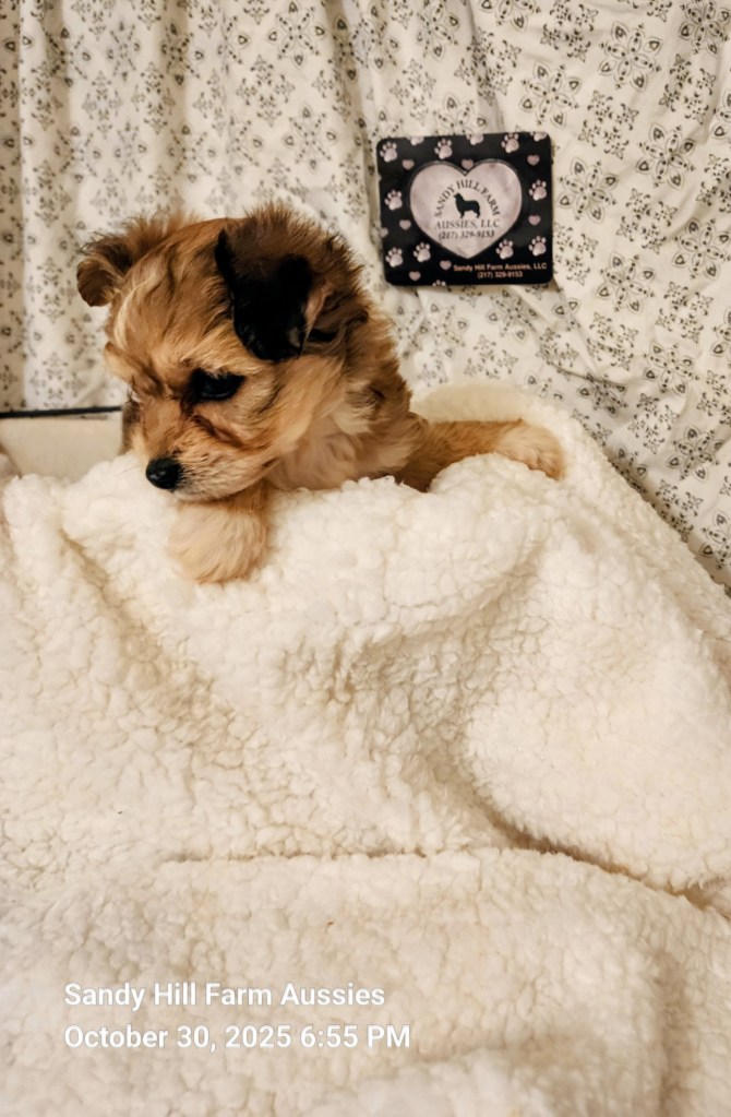 ***PEACHES*** 1 Blue & Brown-Eyed (1 Blue & 1 Brown) Fawn Sable Merle Tiny Toy Frozen Aussiedoodle Female with full tail (below) $1300