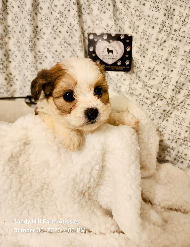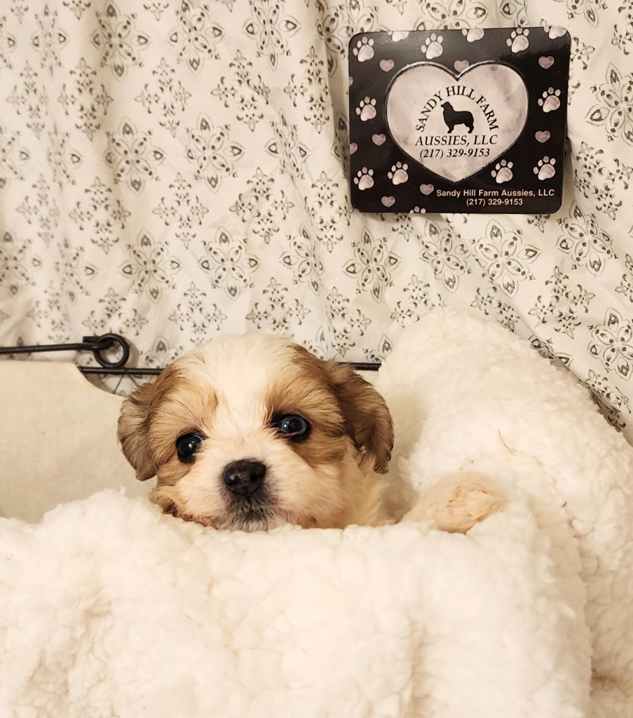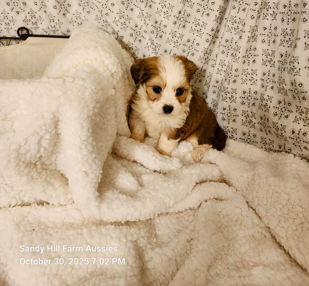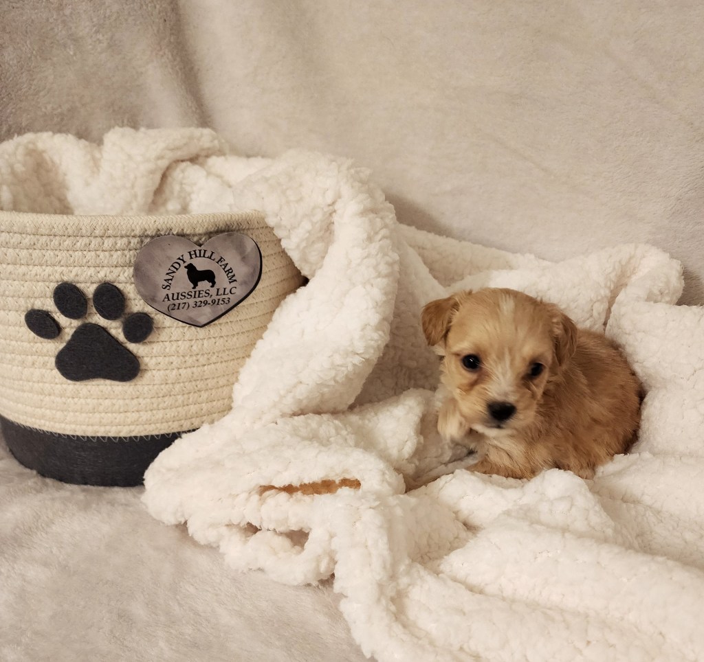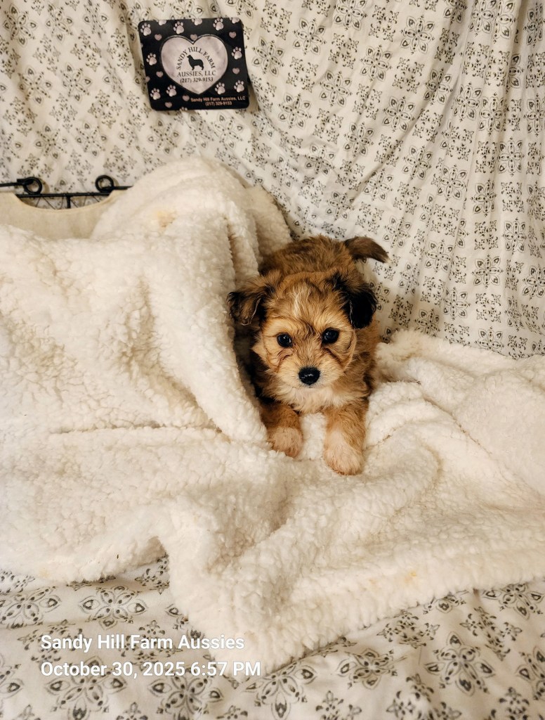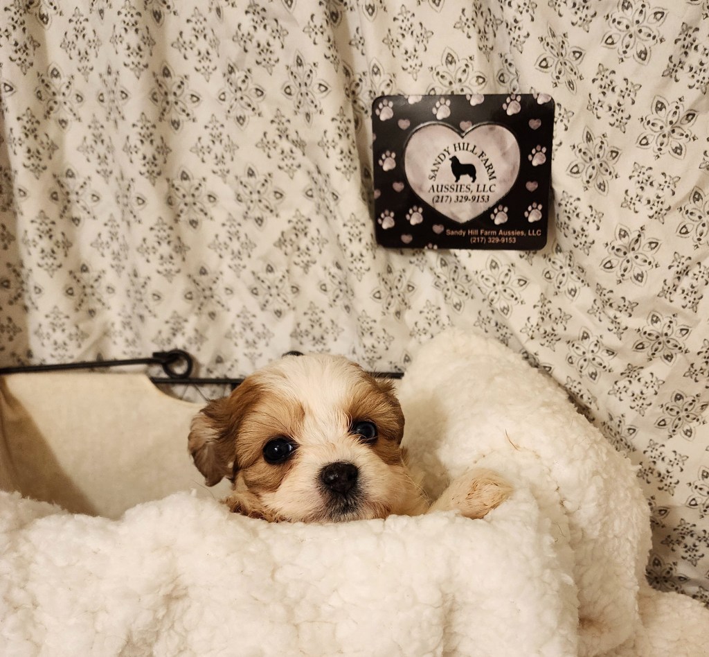 ***PEACHES*** 1 Blue & Brown-Eyed (1 Blue & 1 Brown) Fawn Sable Merle Tiny Toy Frozen Aussiedoodle Female with full tail (below) $1300