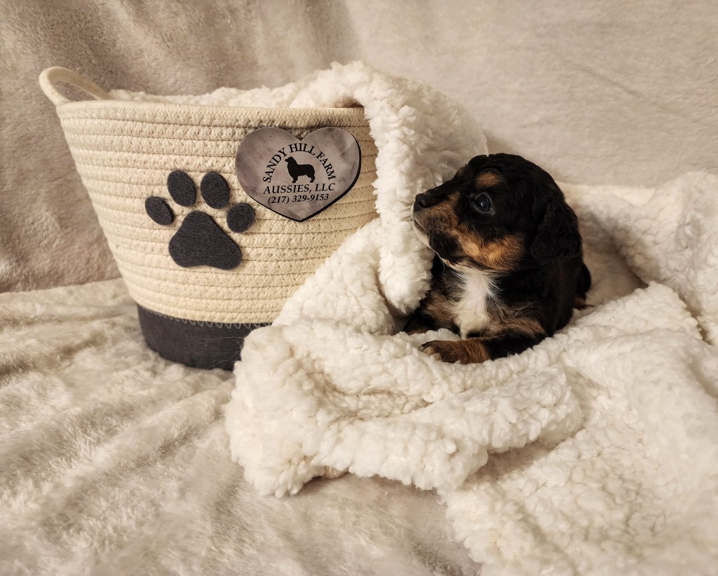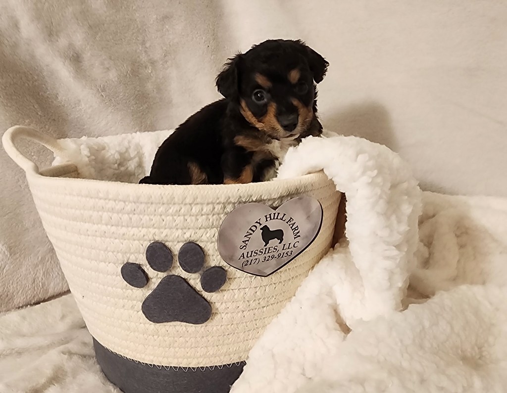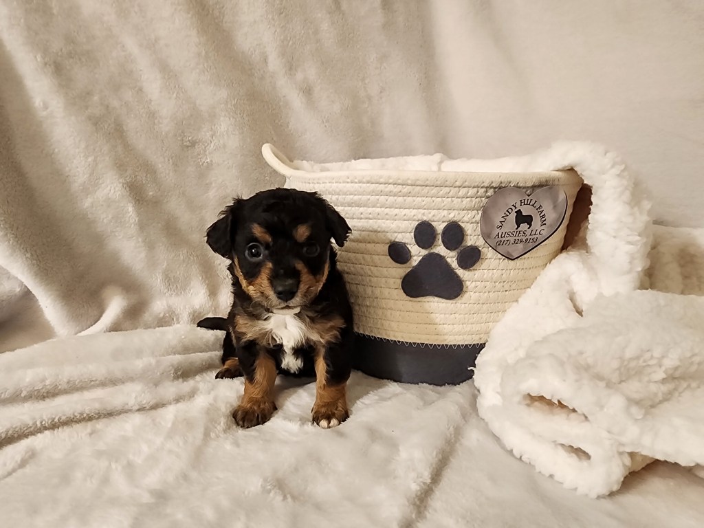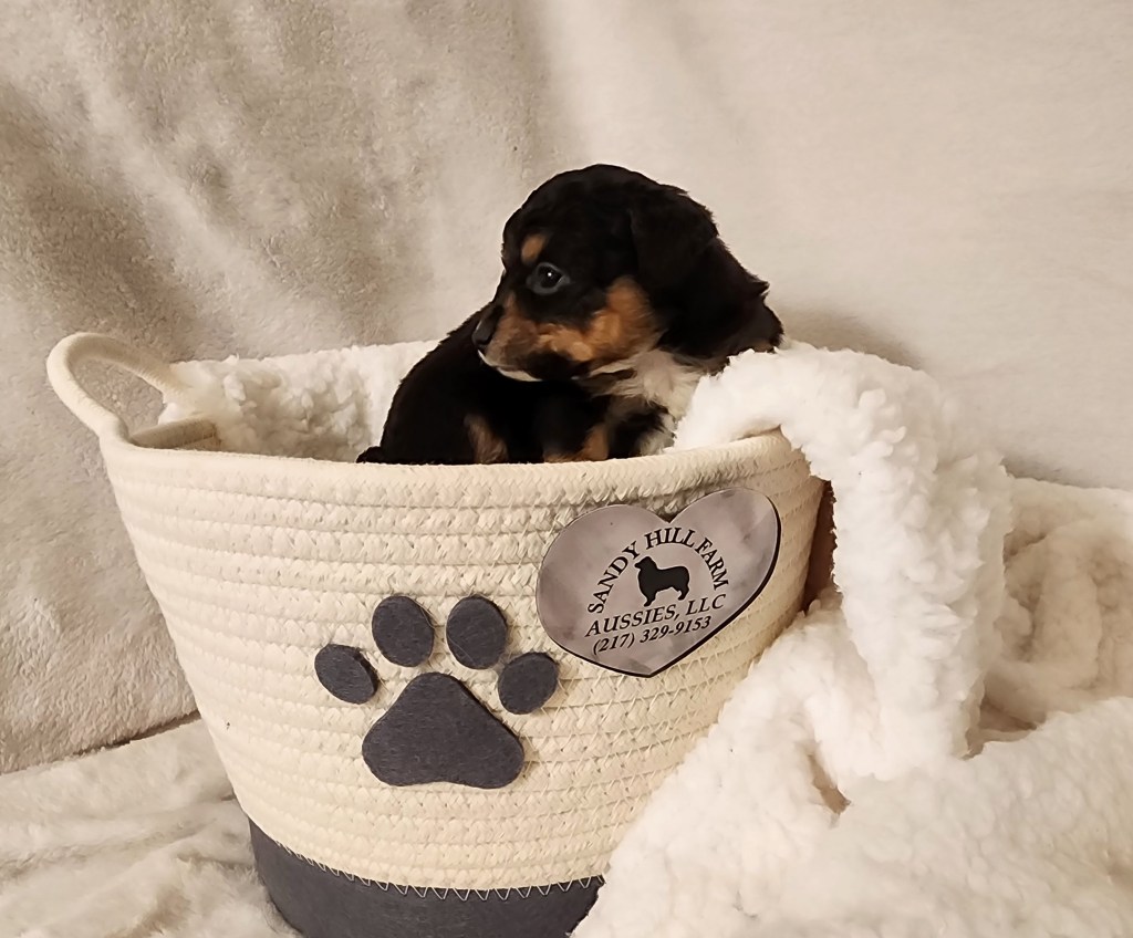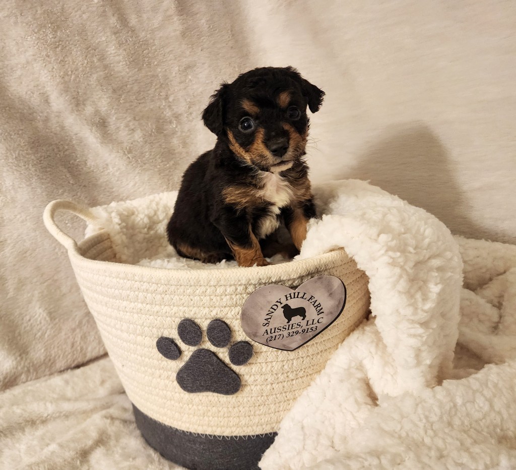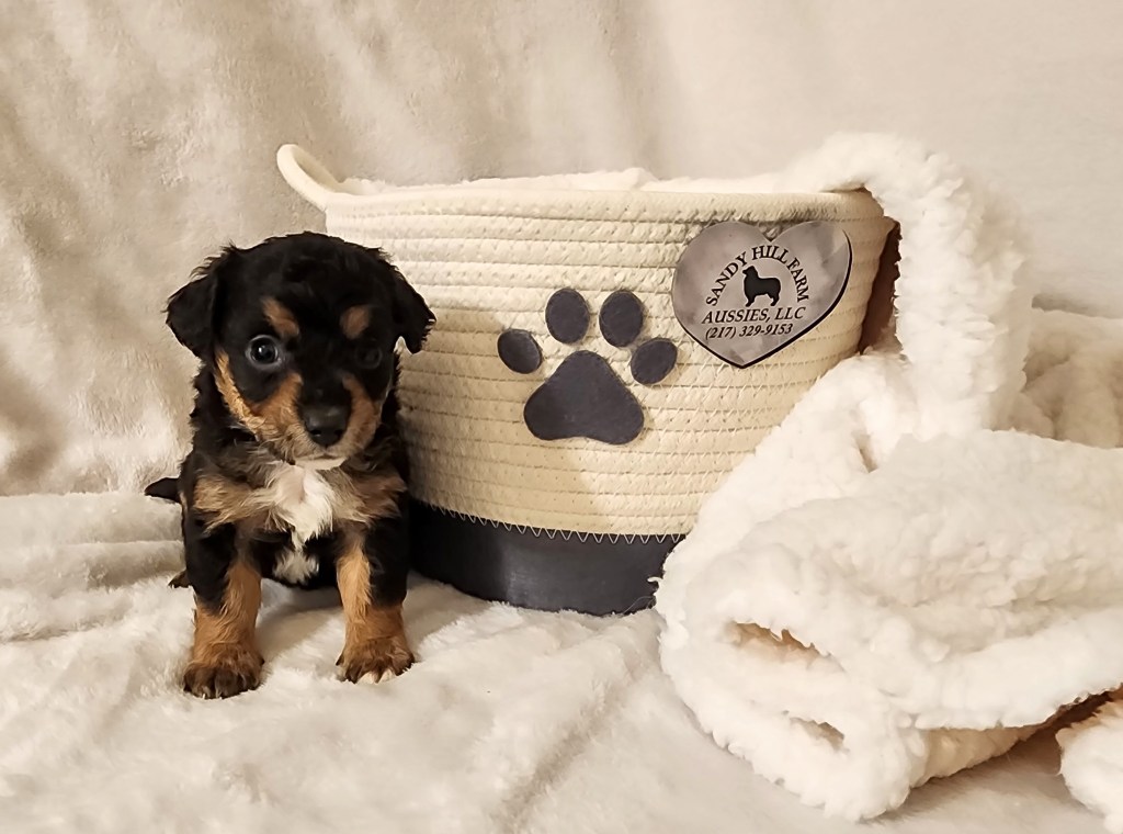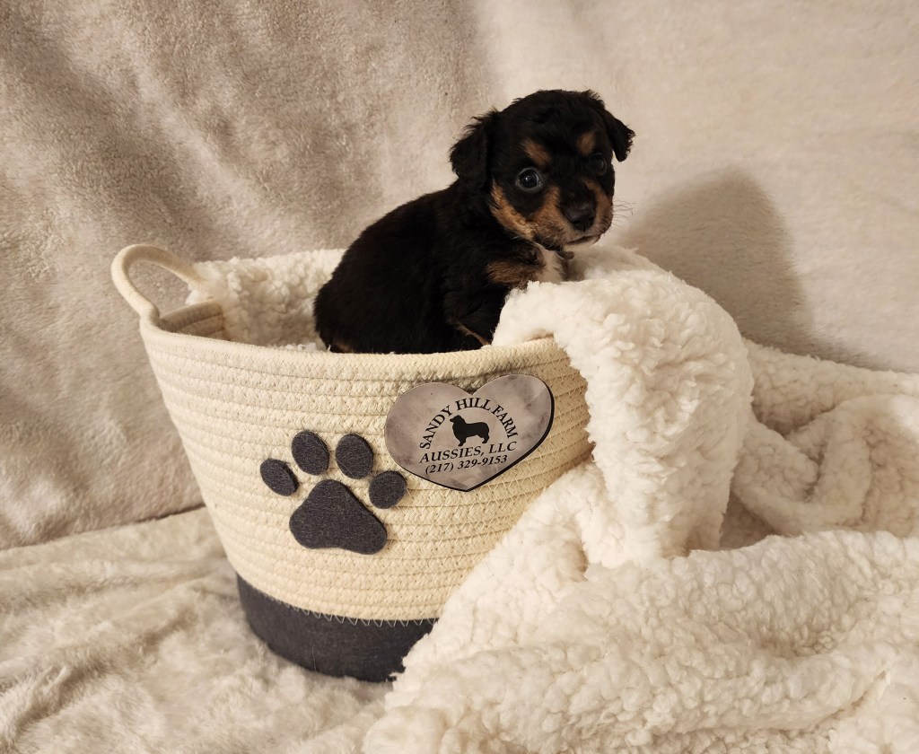 1 Brown-Eyed Black Tri Large Toy/ Small Mini Aussiedoodle Male with full tail (below) $800