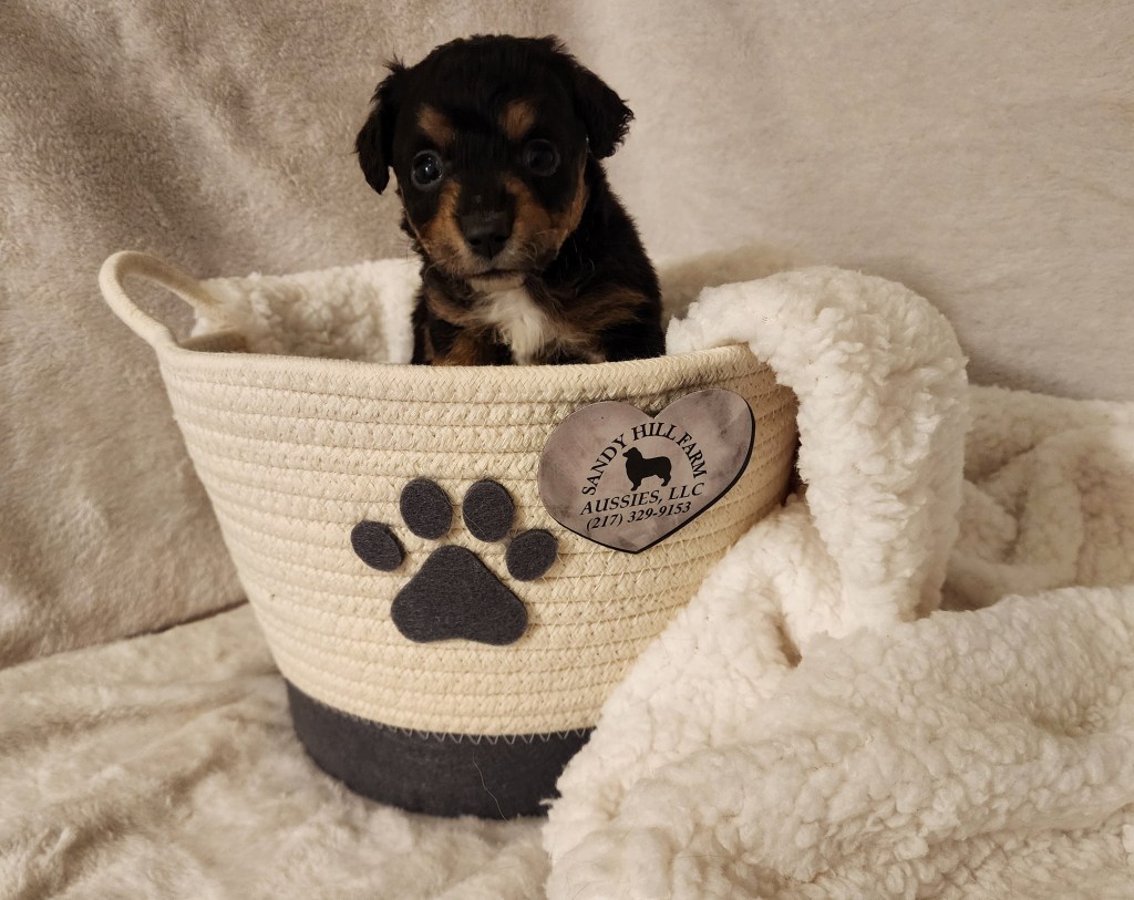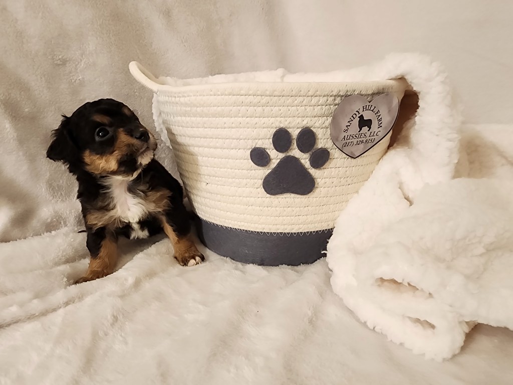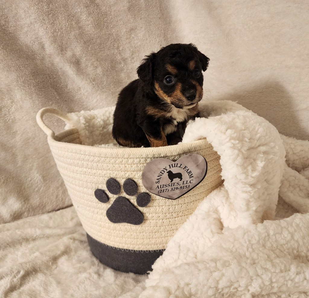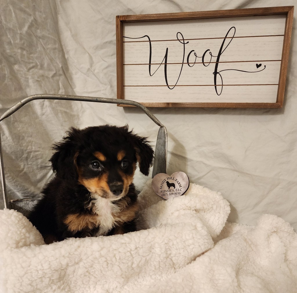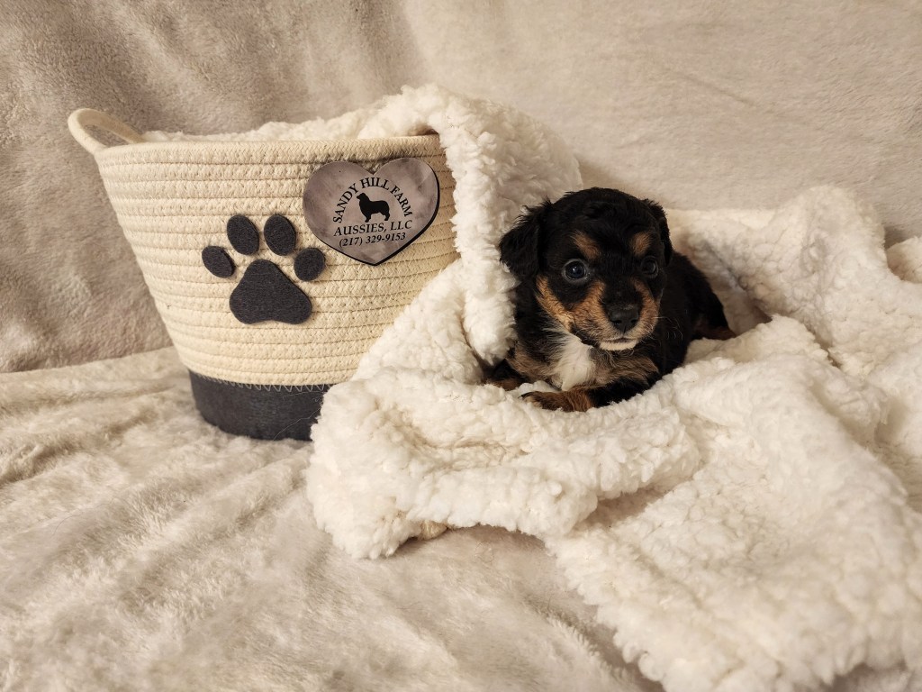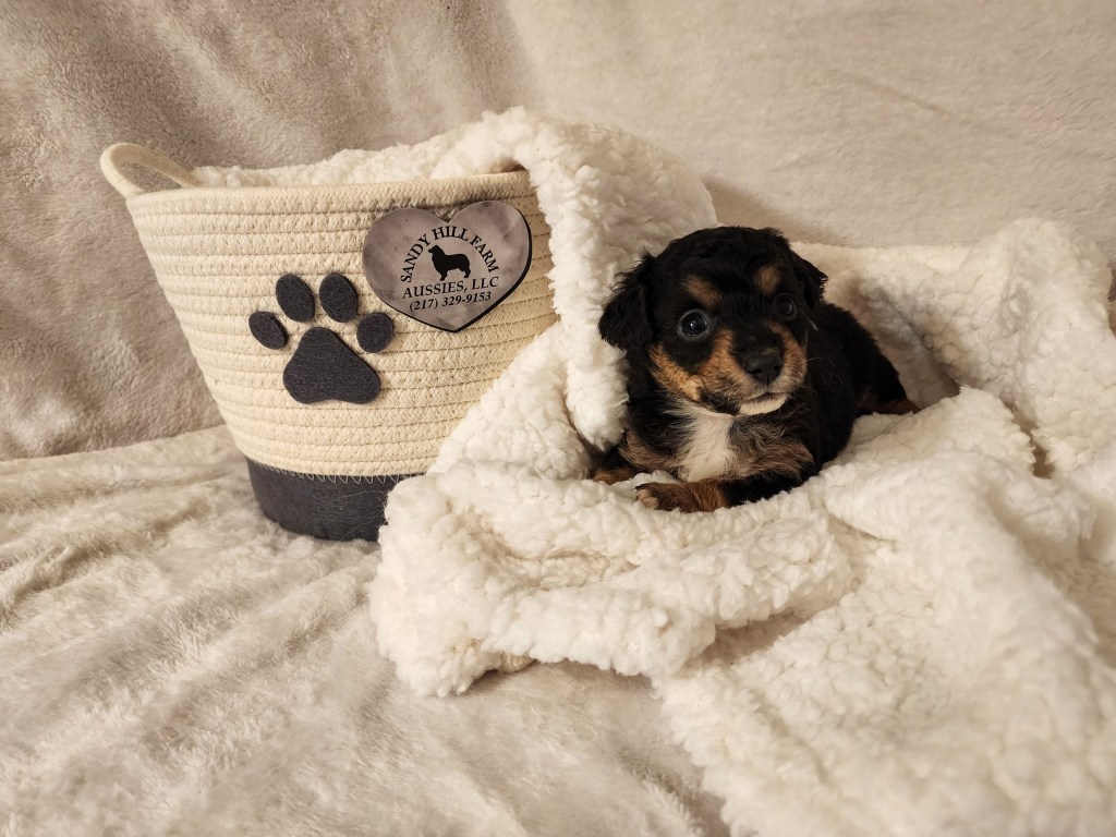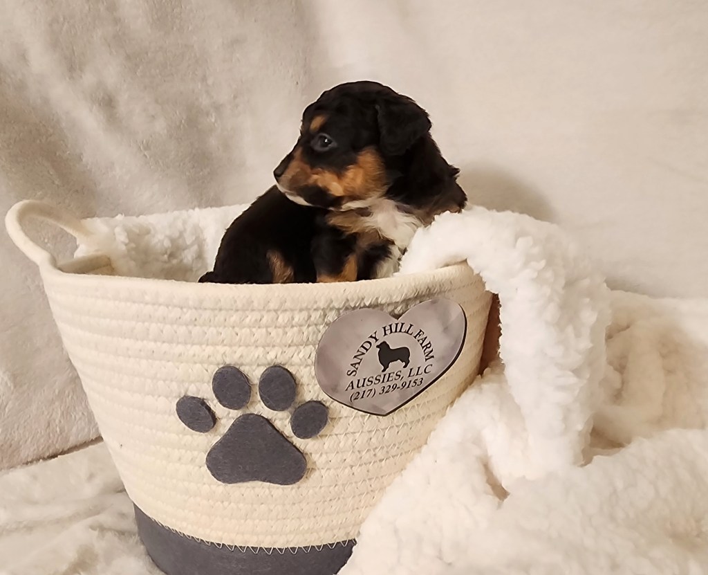 1 Brown-Eyed Black Tri Large Toy/ Small Mini Aussiedoodle Male with full tail (below) $800