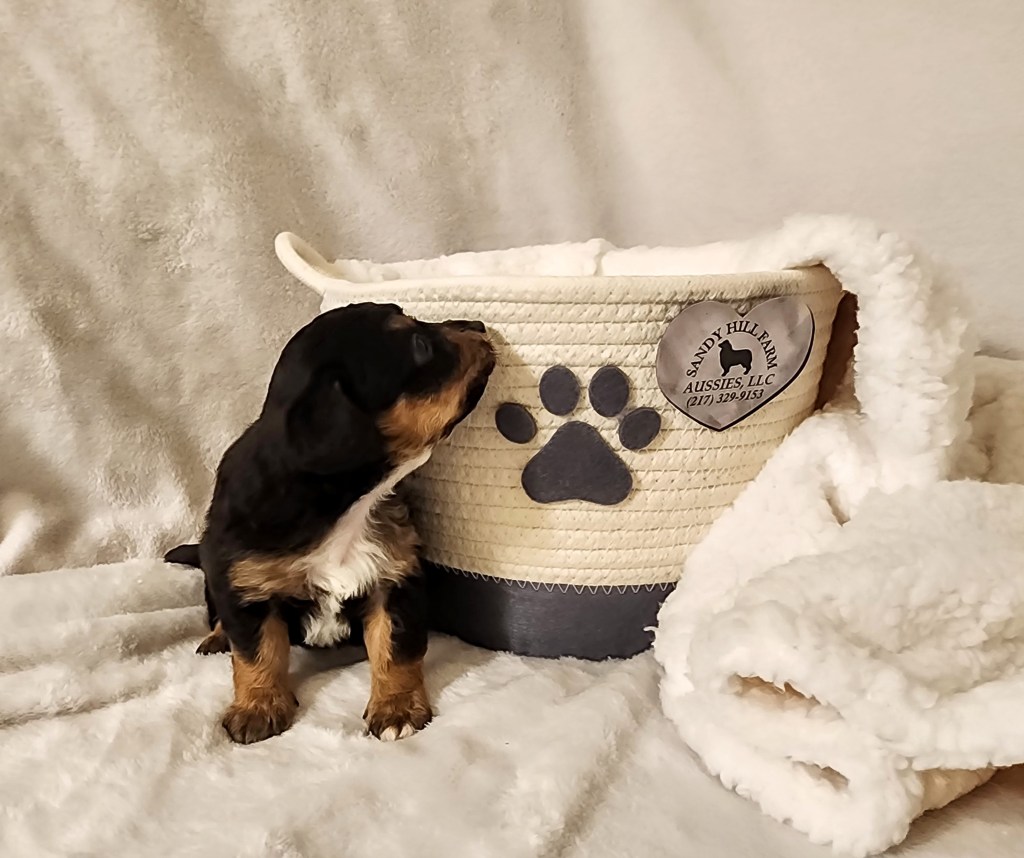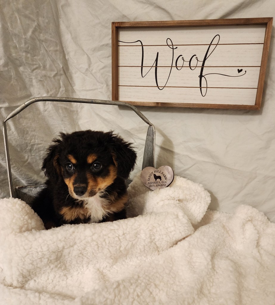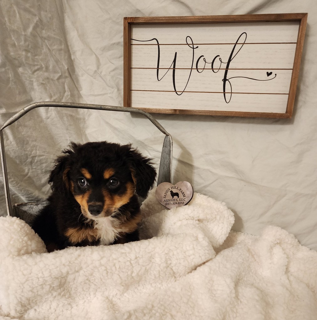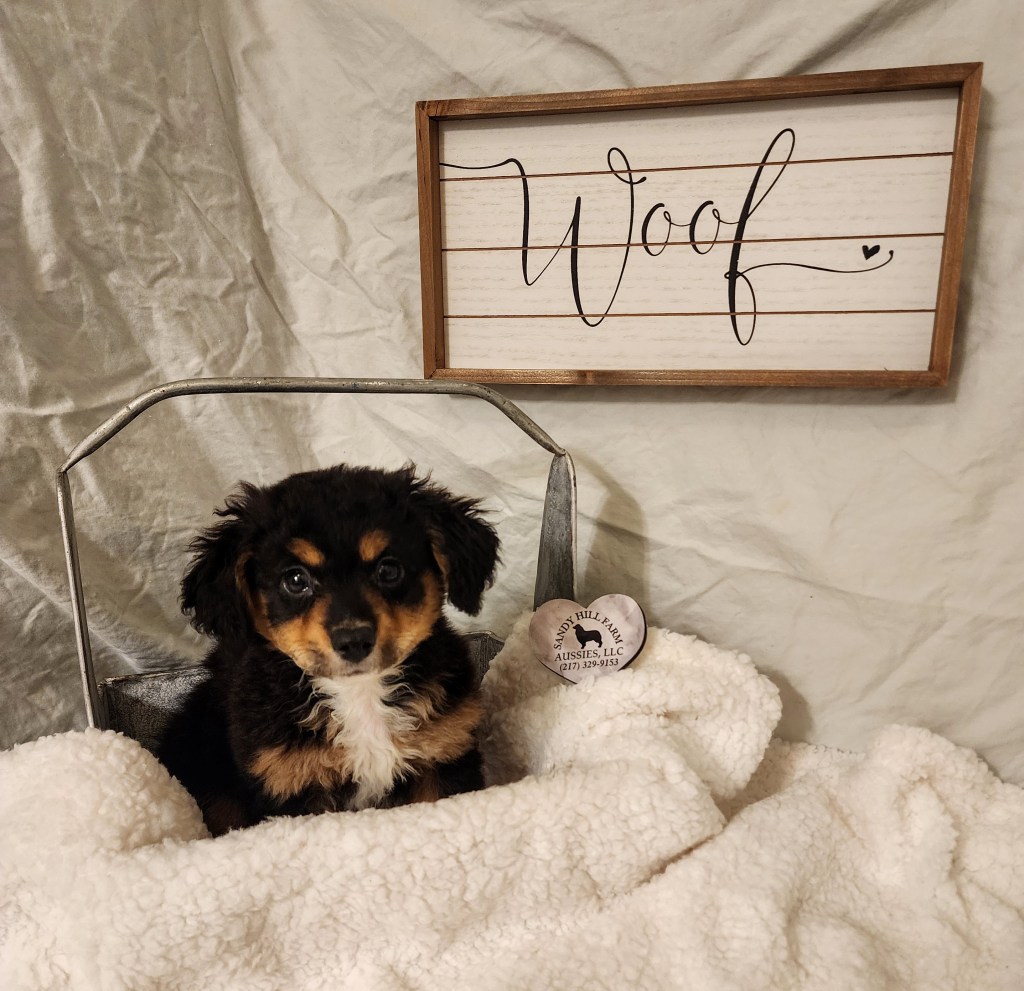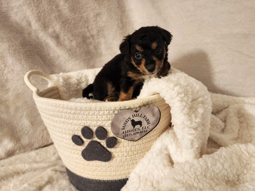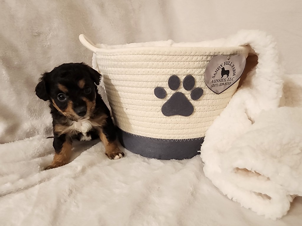 1 Brown-Eyed Black Tri Large Toy/ Small Mini Aussiedoodle Male with full tail (below) $800