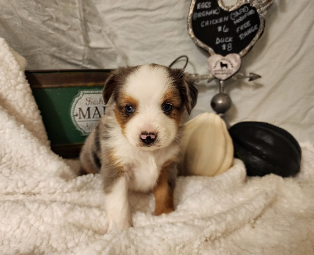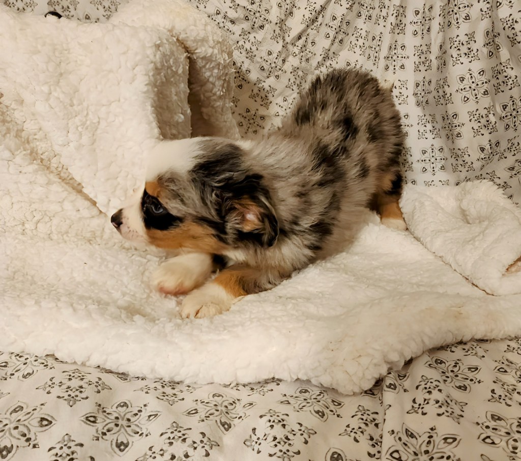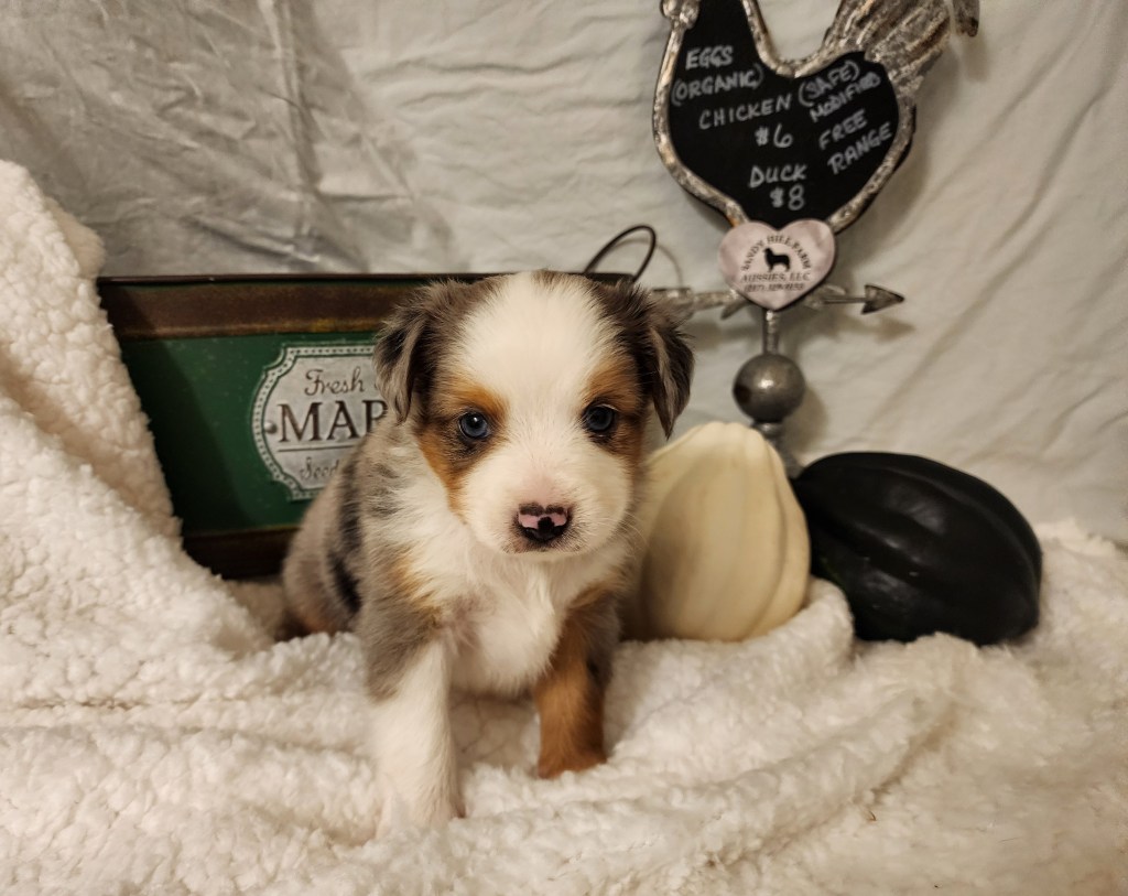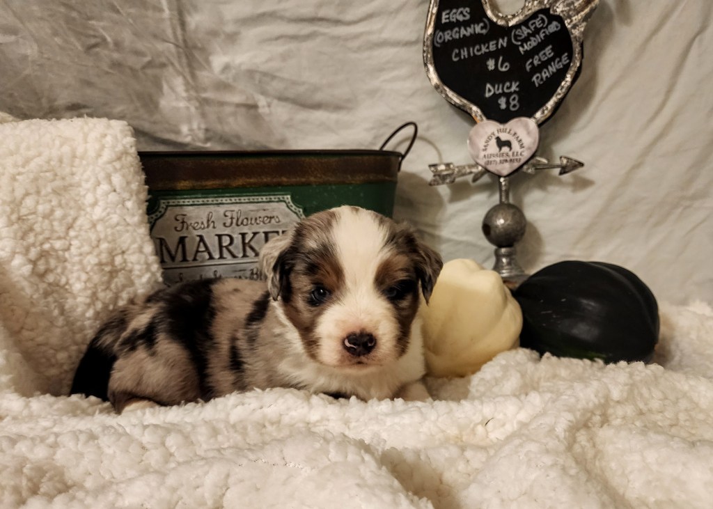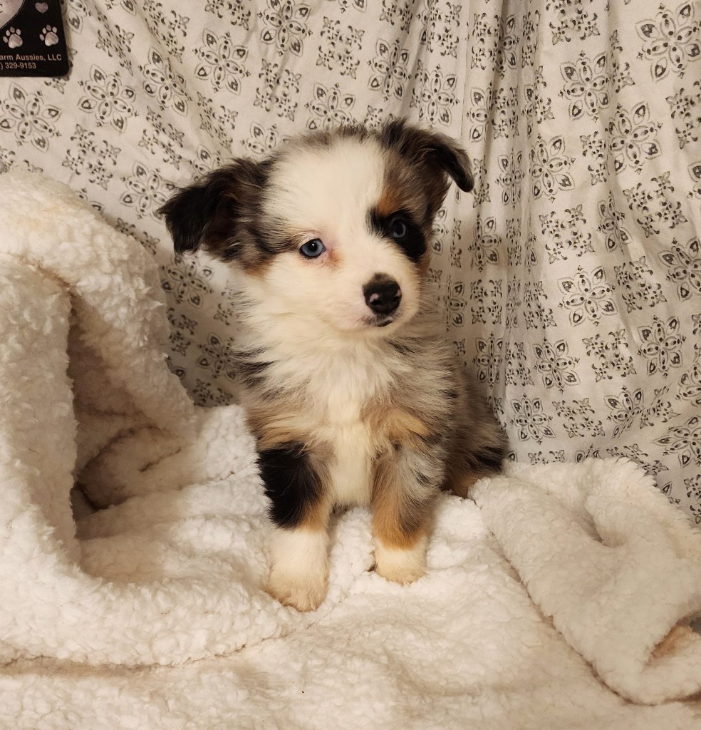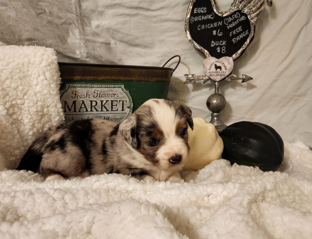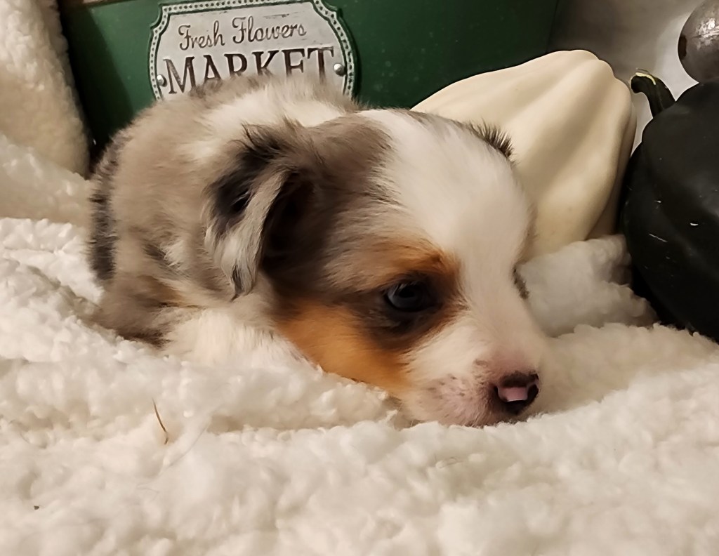 1 Blue-Eyed Blue Merle Large Toy/ Small Mini Australian Shepherd Male with full tail (below) $1500