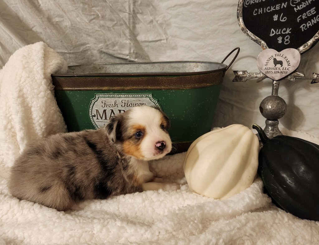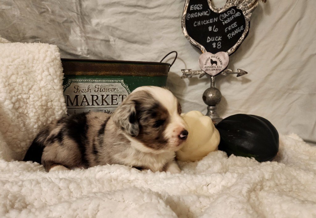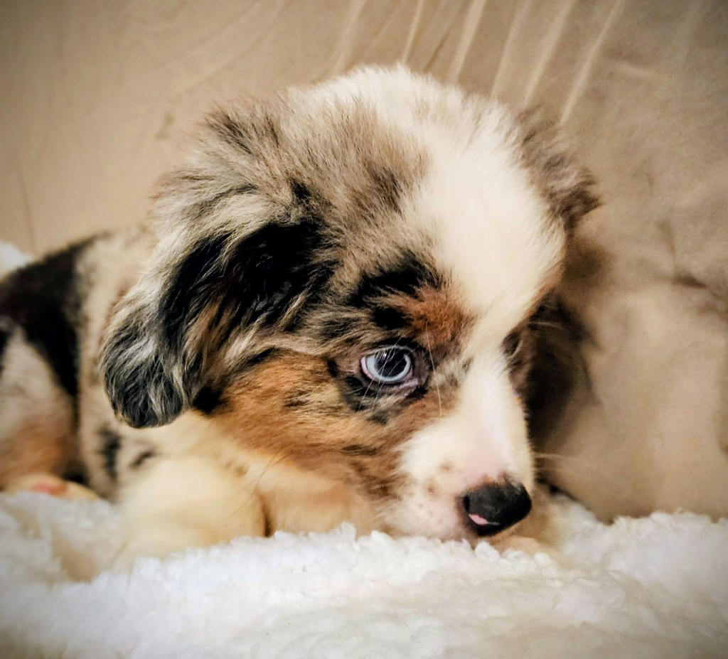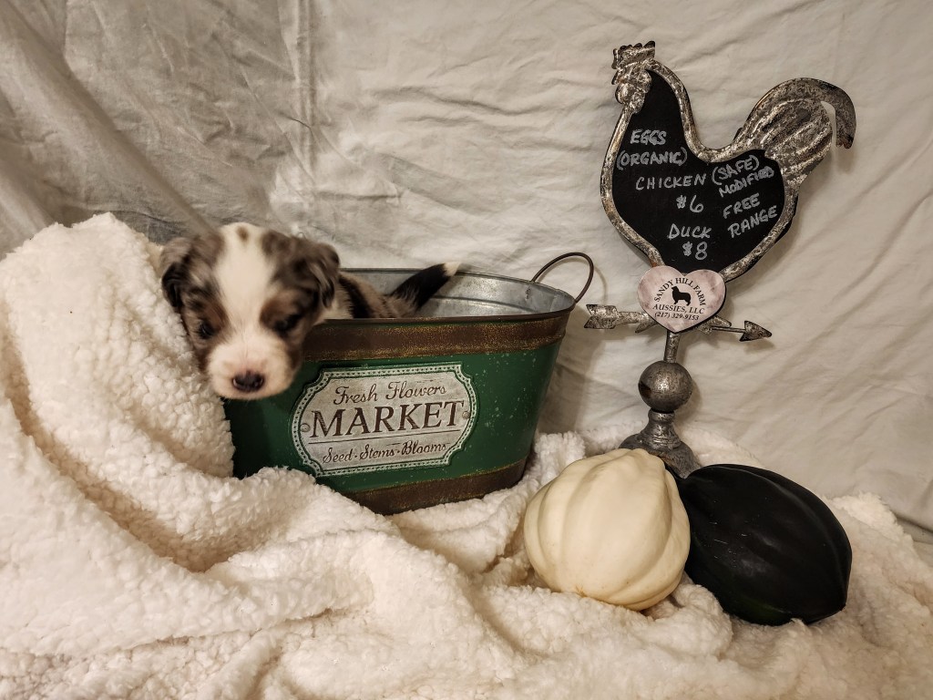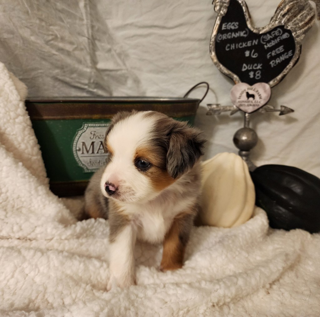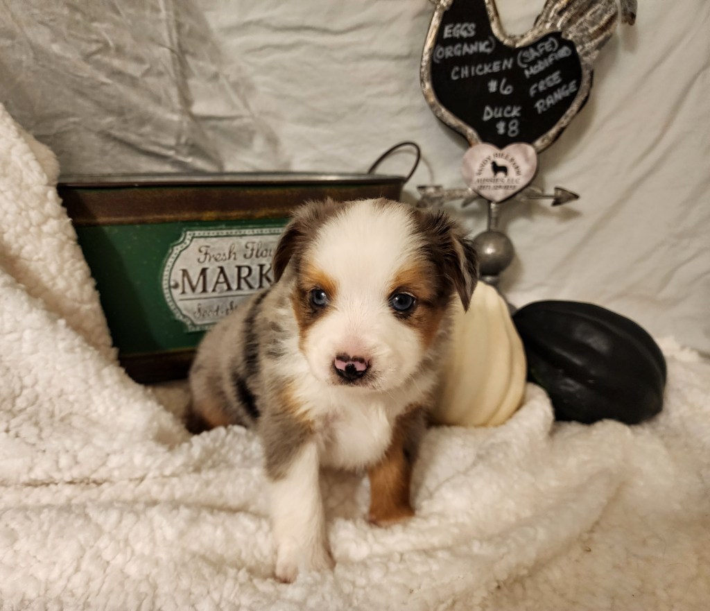 1 Blue-Eyed Blue Merle Large Toy/ Small Mini Australian Shepherd Male with full tail (below) $1500