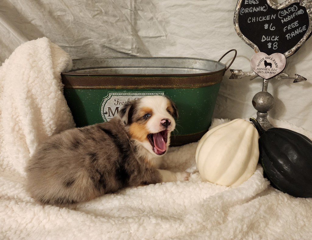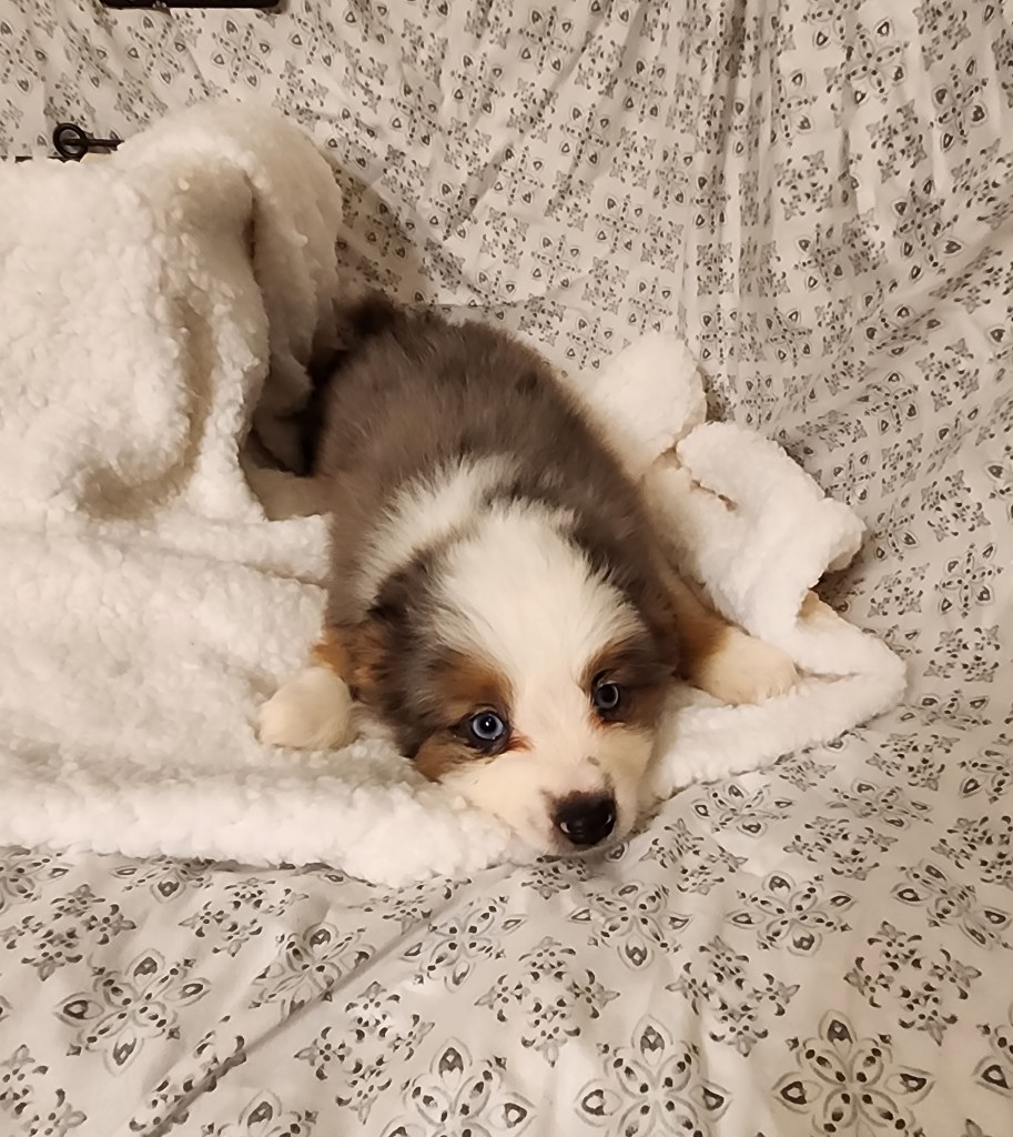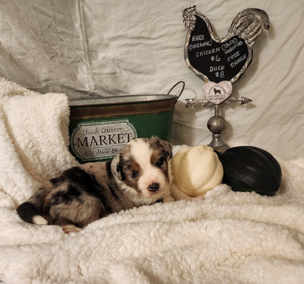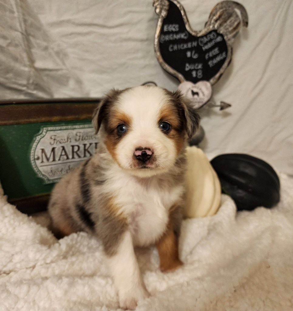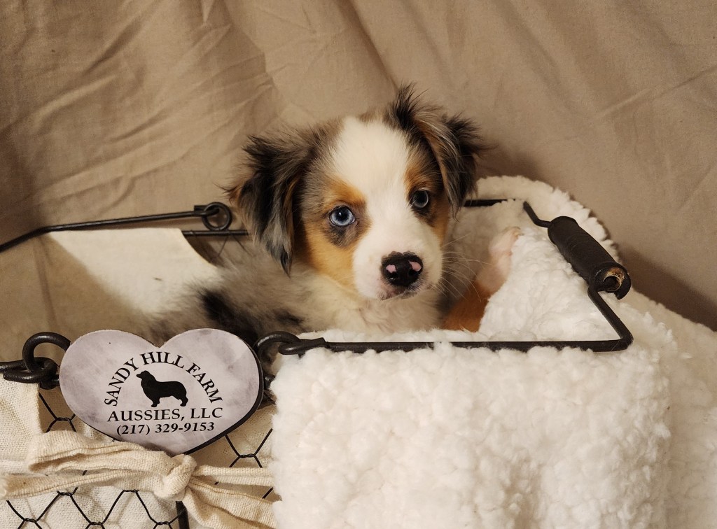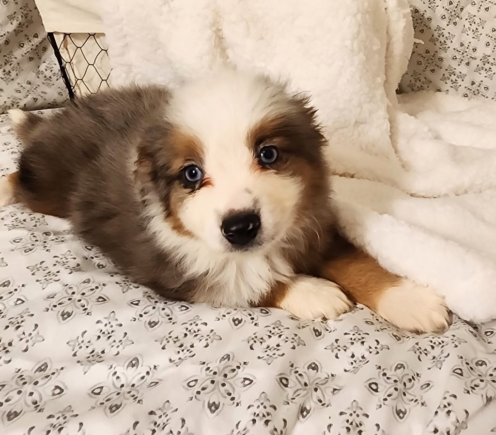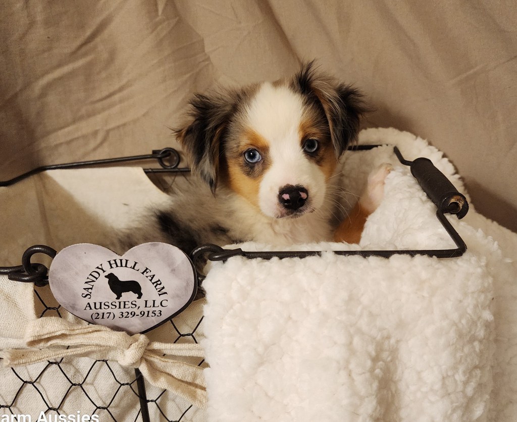 1 Blue-Eyed Blue Merle Large Toy/ Small Mini Australian Shepherd Male with full tail (below) $1500