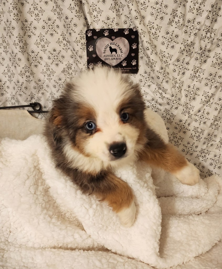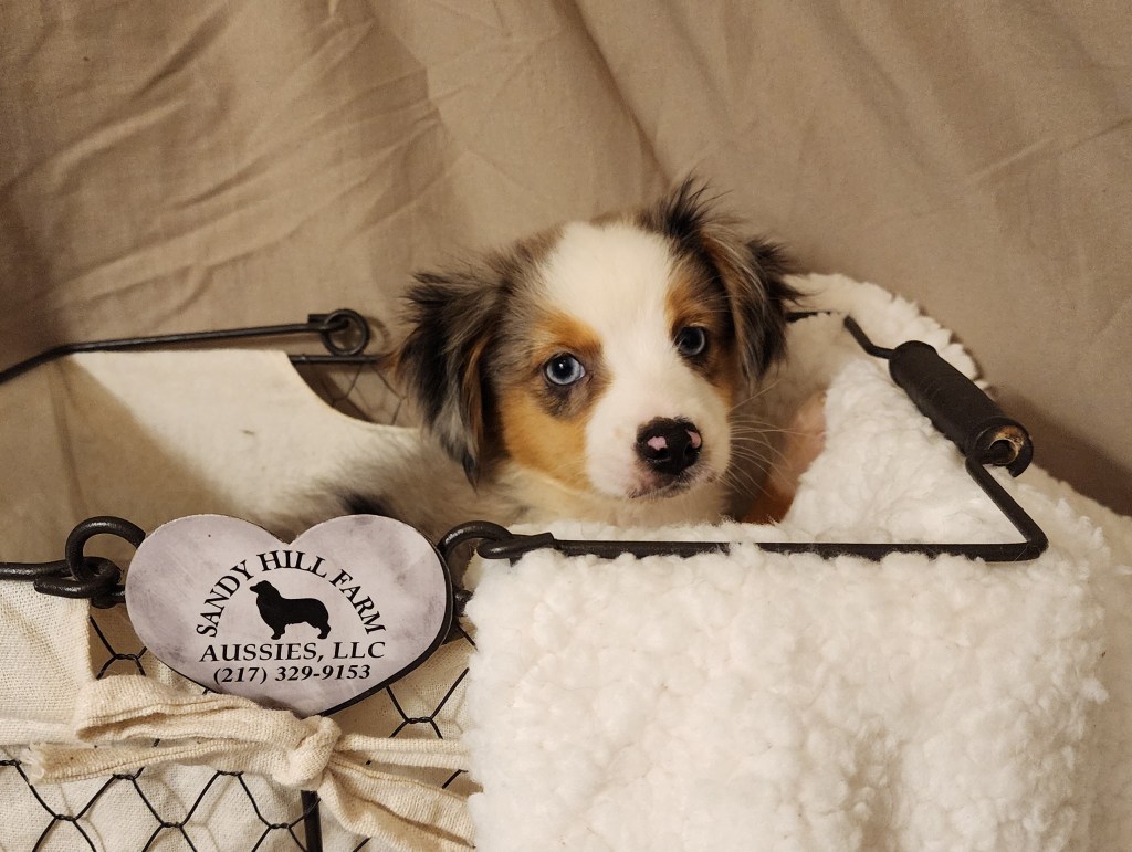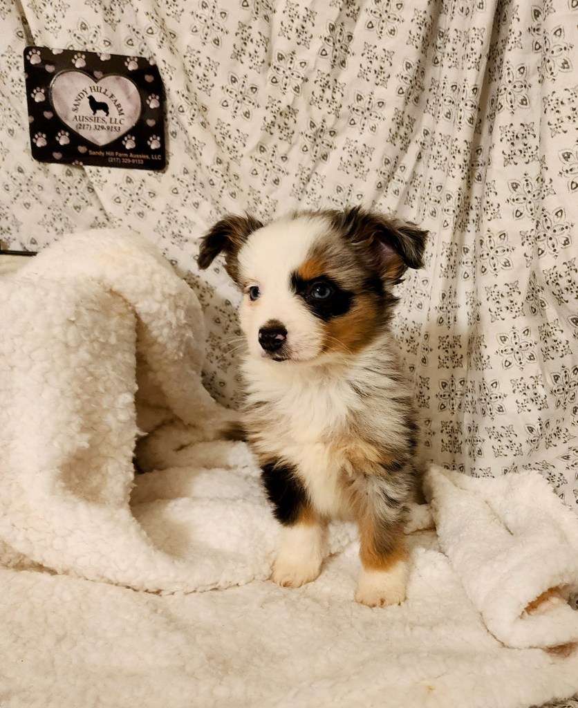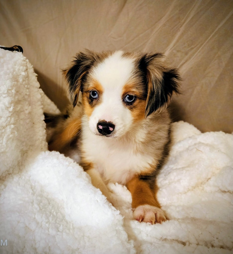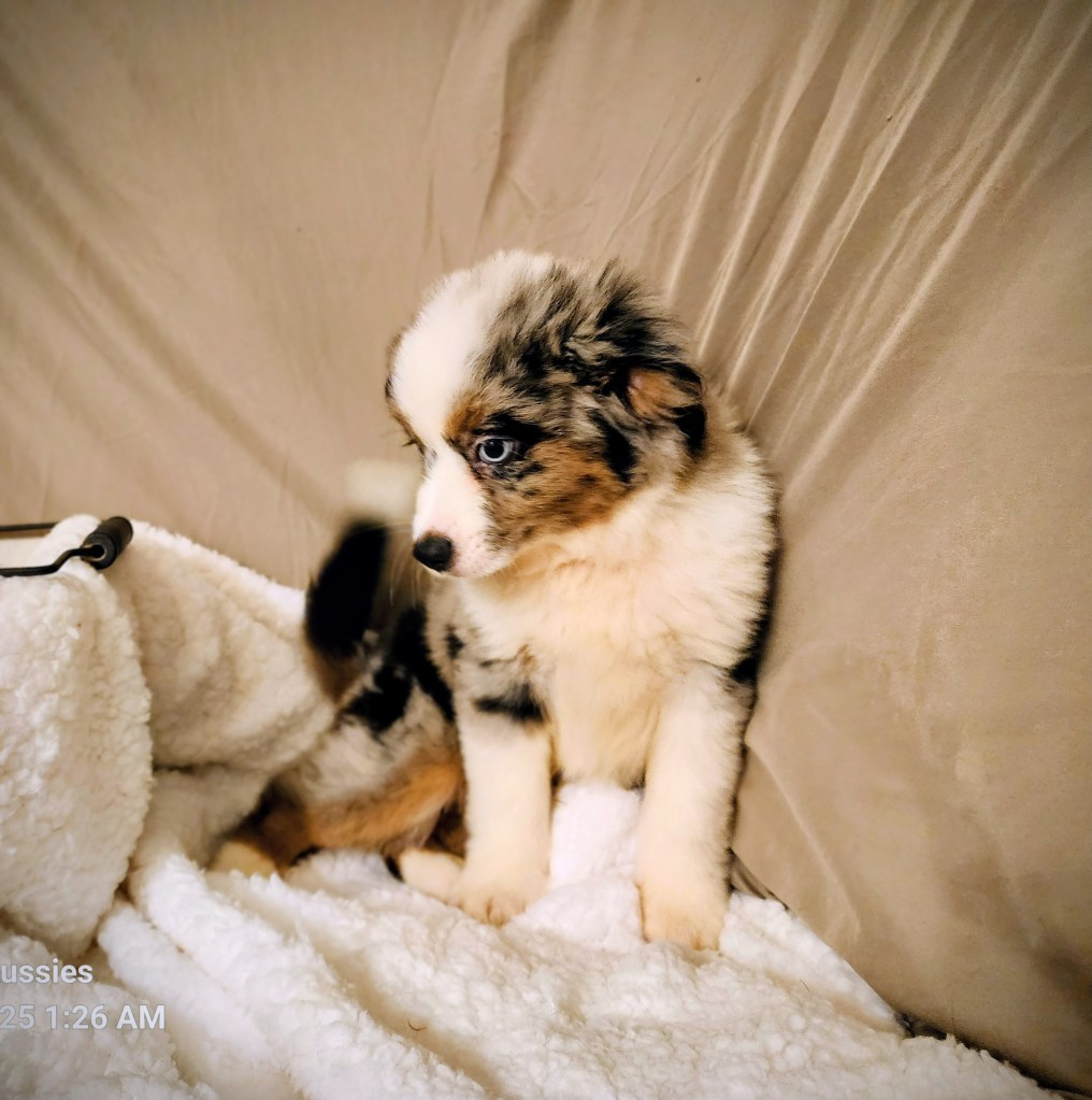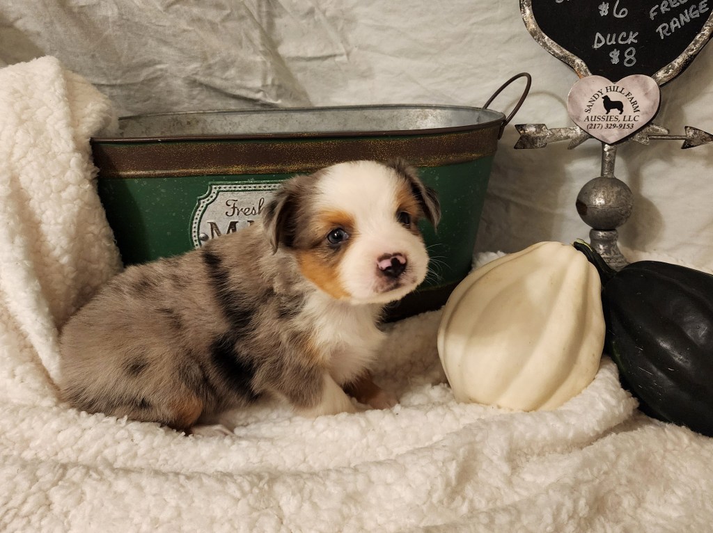 1 Blue-Eyed Blue Merle Large Toy/ Small Mini Australian Shepherd Male with full tail (below) $1500
