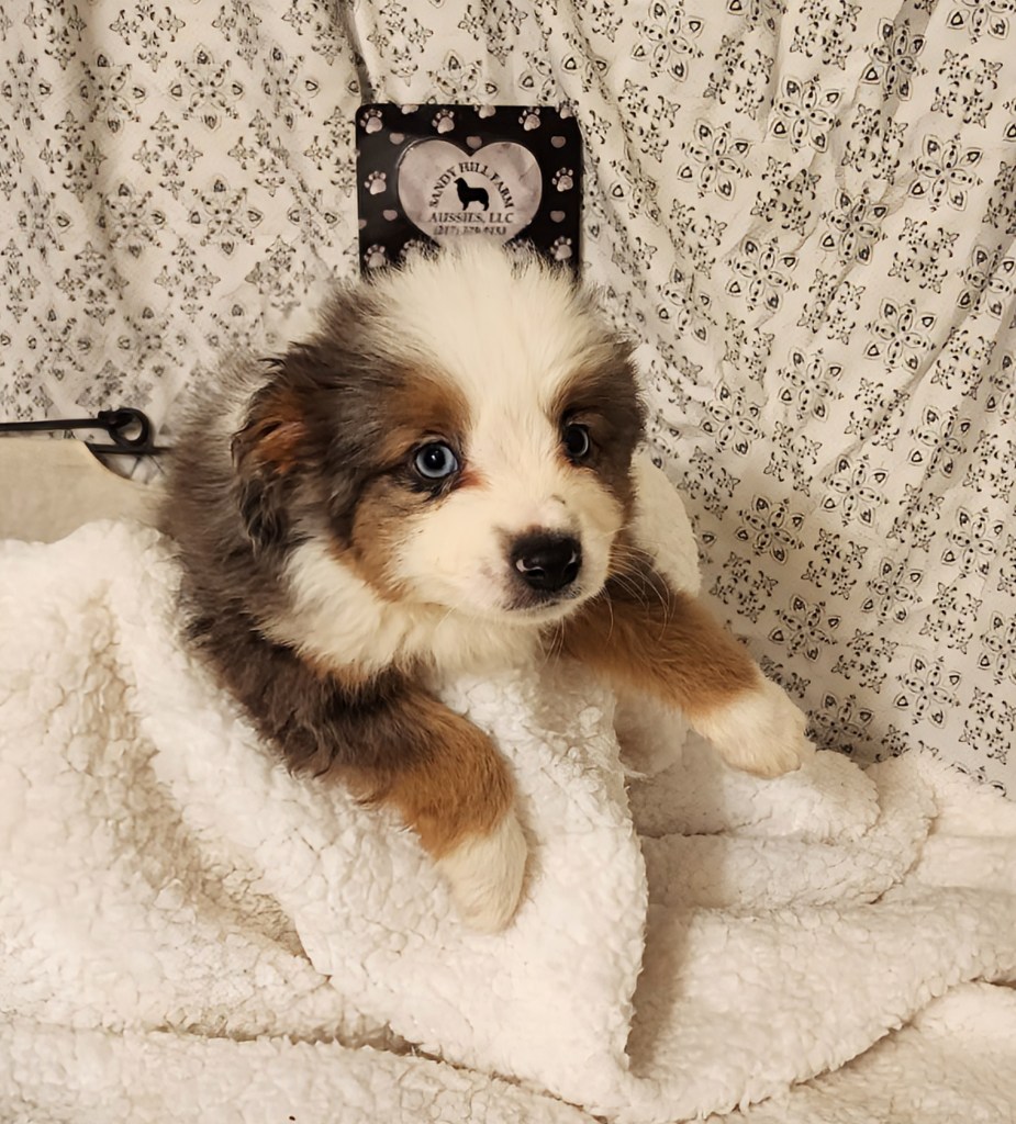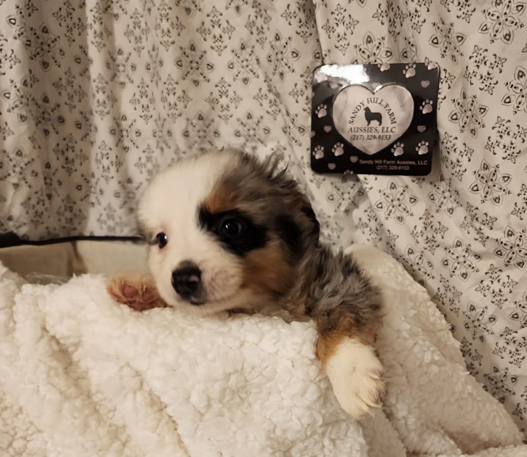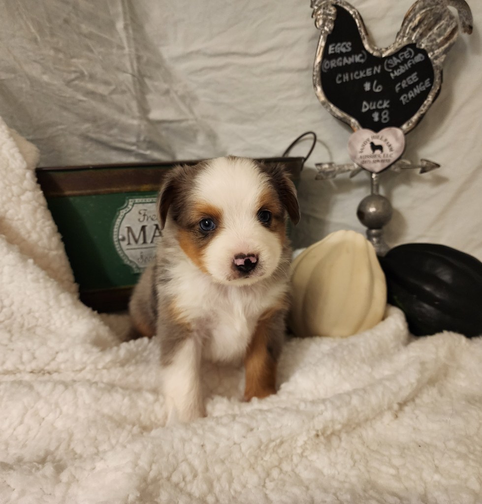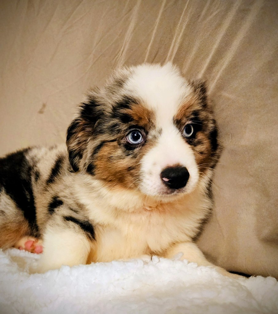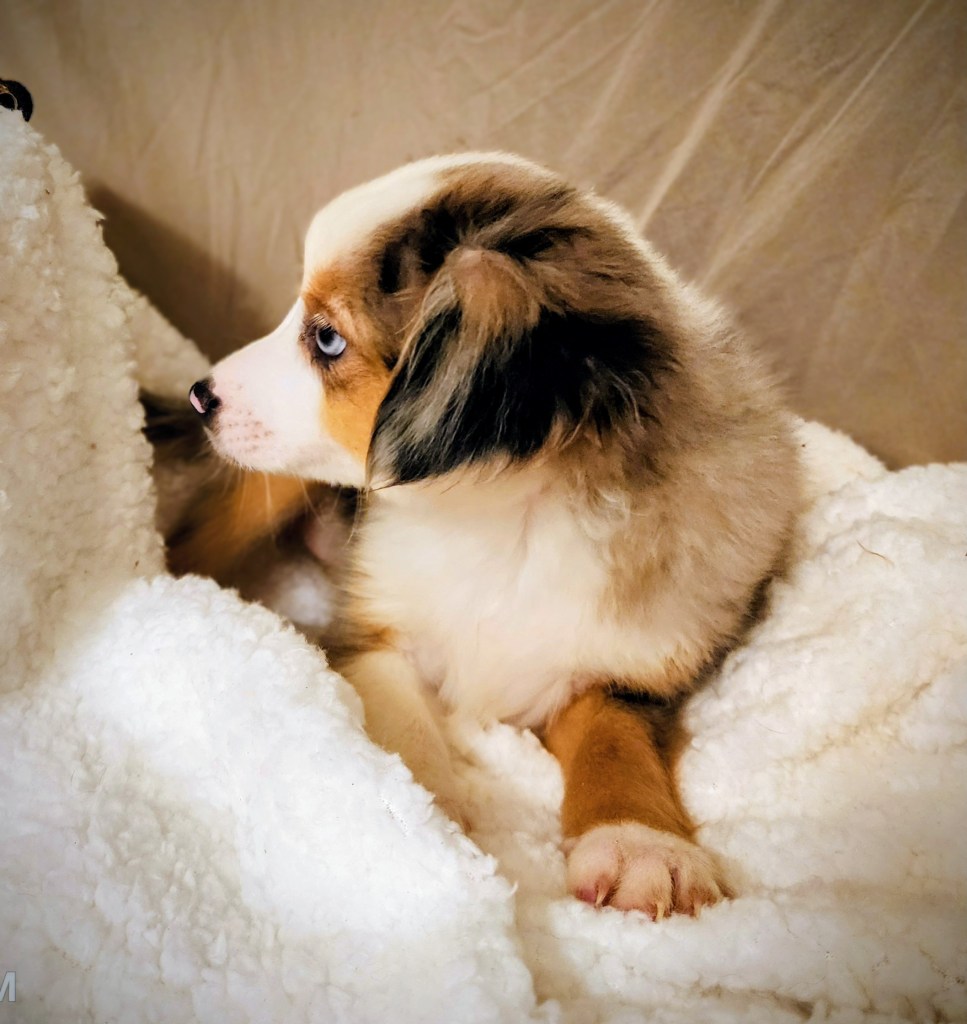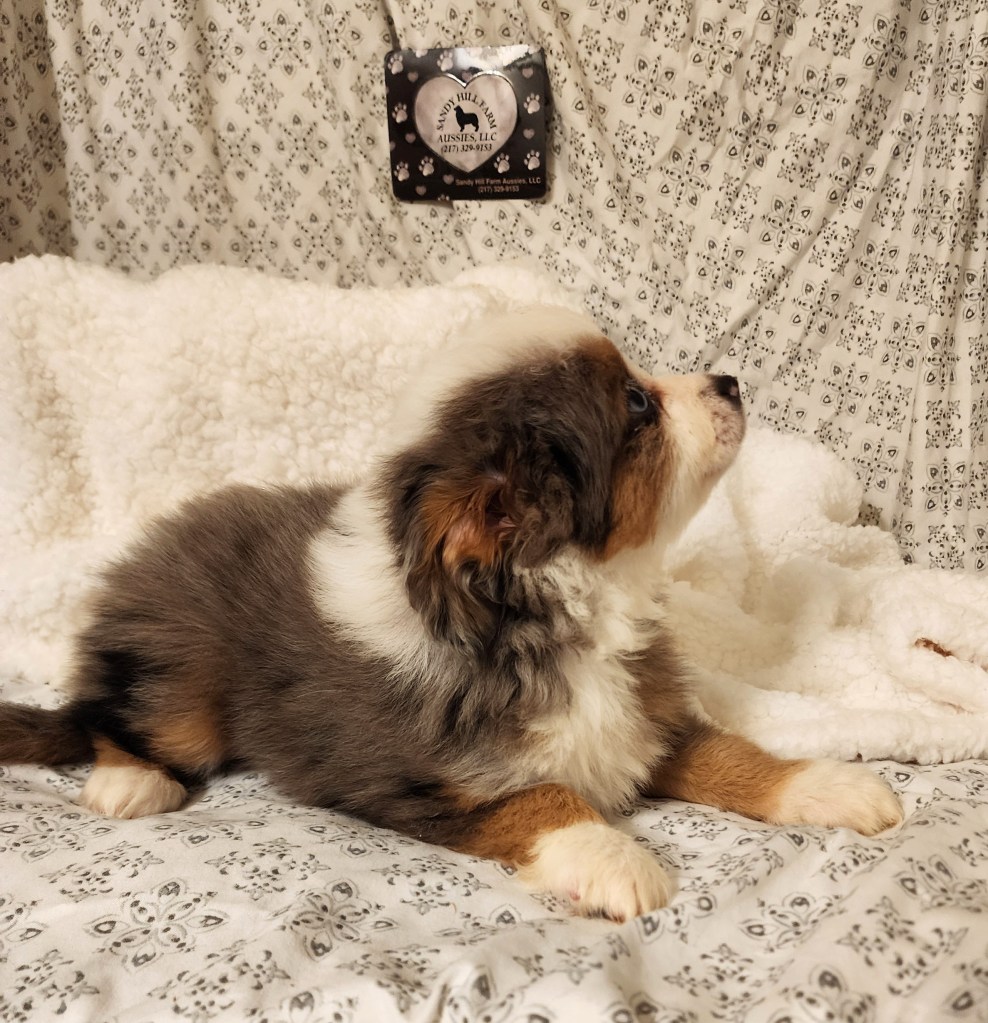 1 Blue-Eyed Blue Merle Large Toy/ Small Mini Australian Shepherd Male with full tail (below) $1500
