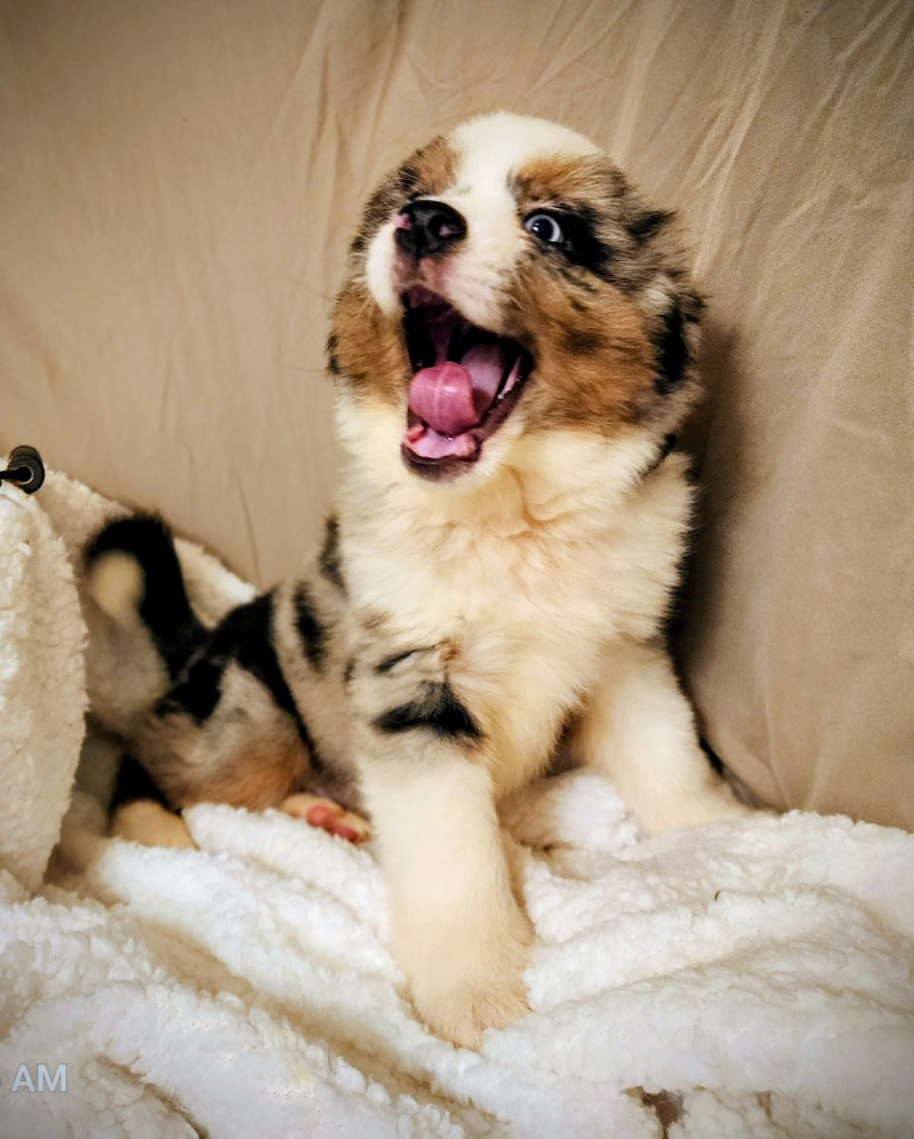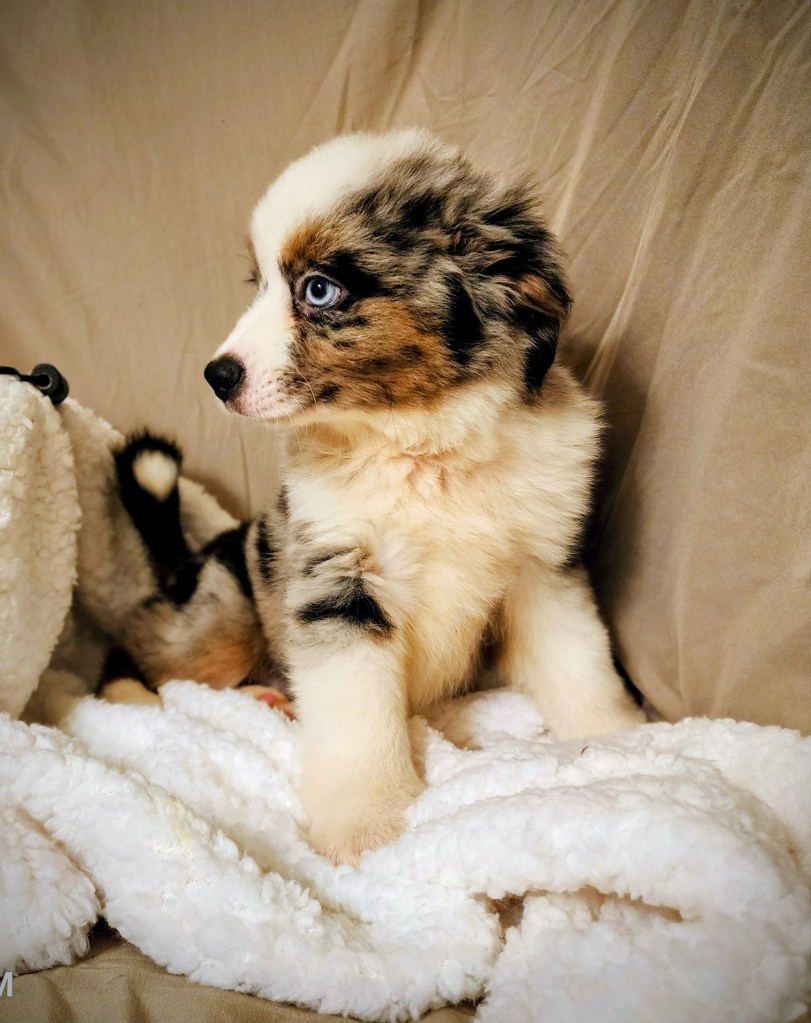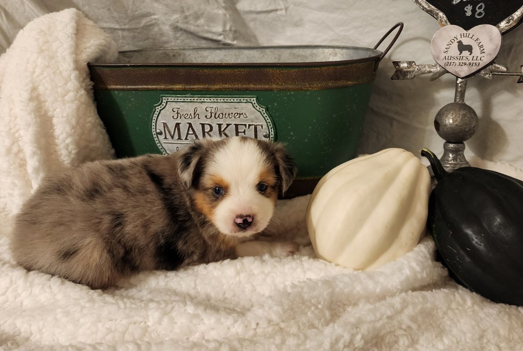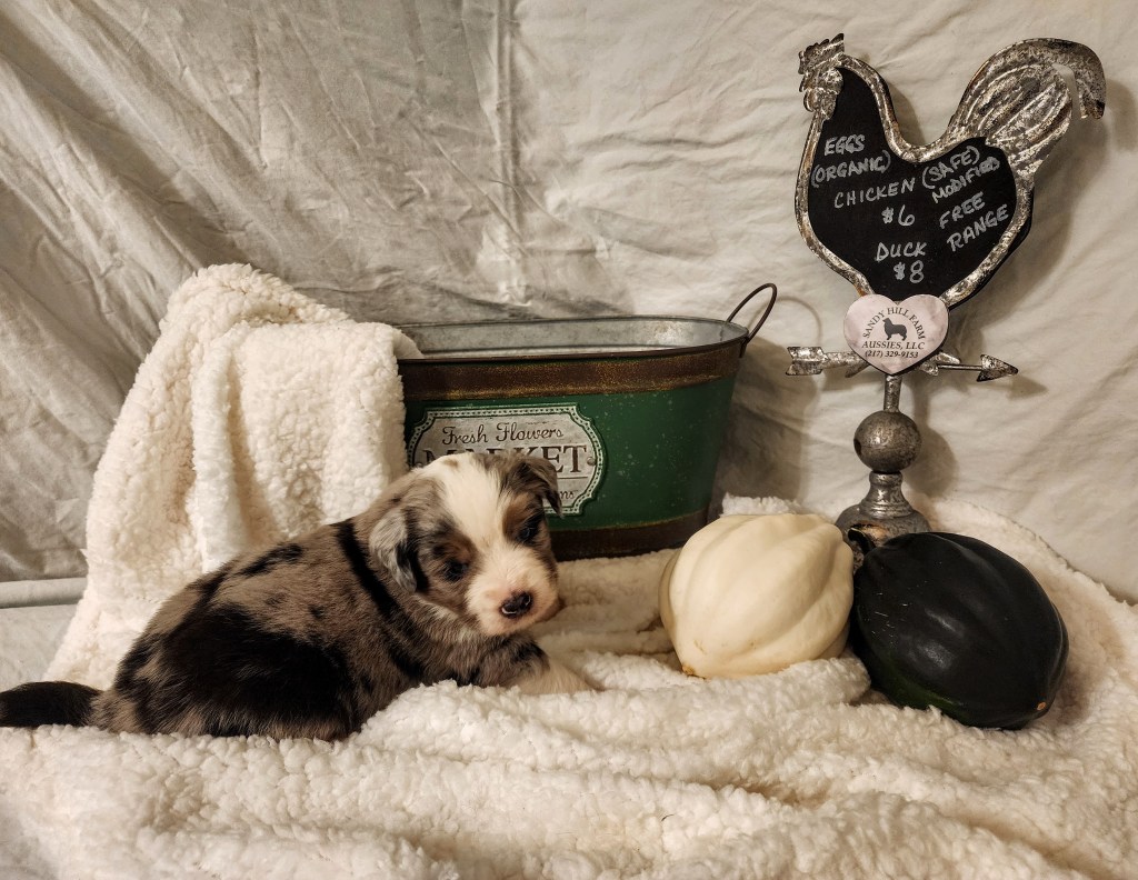 1 Blue-Eyed Blue Merle Tiny Toy Australian Shepherd Male with full tail (below) $1500