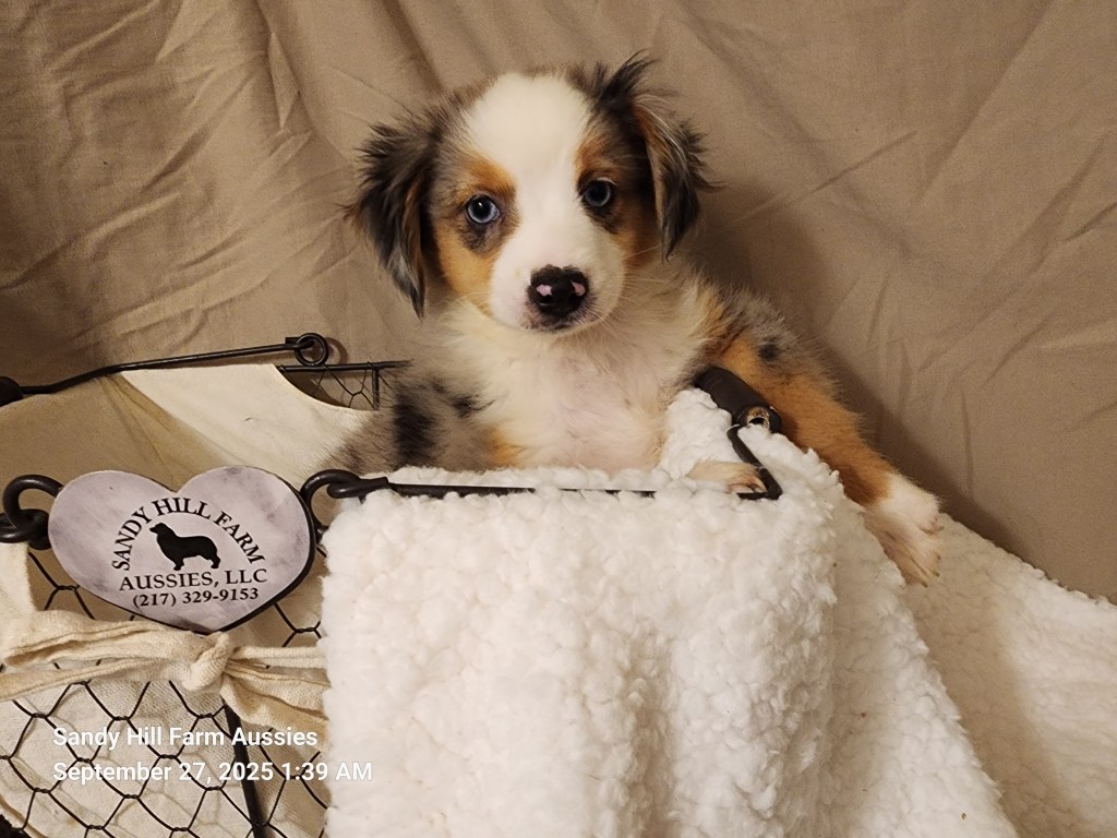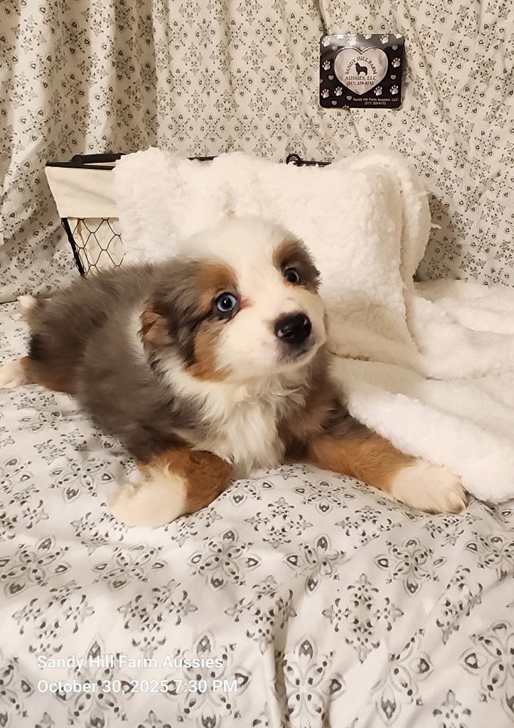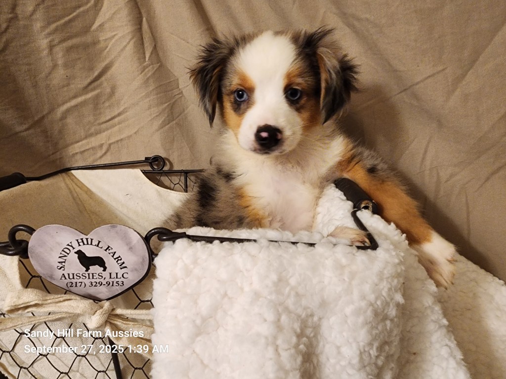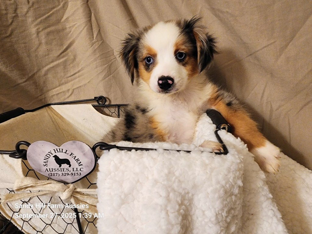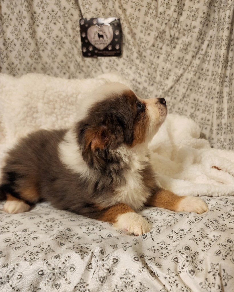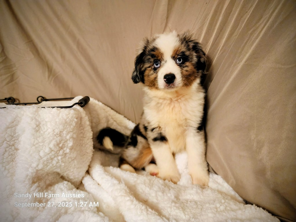 Available Mid September – Cinder X Bentley Large Toy/Small Mini Australian Shepherds with tails Born 7/18/2025