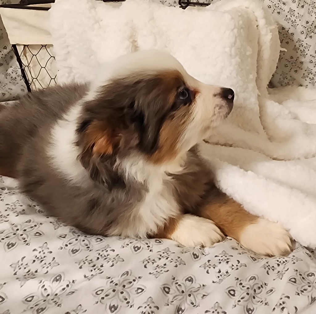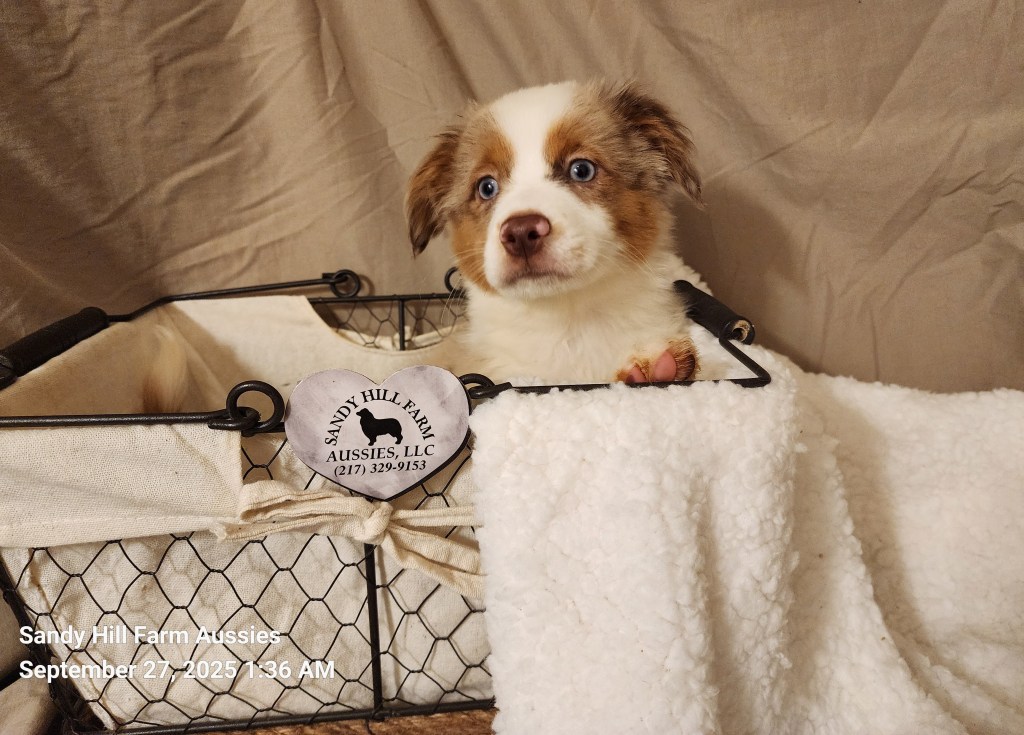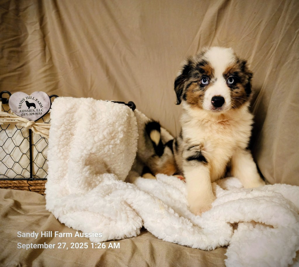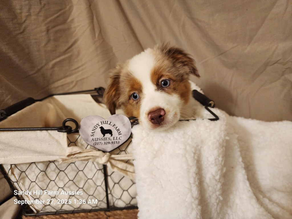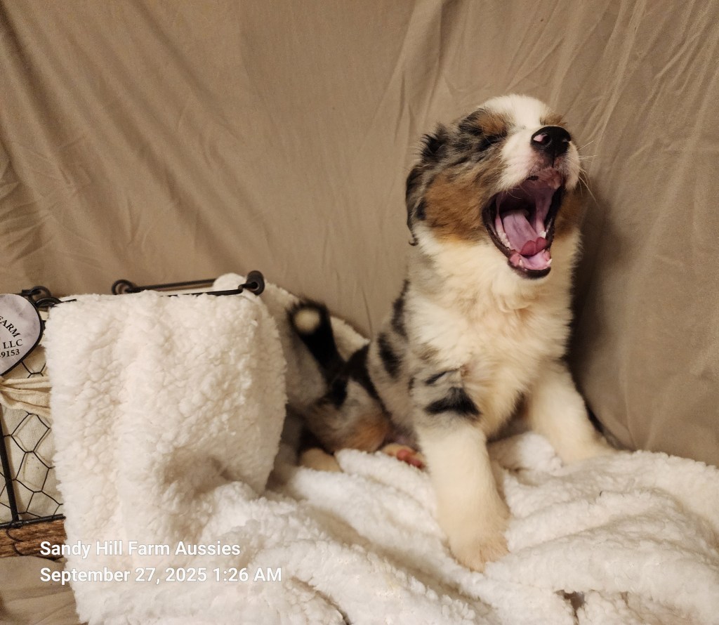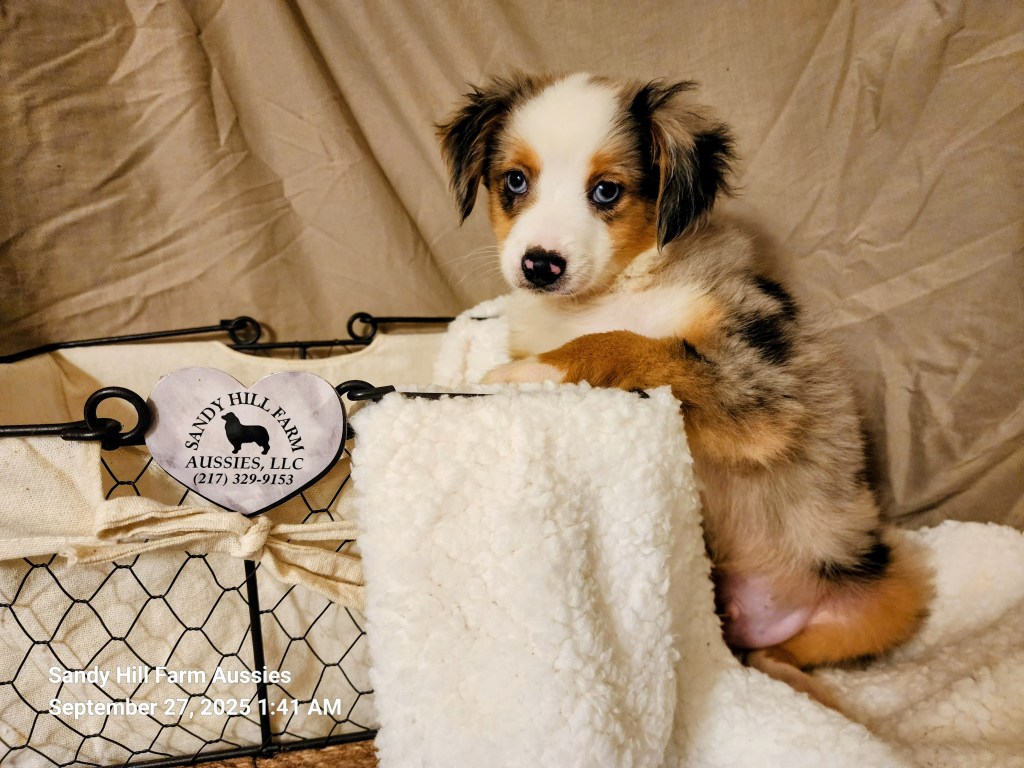 Available Mid September – Cinder X Bentley Large Toy/Small Mini Australian Shepherds with tails Born 7/18/2025