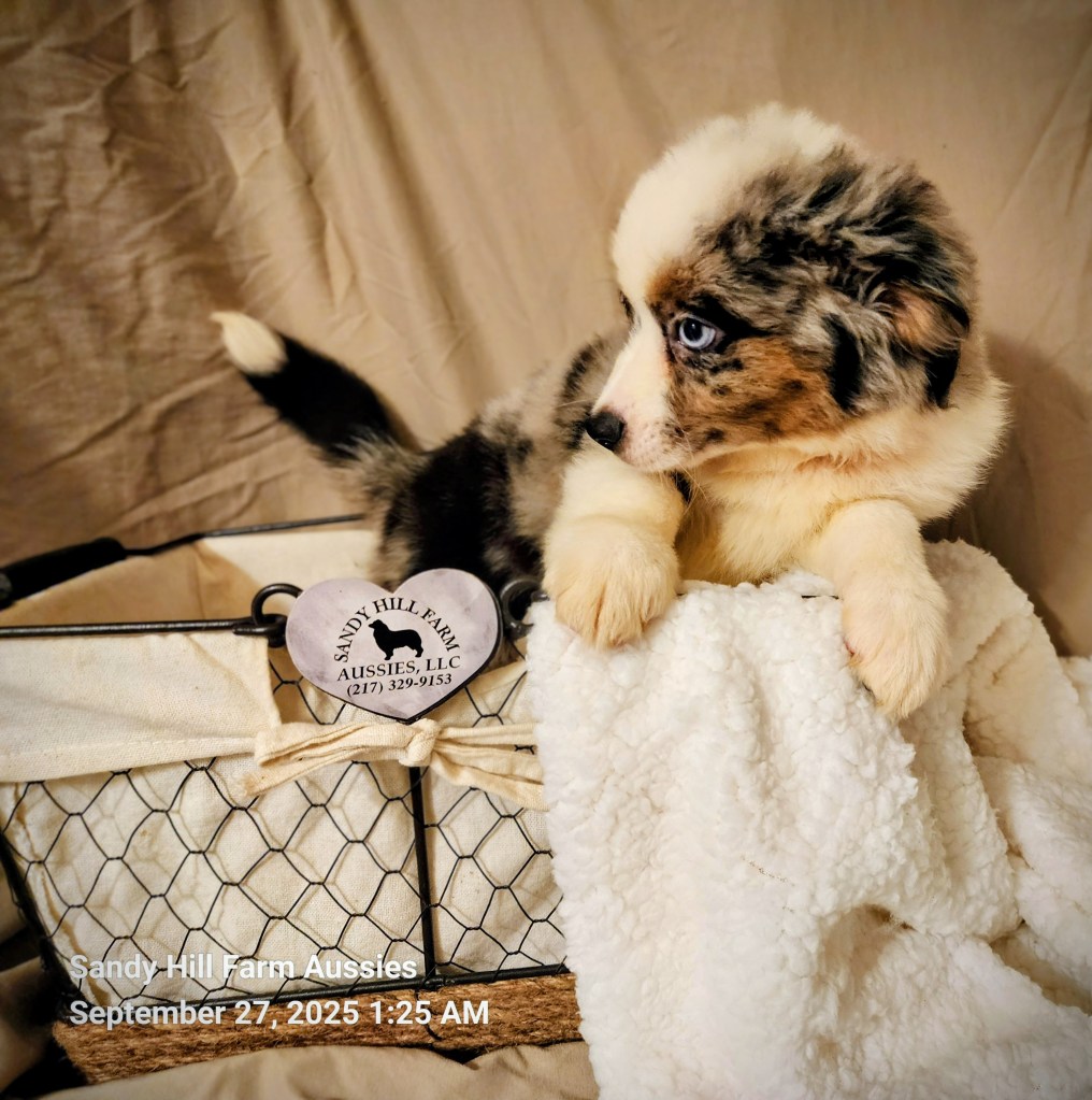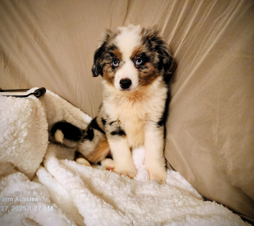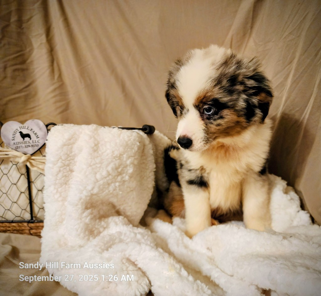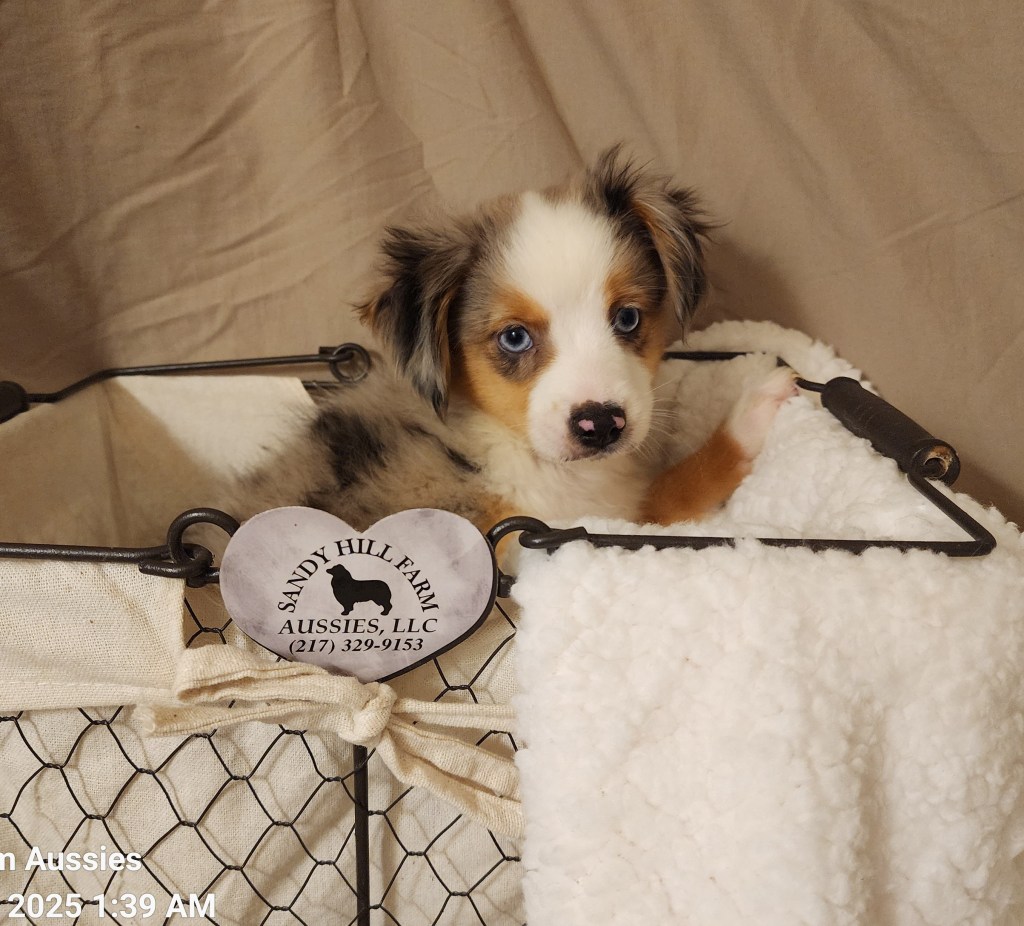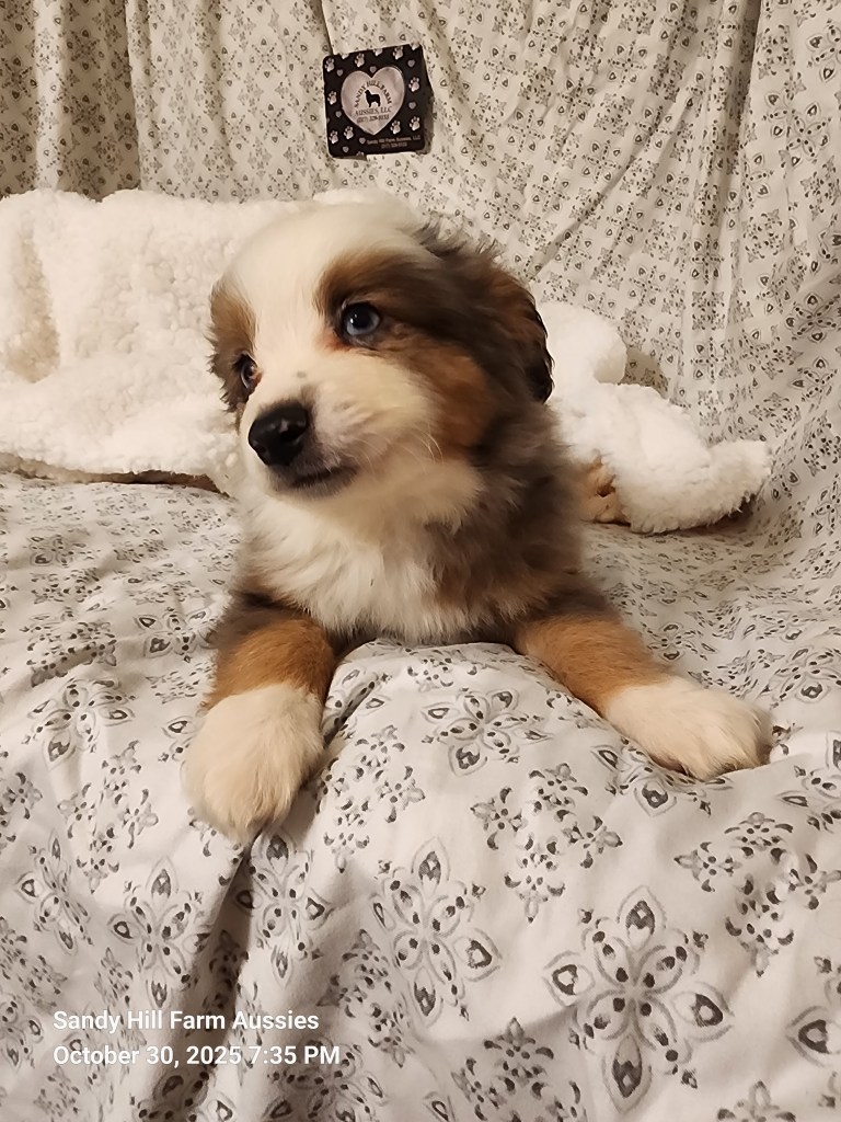 Available Mid September – Cinder X Bentley Large Toy/Small Mini Australian Shepherds with tails Born 7/18/2025