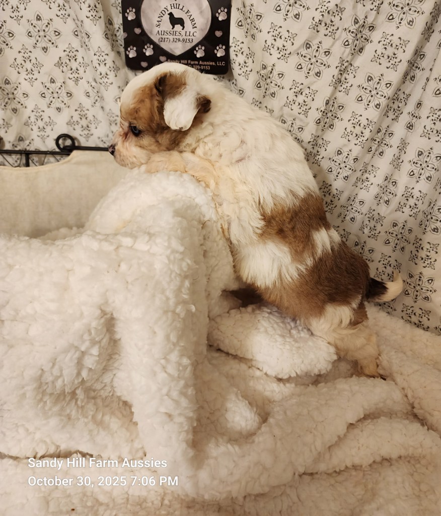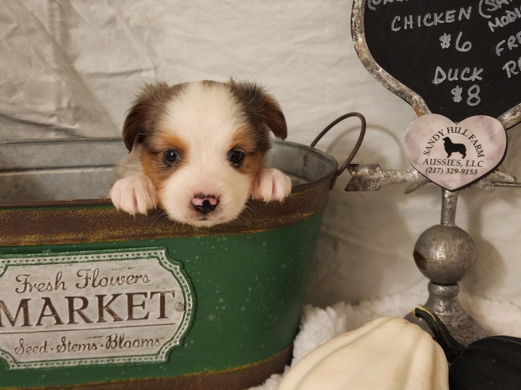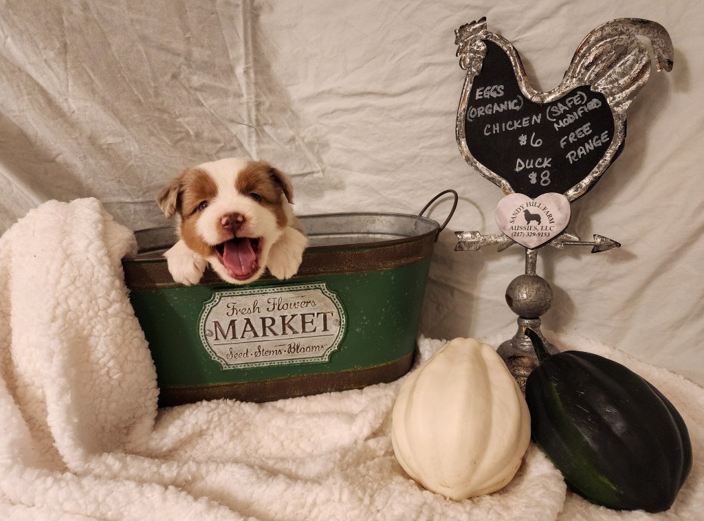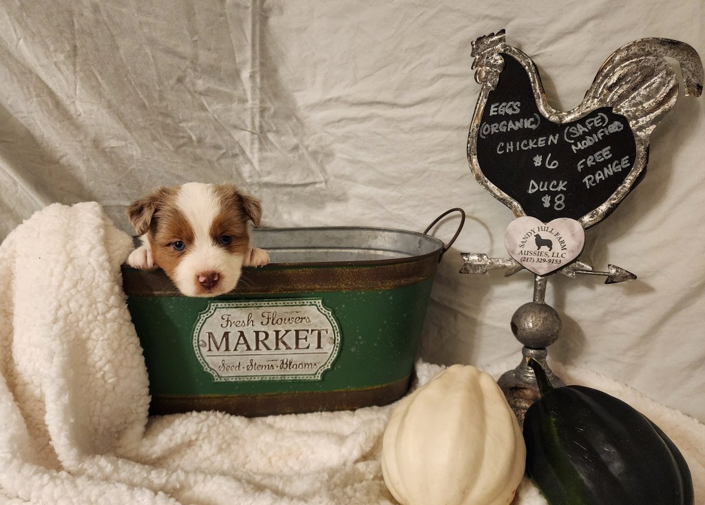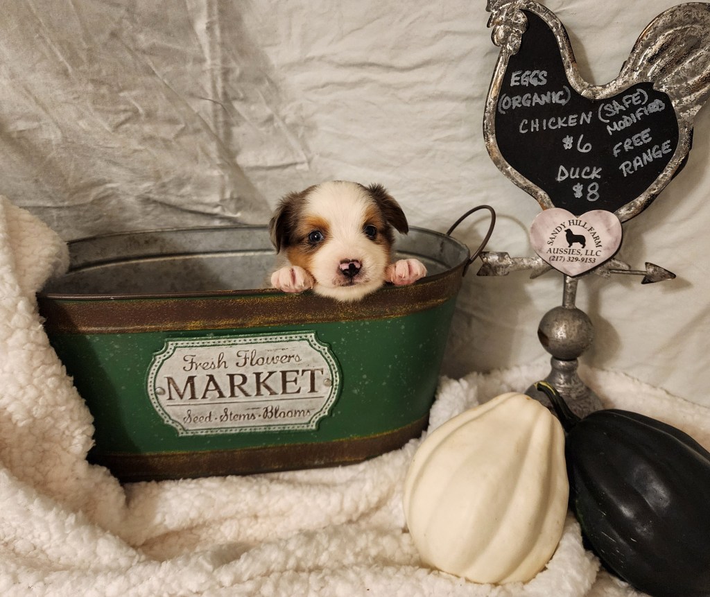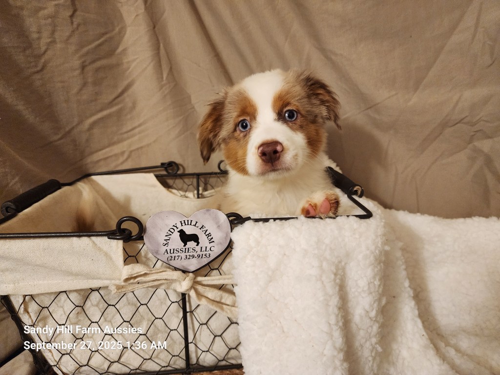 Available Mid September – Cinder X Bentley Large Toy/Small Mini Australian Shepherds with tails Born 7/18/2025