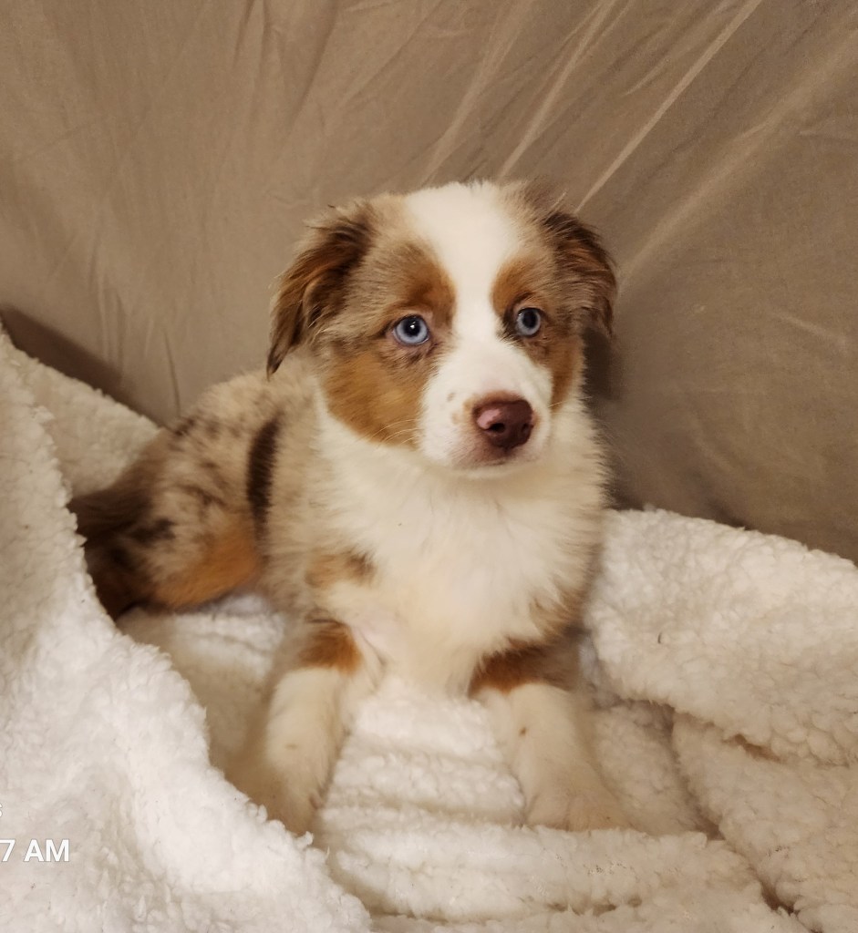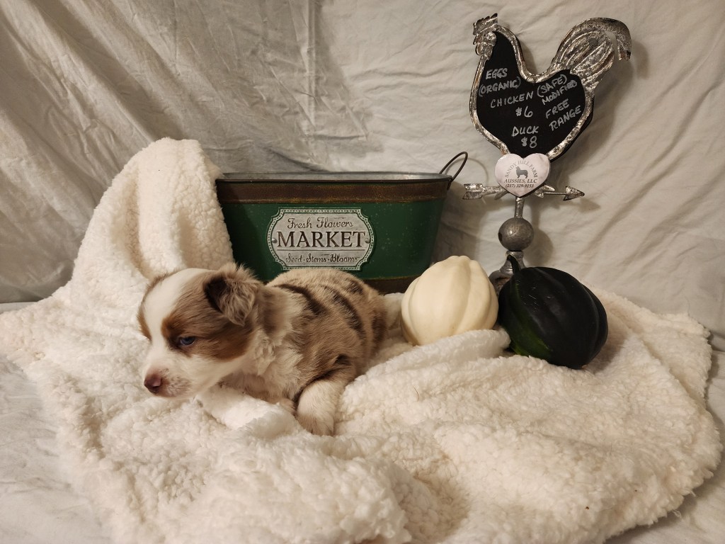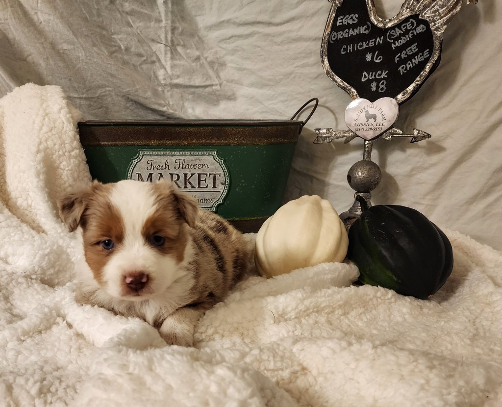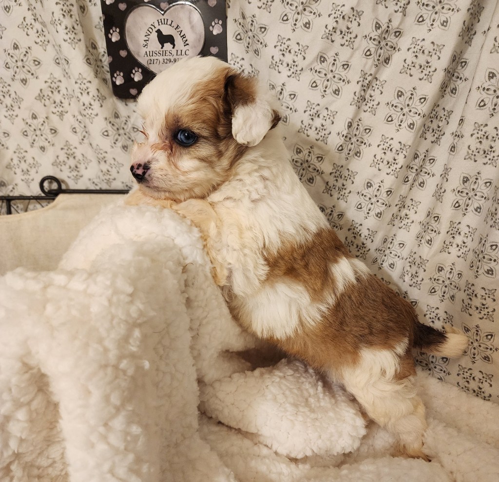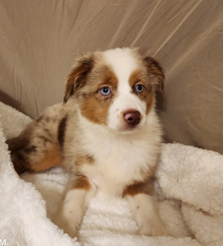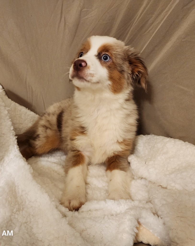1 Blue-Eyed Red Merle Large Toy/ Small Mini Australian Shepherd Male with full tail (below) $1500