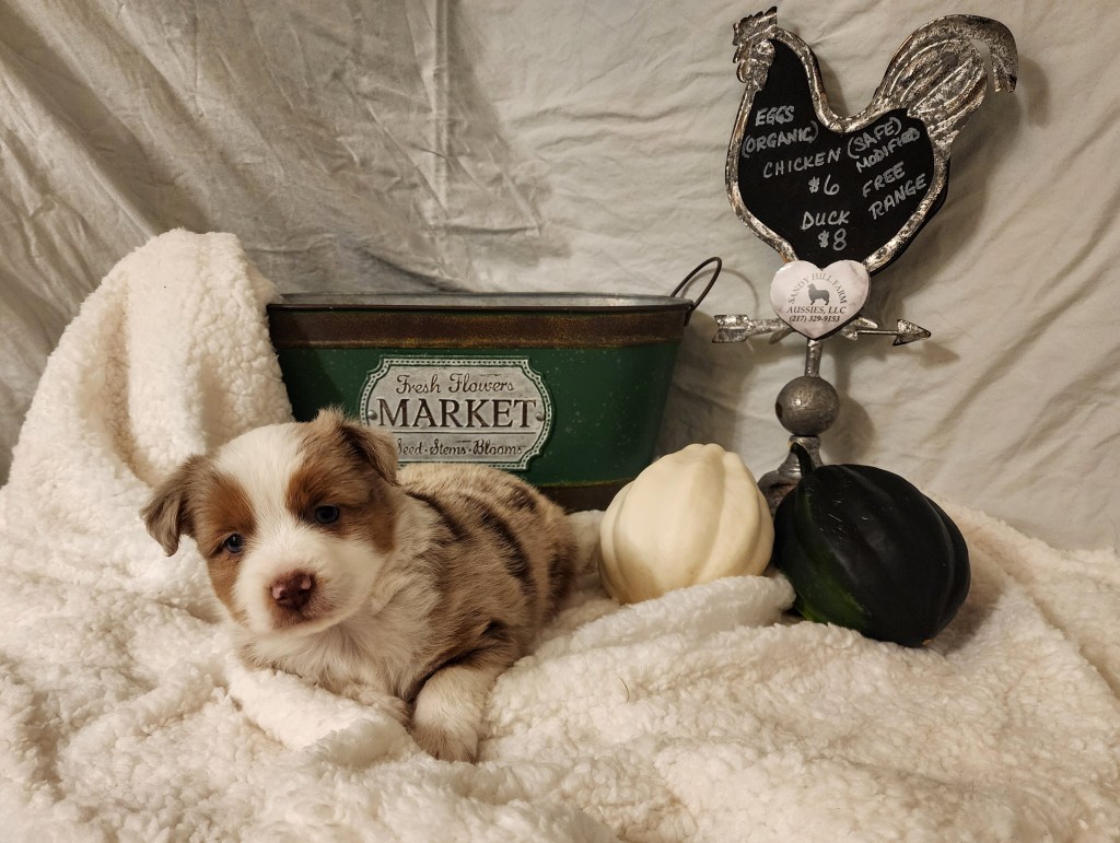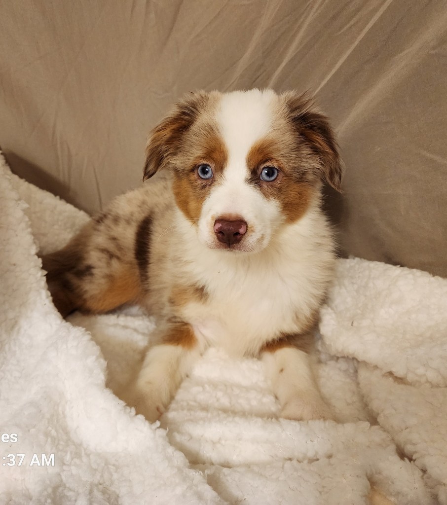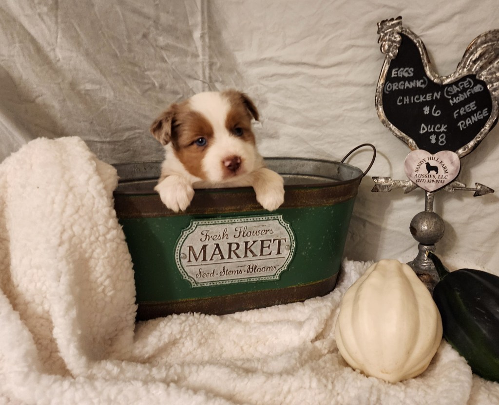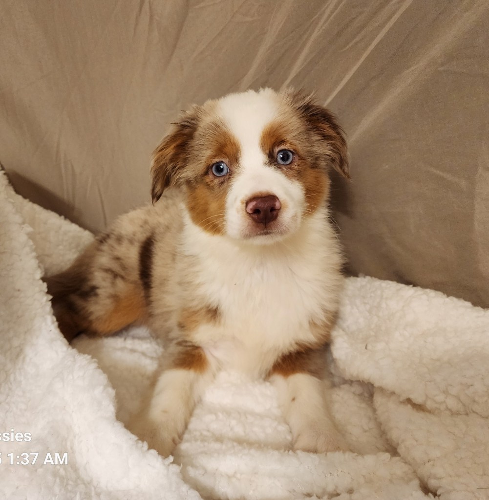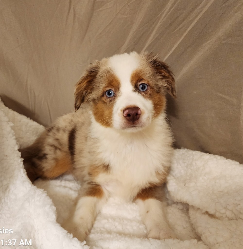 1 Blue-Eyed Red Merle Large Toy/ Small Mini Australian Shepherd Male with full tail (below) $1500