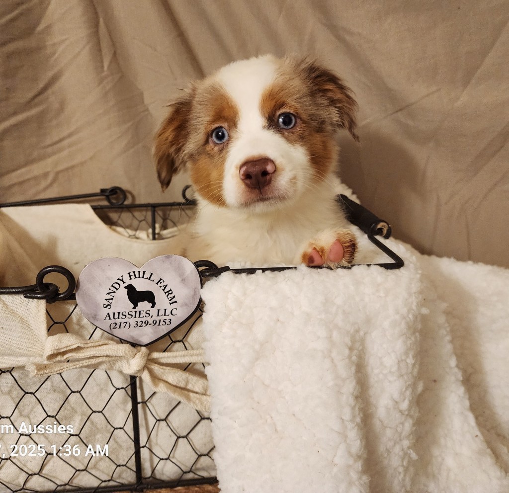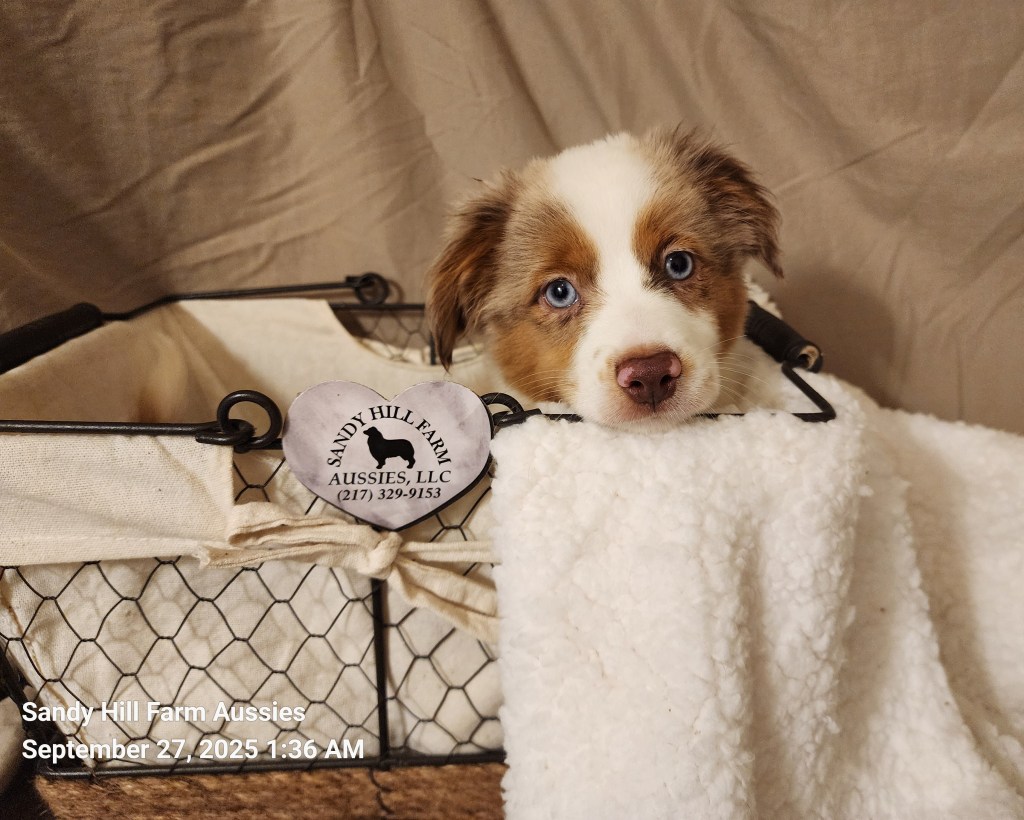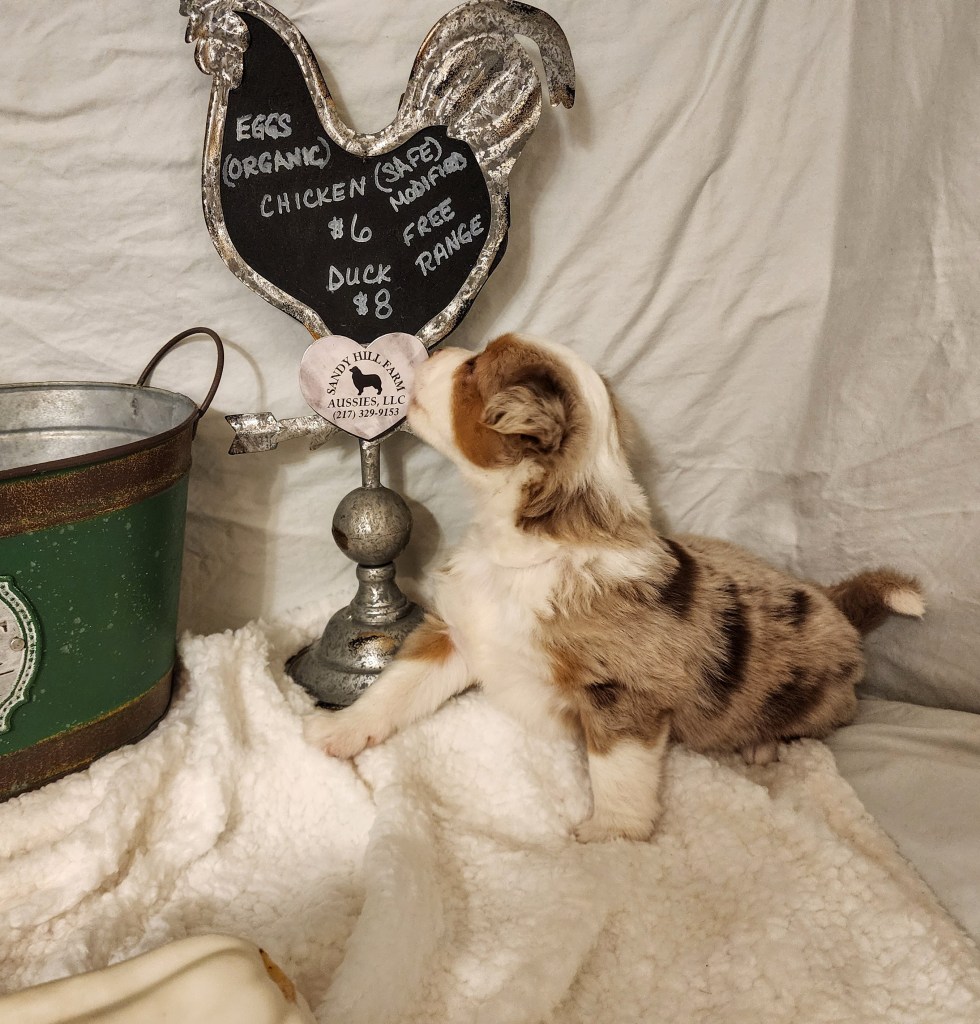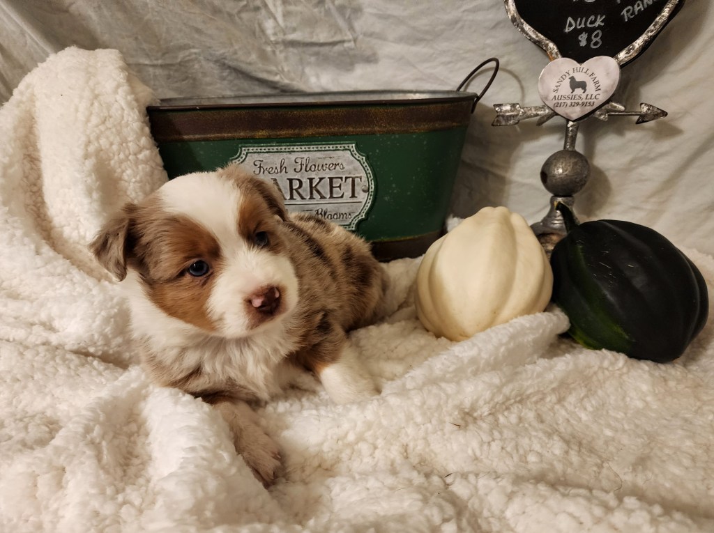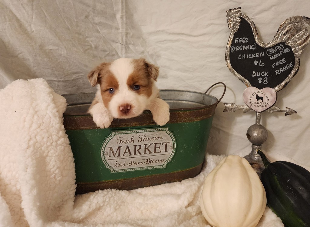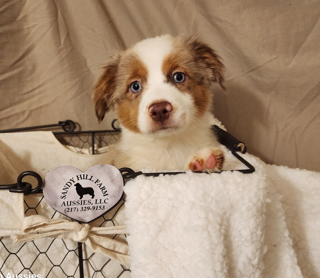 1 Blue-Eyed Red Merle Large Toy/ Small Mini Australian Shepherd Male with full tail (below) $1500