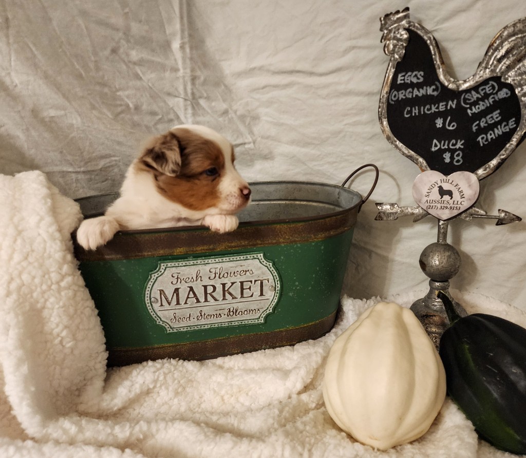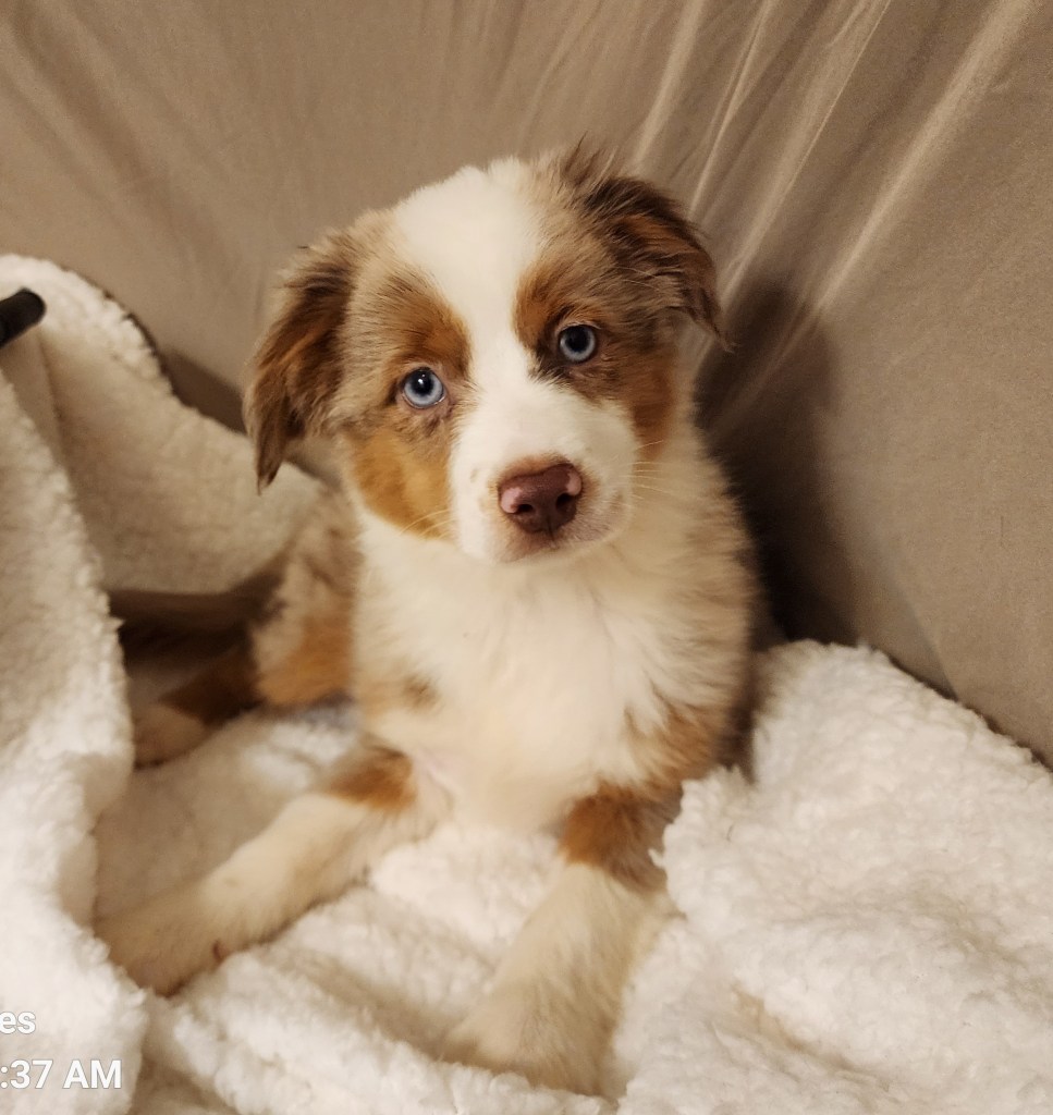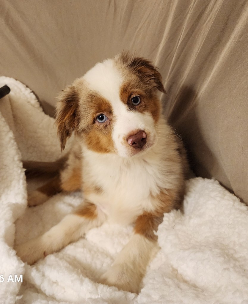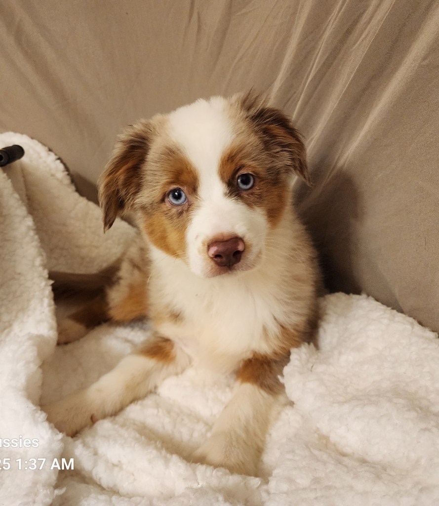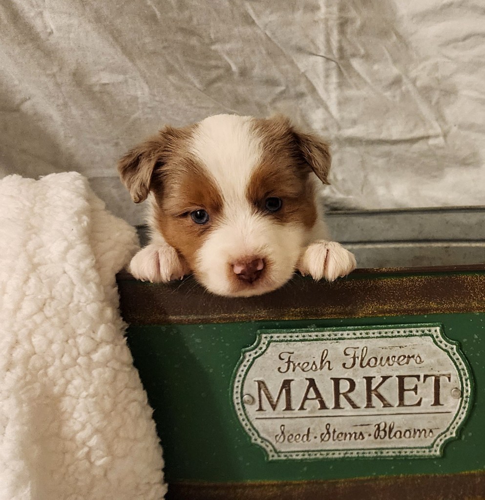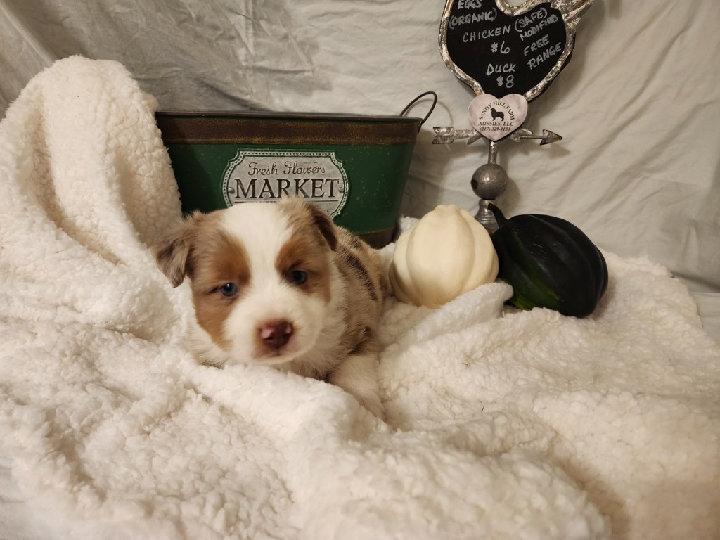 1 Blue-Eyed Red Merle Large Toy/ Small Mini Australian Shepherd Male with full tail (below) $1500