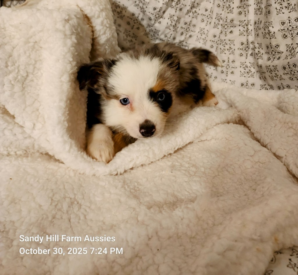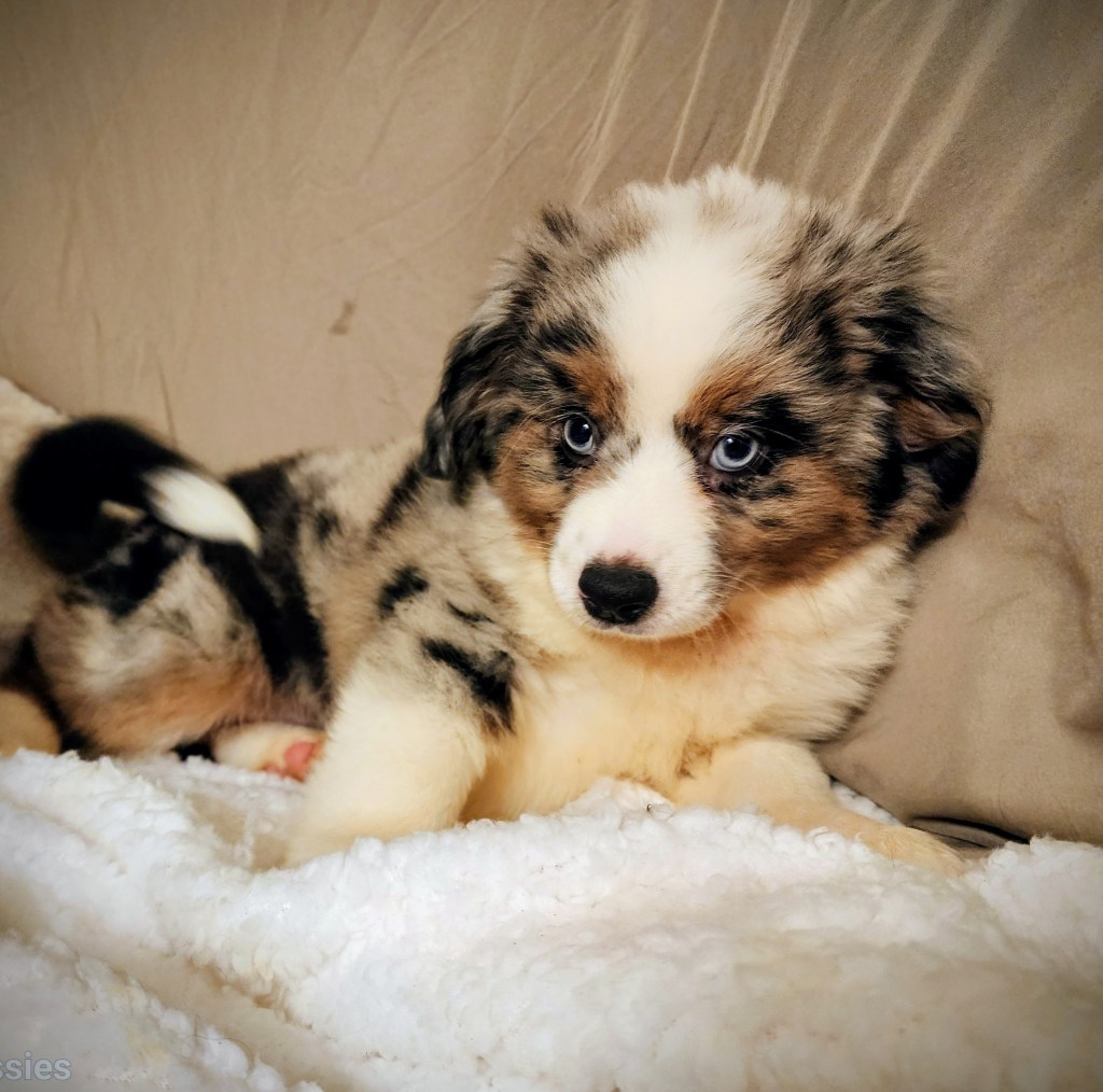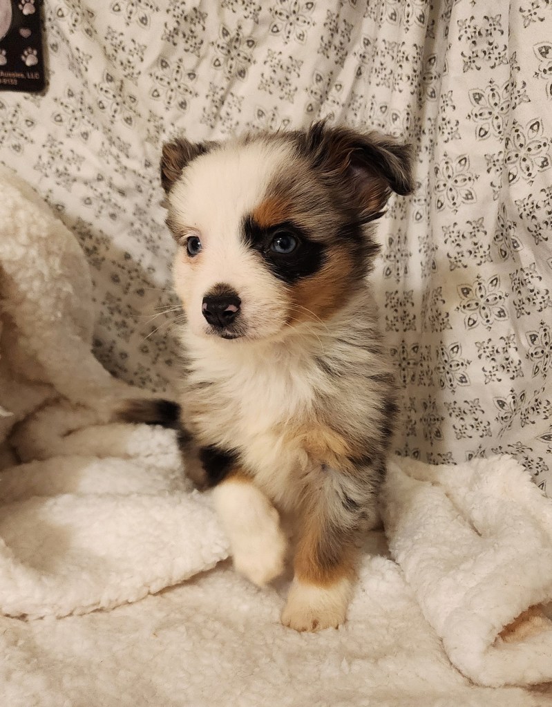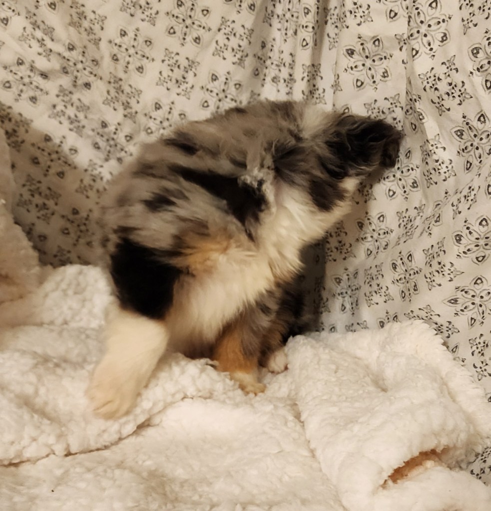 Available Mid November – Charlotte X Cry Toy/Tiny Toy Australian Shepherds with tails Born 9/06/2025
