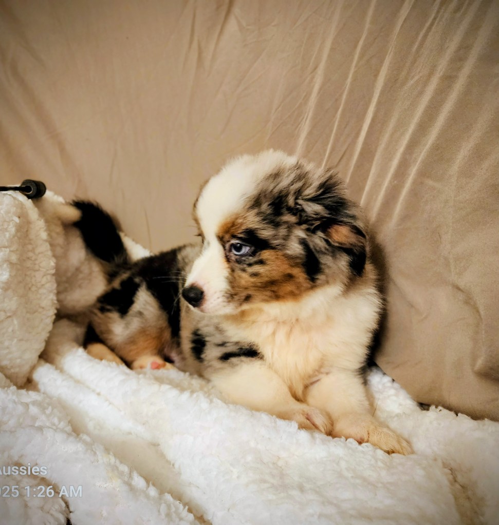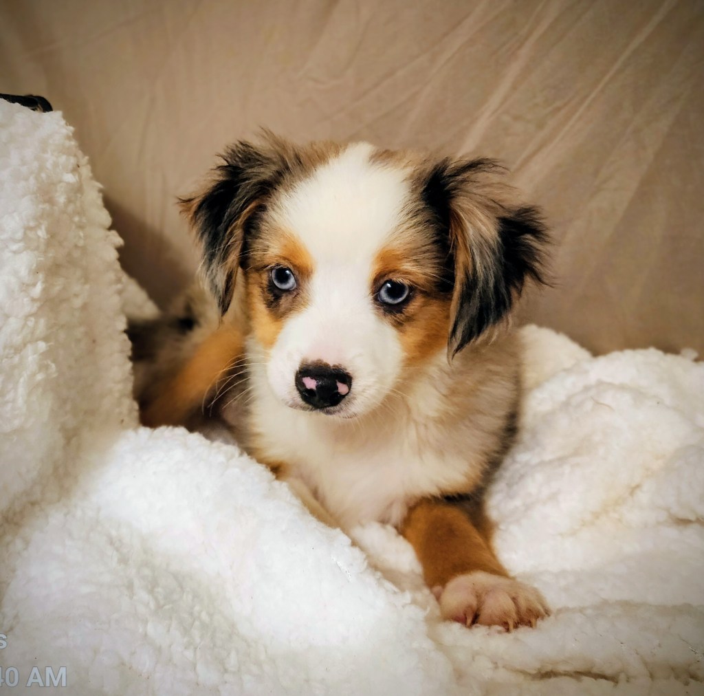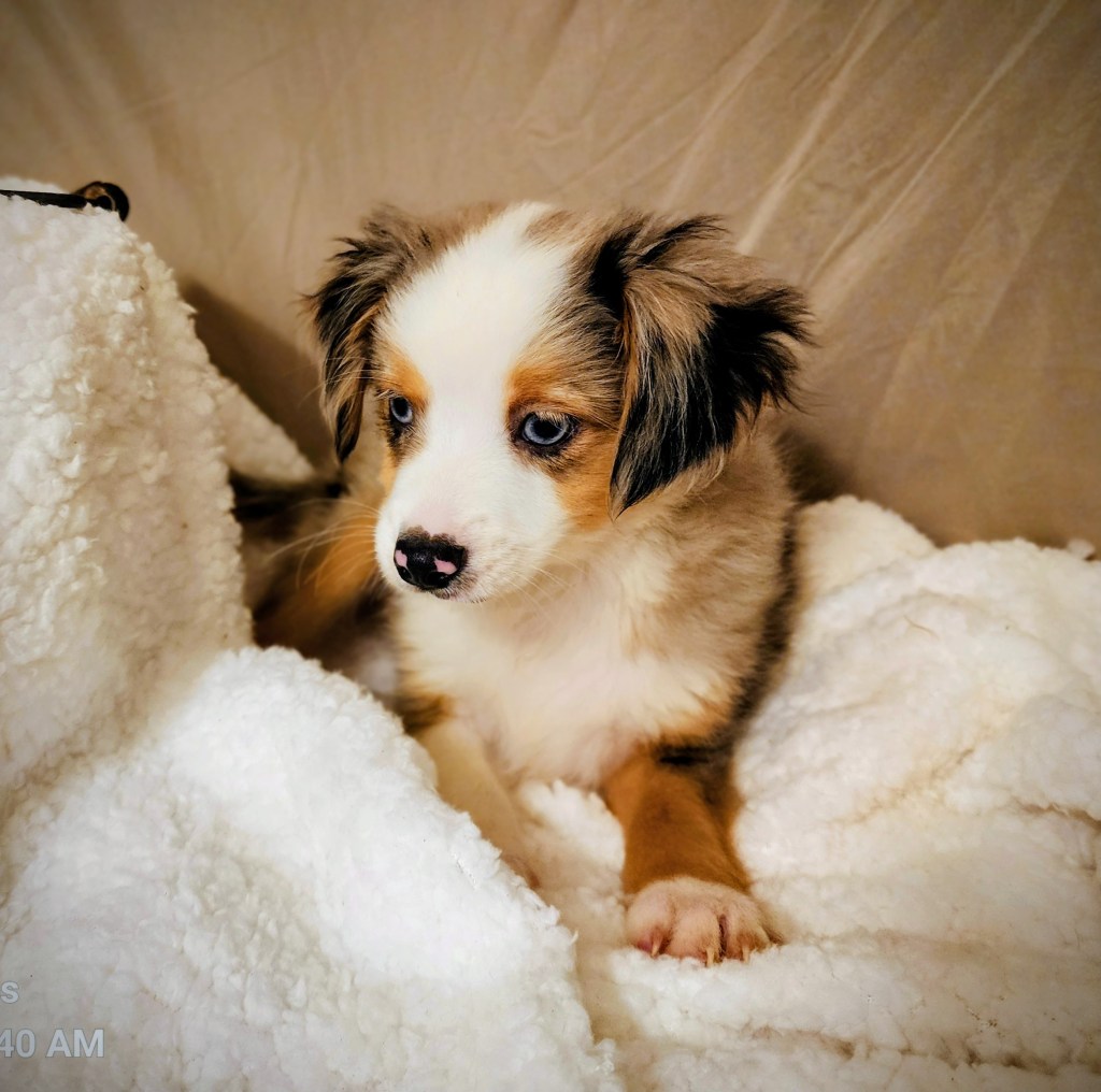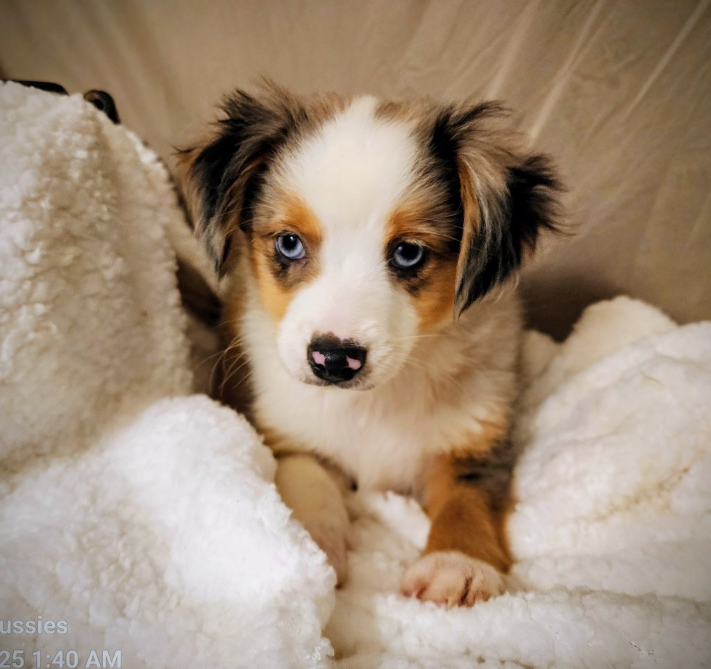 Available Mid November – Charlotte X Cry Toy/Tiny Toy Australian Shepherds with tails Born 9/06/2025