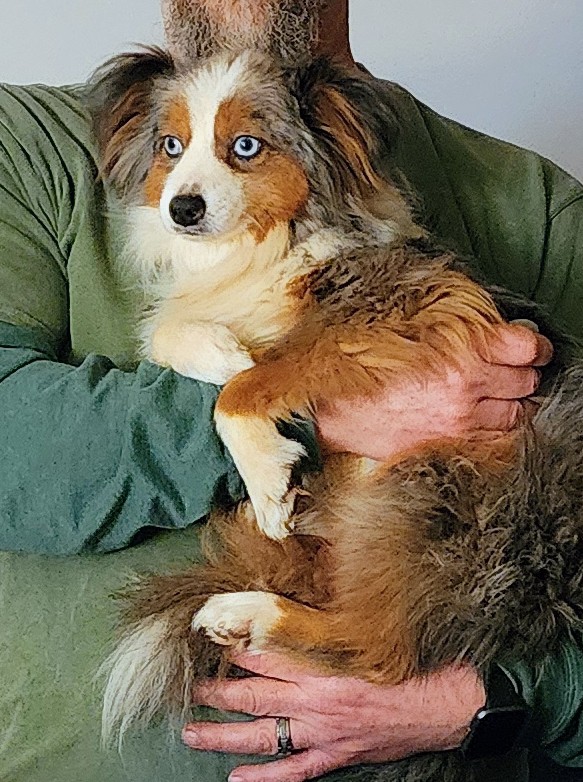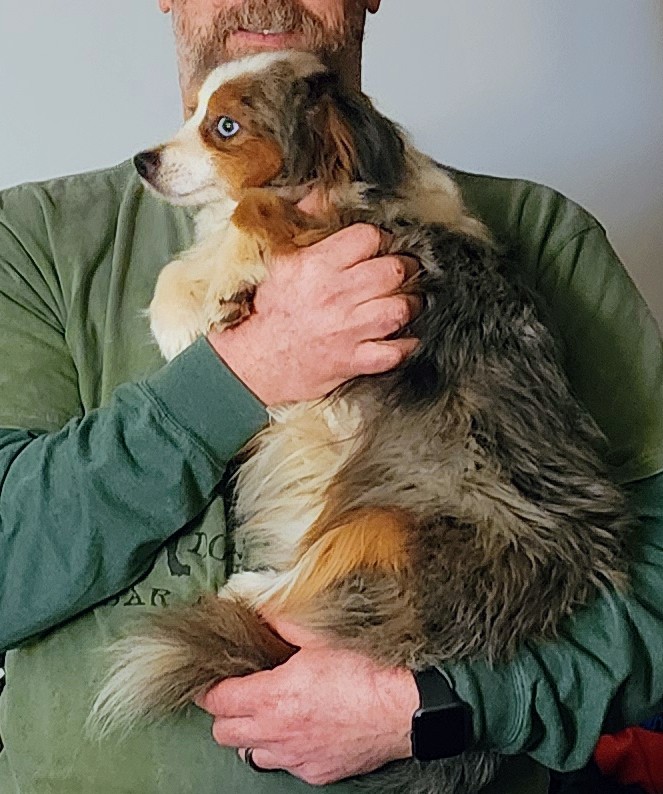 *George* Available NOW – Charlotte X Cry – Large Toy Australian Shepherd Male (Neutered) without tail born July 15, 2020 $550
