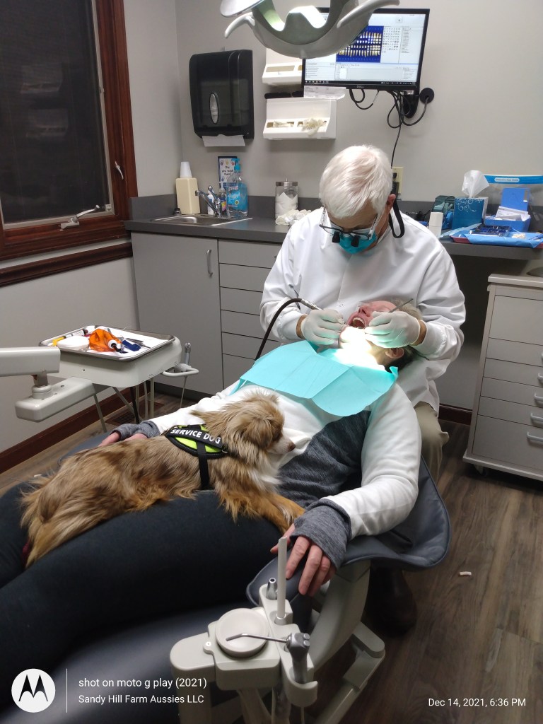 Jennifer’s dog Cricket has joined us in my dental office while Jennifer was receiving dental treatment over the past year. Cricket has always been calm, attentive and quiet. If I had not seen her with my own eyes, I would have not believed that she was in Jennifer’s lap.