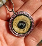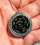 Keepsake Lockets of your loving pet’s hair. Available in Pink, Turquoise, and White gemstones. Fully reversible. Available with or without floating charm, beads, etc. A beautiful way to carry your pet with you or to remember them by. For any animal with hair. Pictured are dog and horse hair lockets.